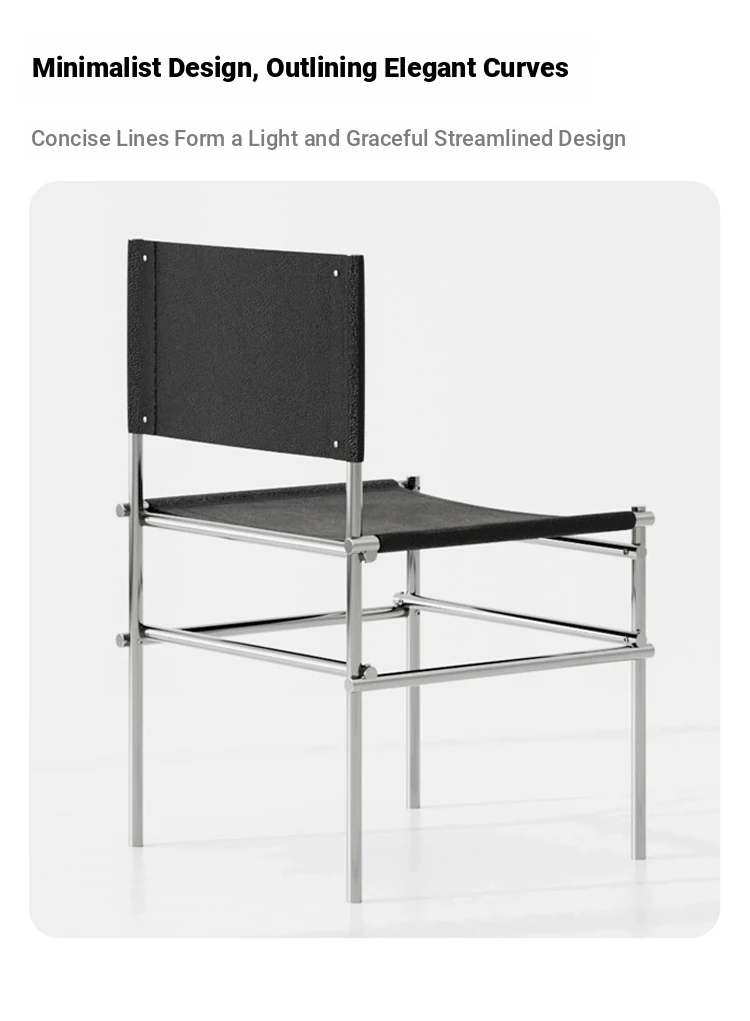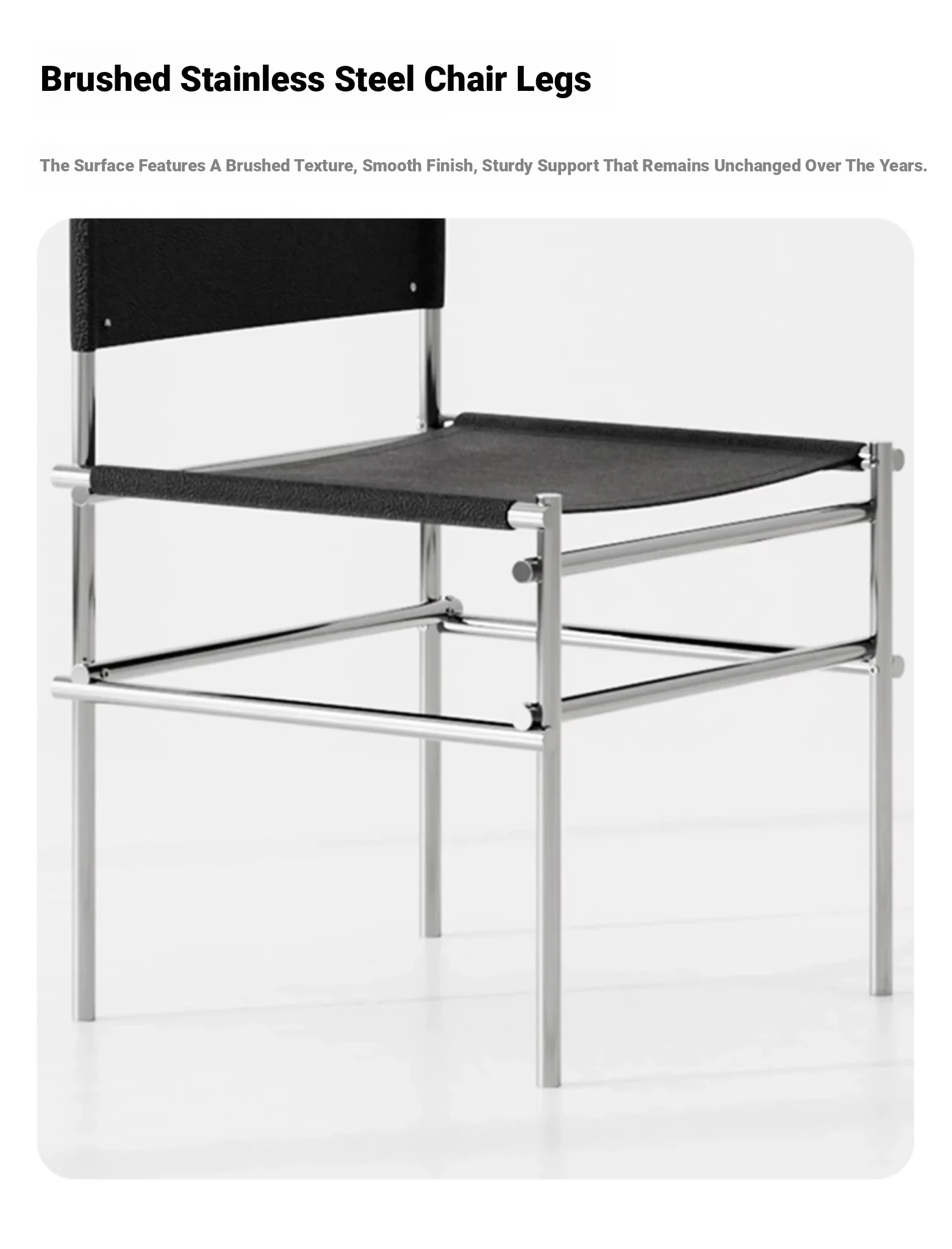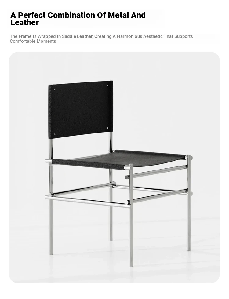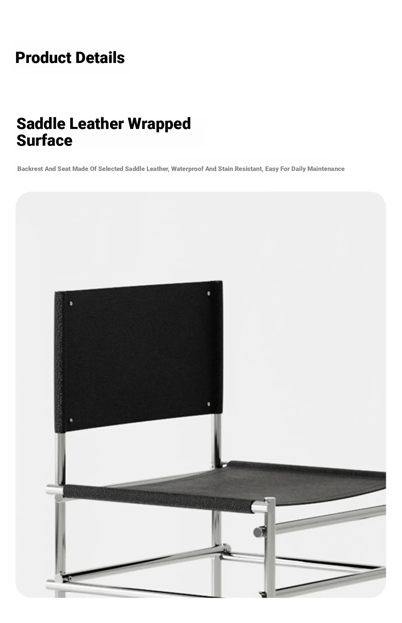 Italian Minimalist Stainless Steel Saddle Leather Dining Chair - Bauhaus Style Designer Single Chair for High-End Hotels and Homes