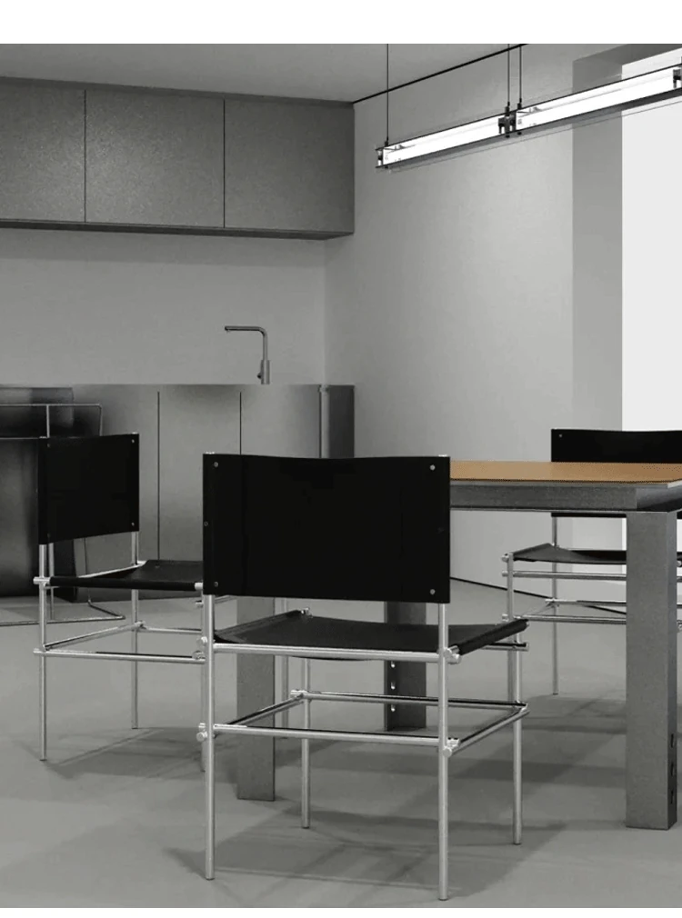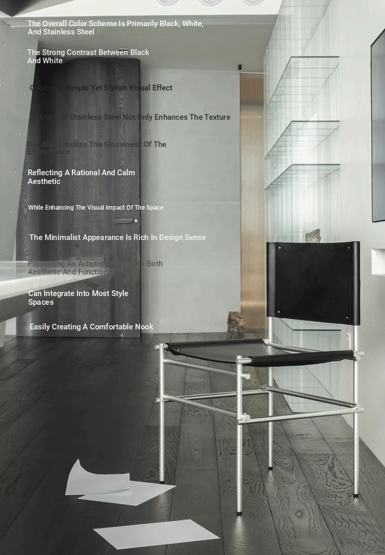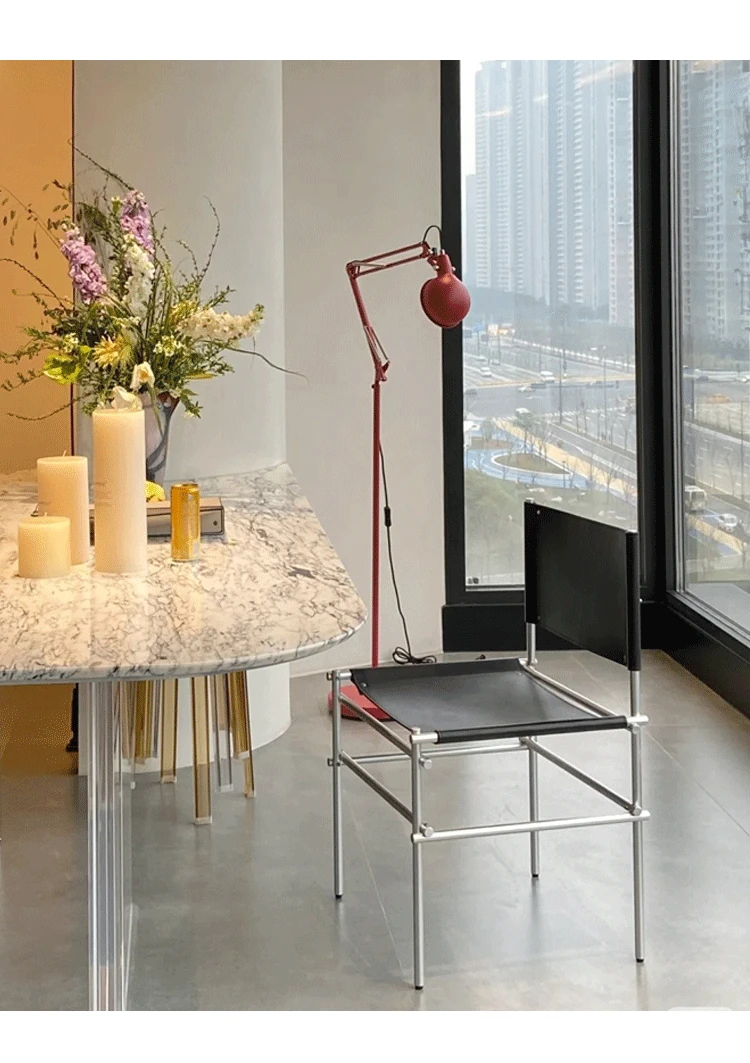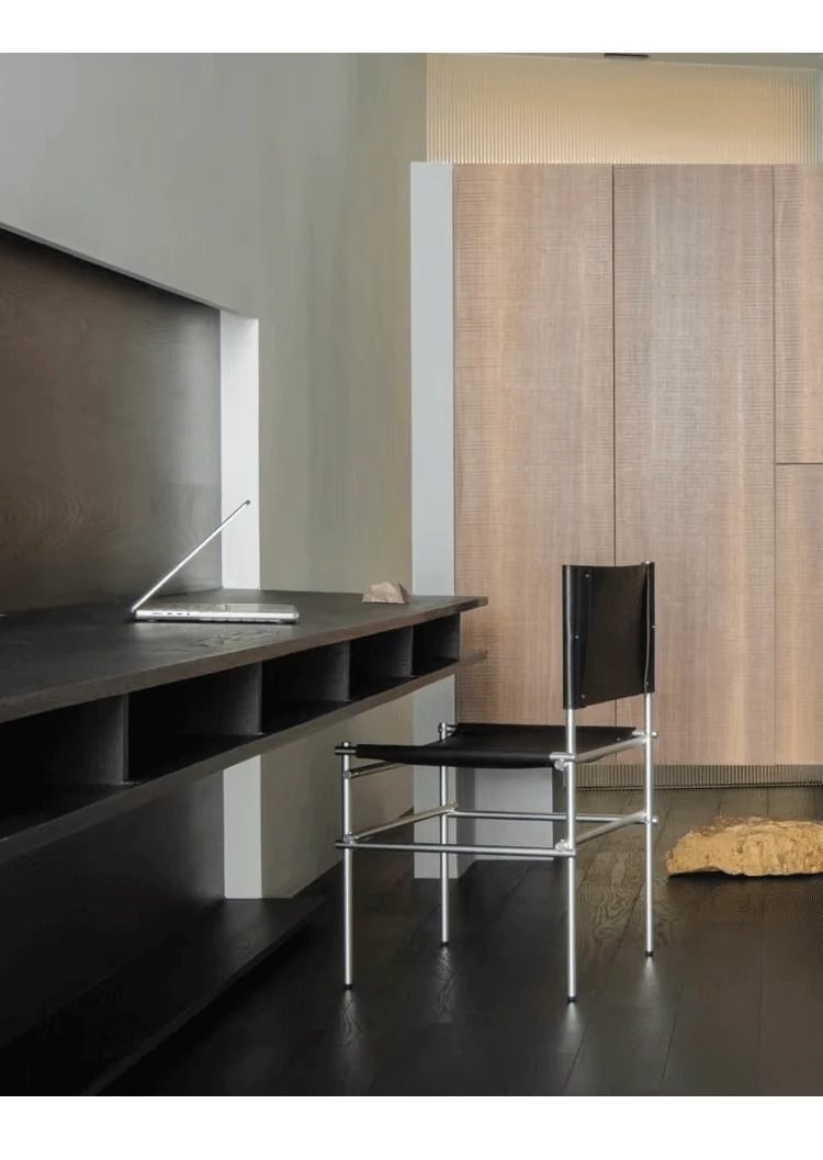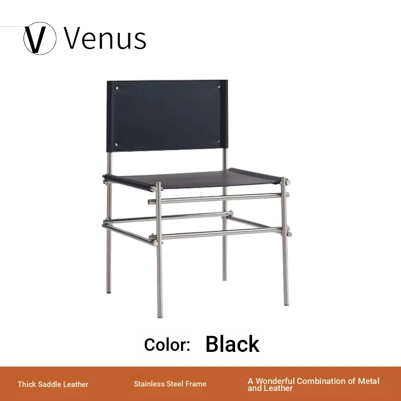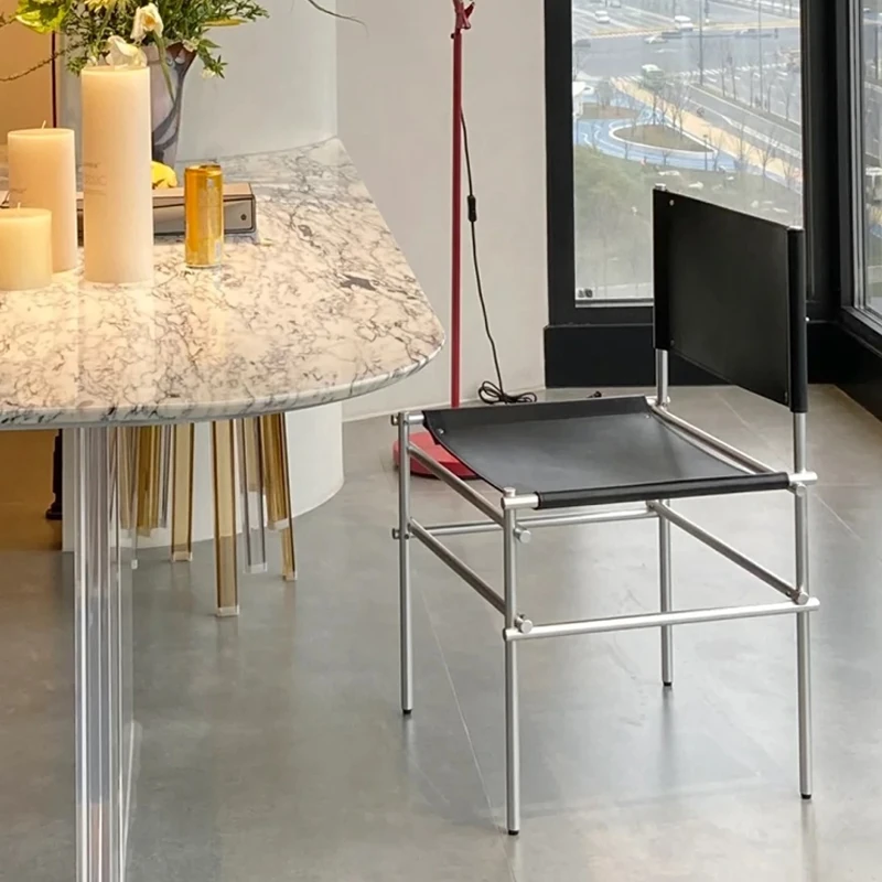 Italian Minimalist Stainless Steel Saddle Leather Dining Chair - Bauhaus Style Designer Single Chair for High-End Hotels and Homes