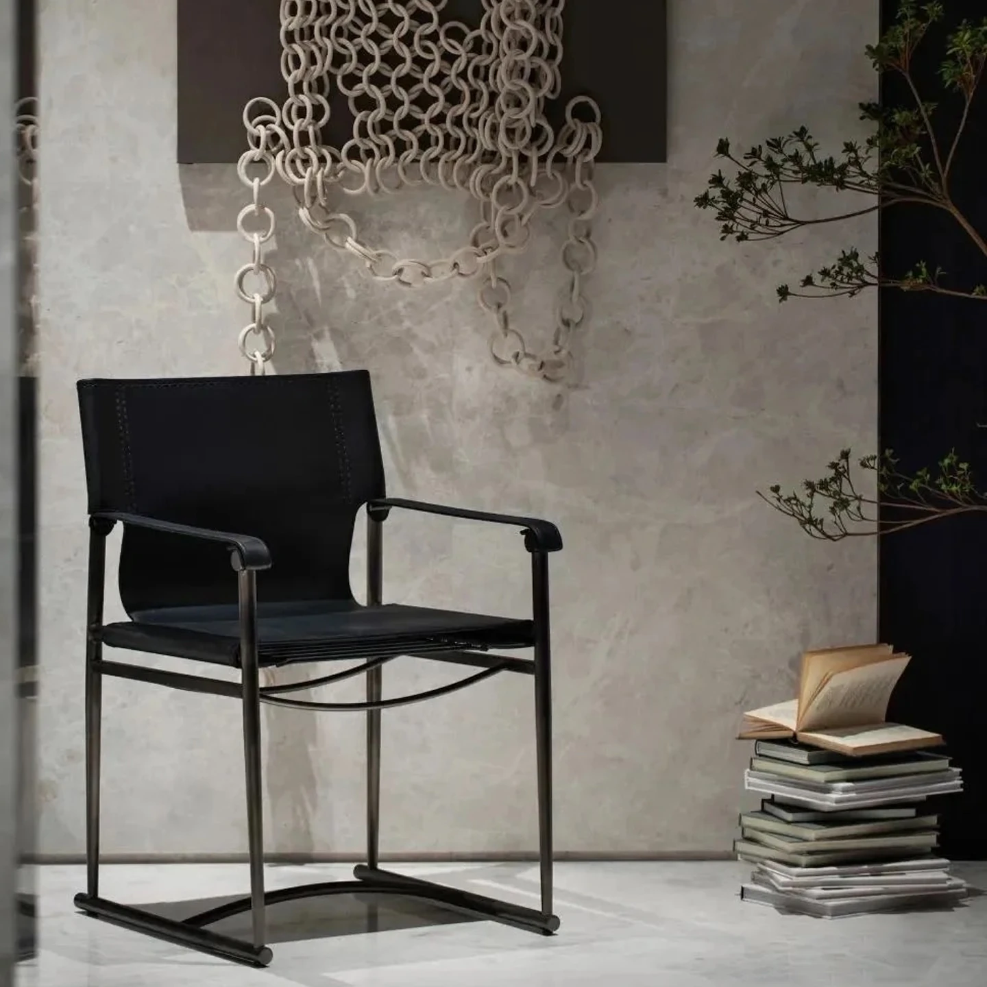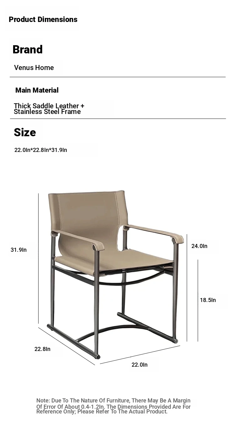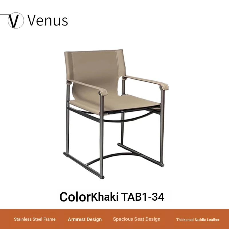 Italian Premium Leather Saddle Chair - Minimalist Design for Home, Perfect for Tea, Meetings, and Relaxation - Designer Dining Chair for Hosts and Guests