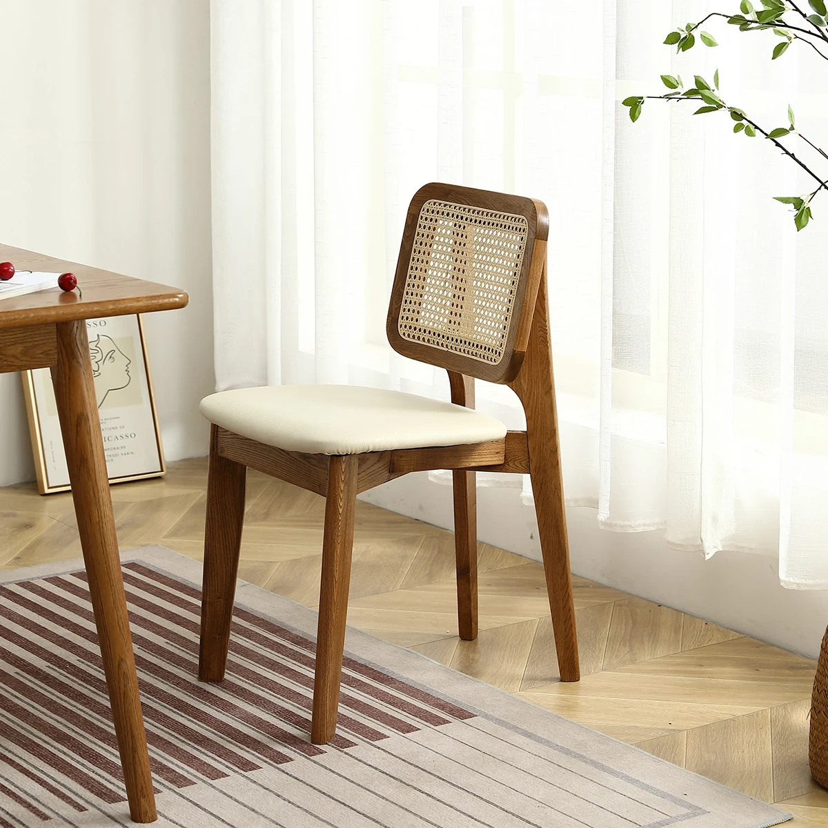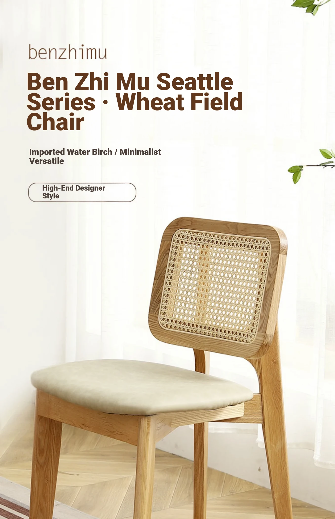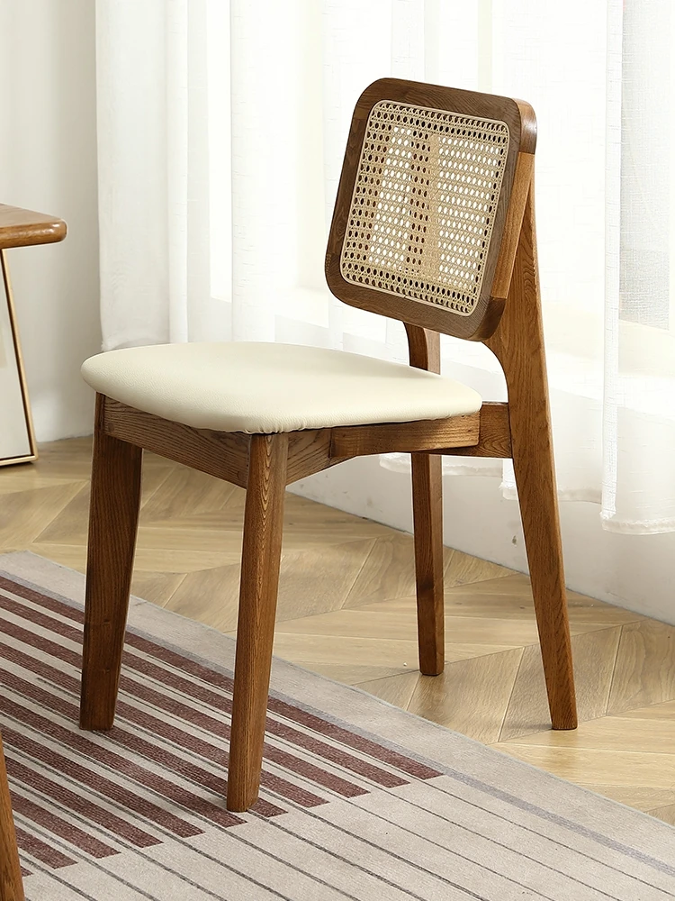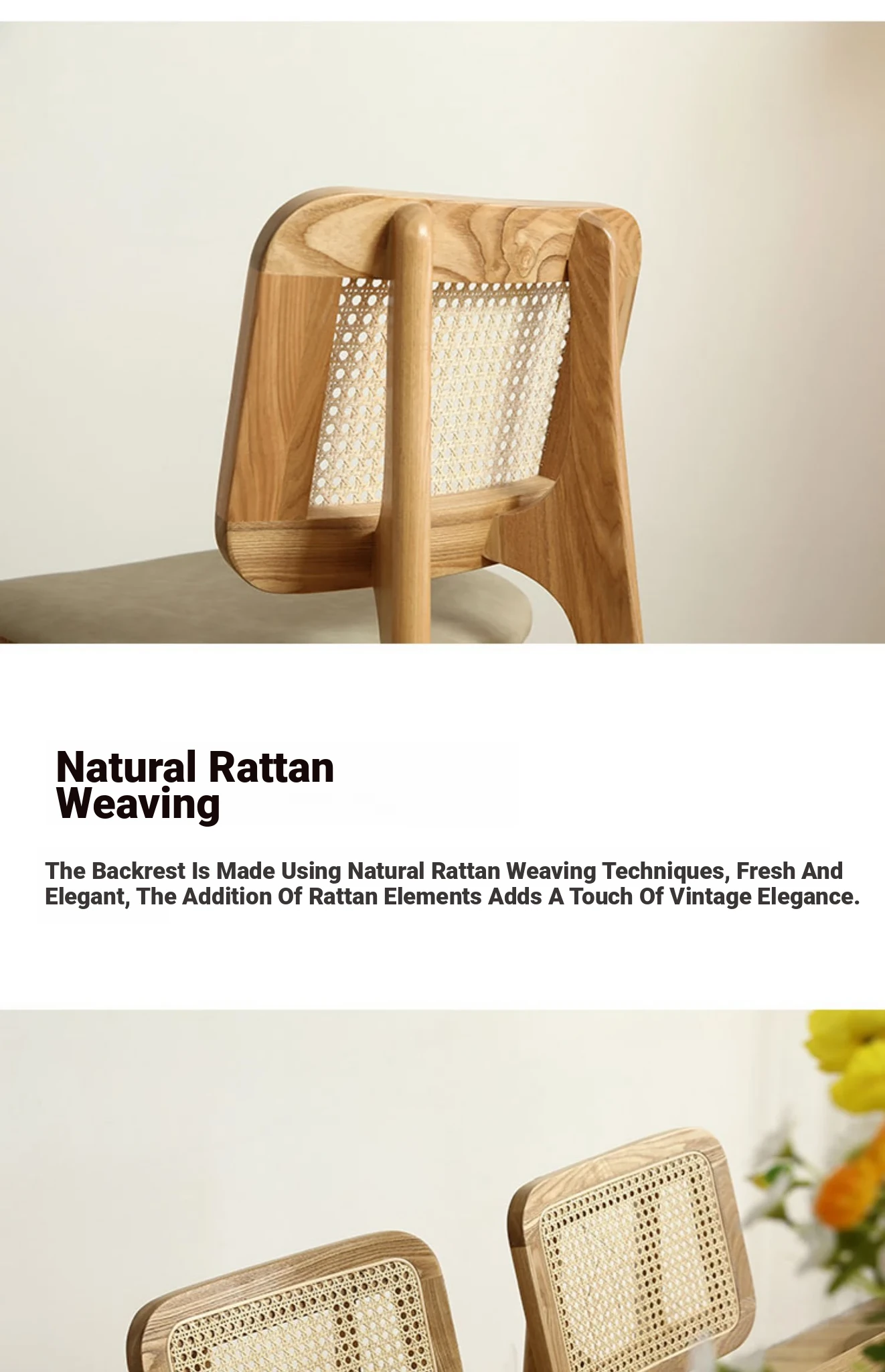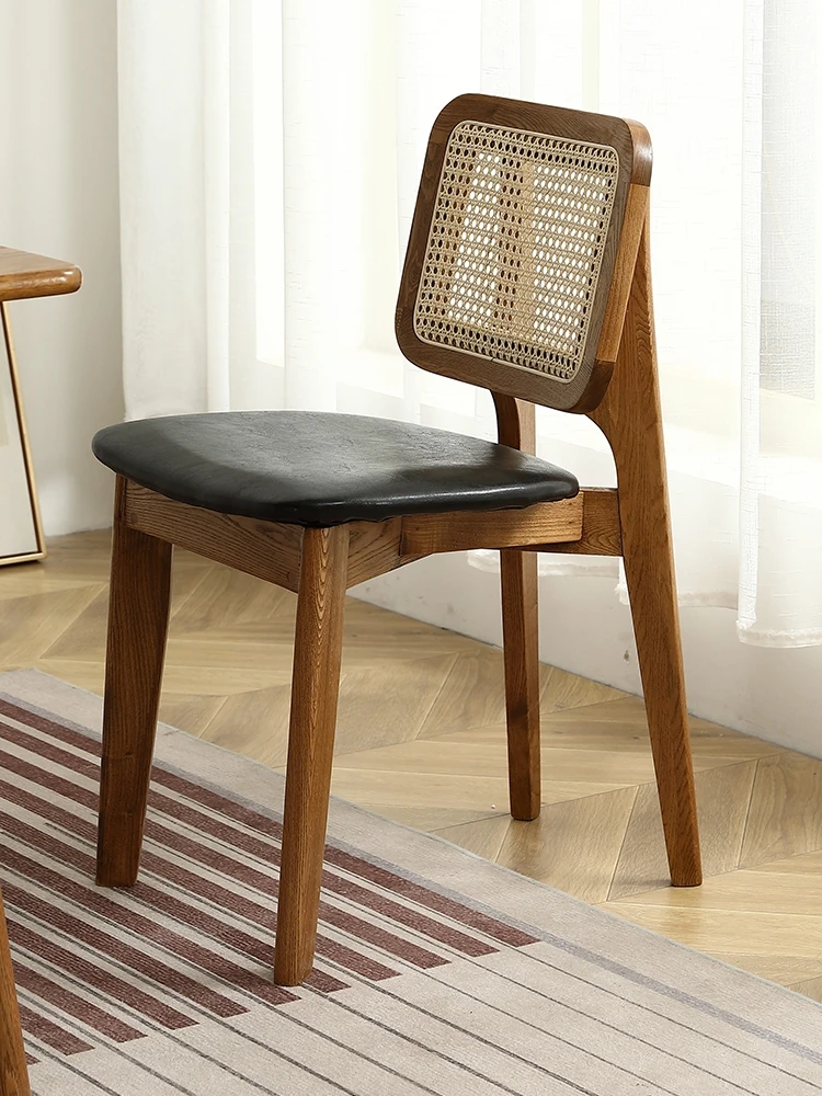Minimalist Rattan Dining Chair - New Nordic Solid Wood Wabi-Sabi Leisure Chair, Luxurious Designer Office Chair for Cafés and Modern Spaces