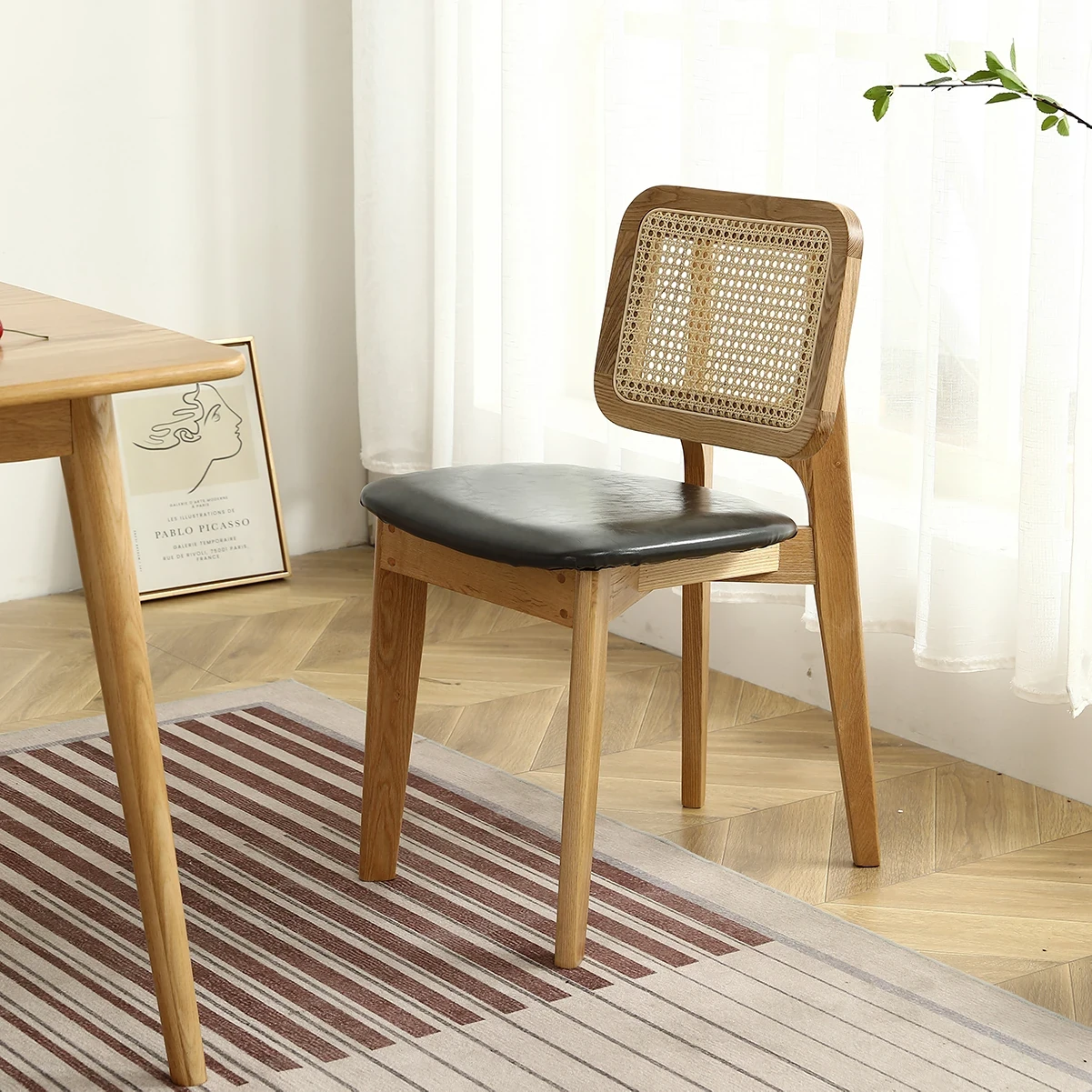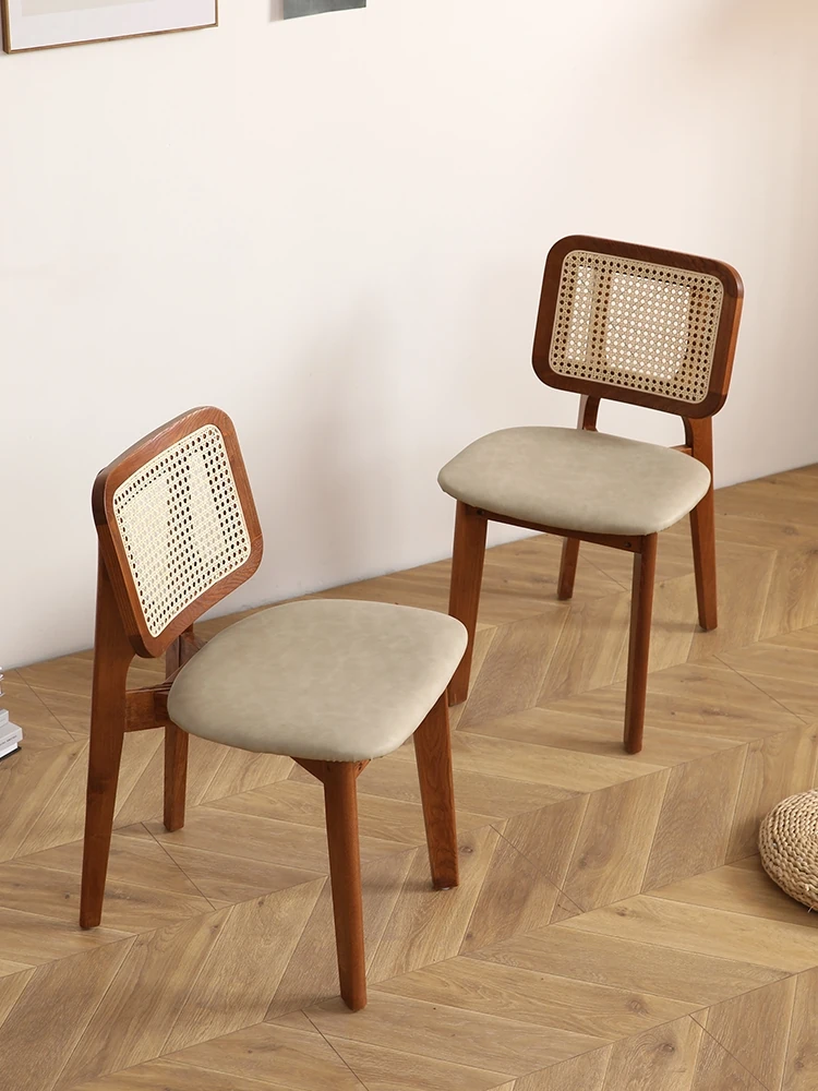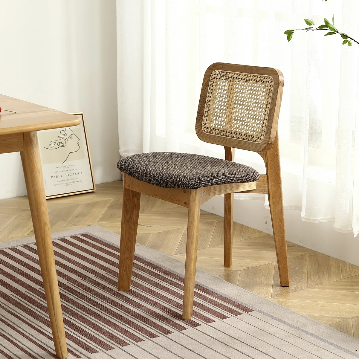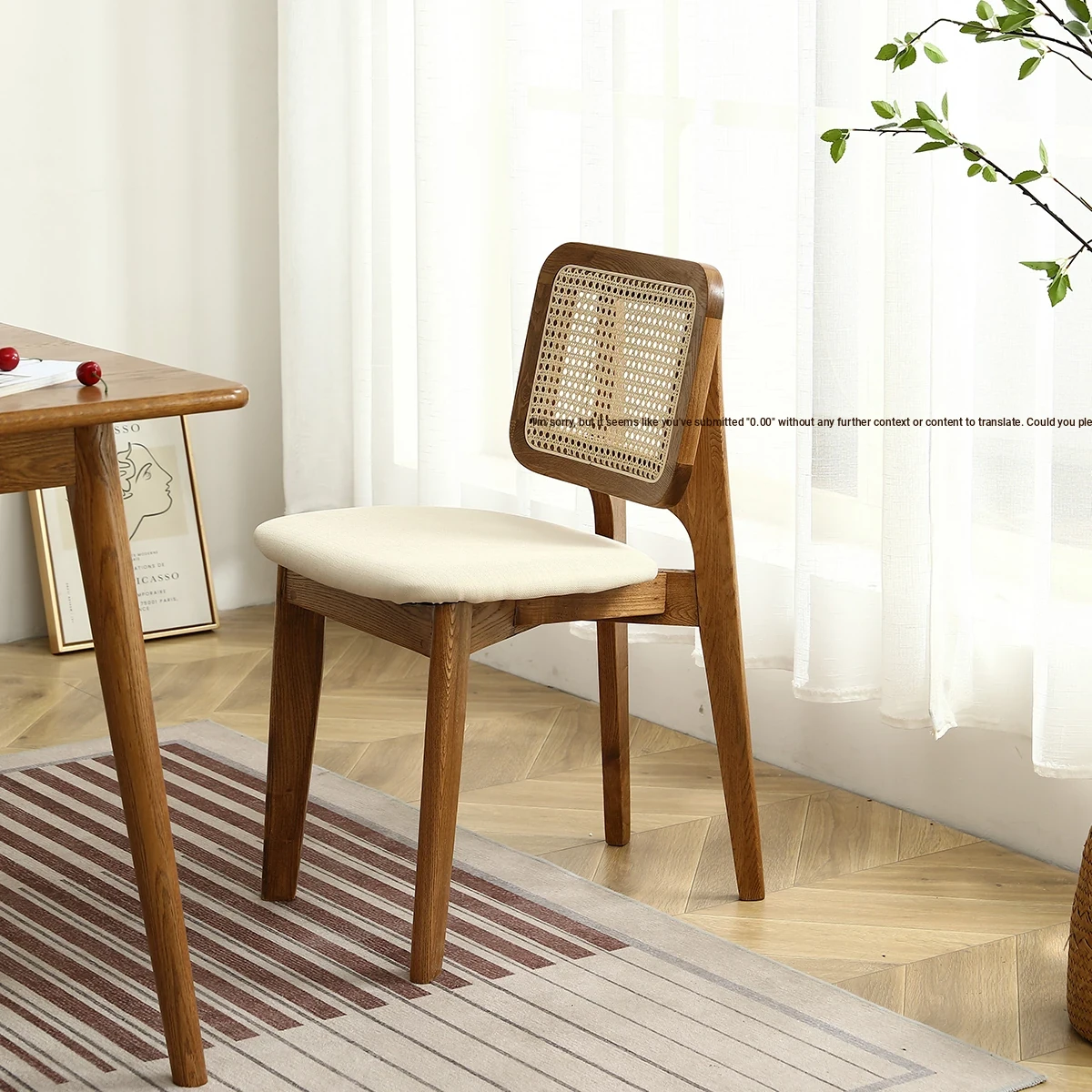 Minimalist Rattan Dining Chair - New Nordic Solid Wood Wabi-Sabi Leisure Chair, Luxurious Designer Office Chair for Cafés and Modern Spaces