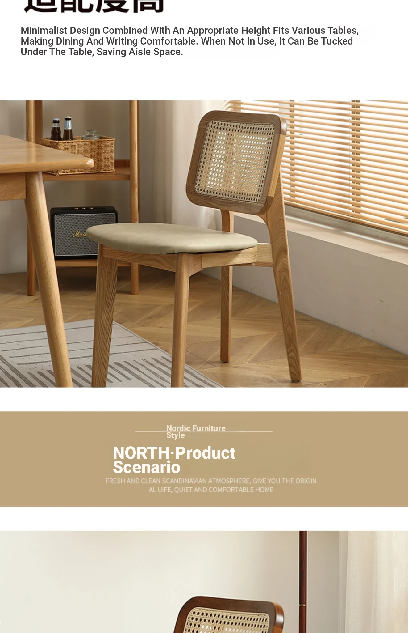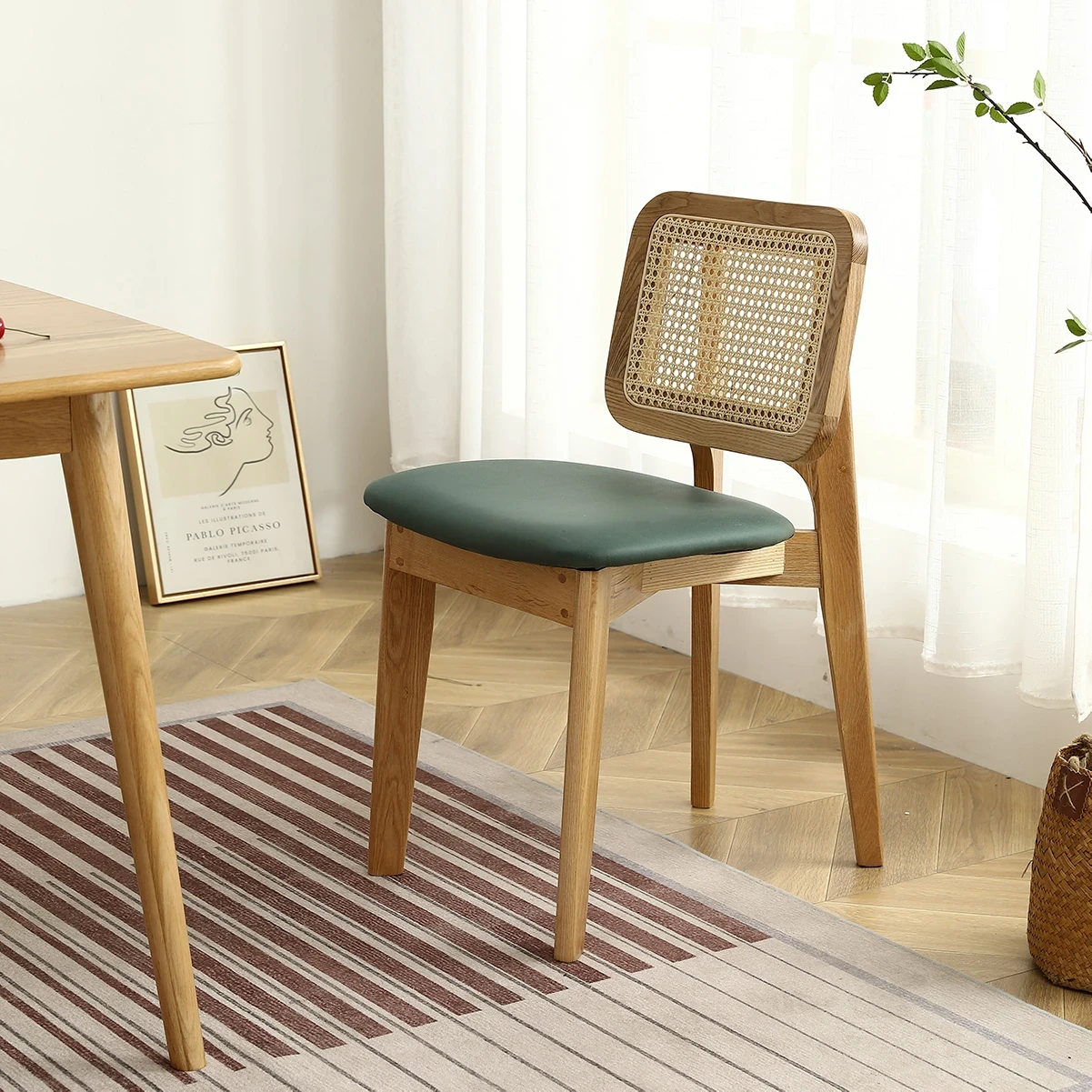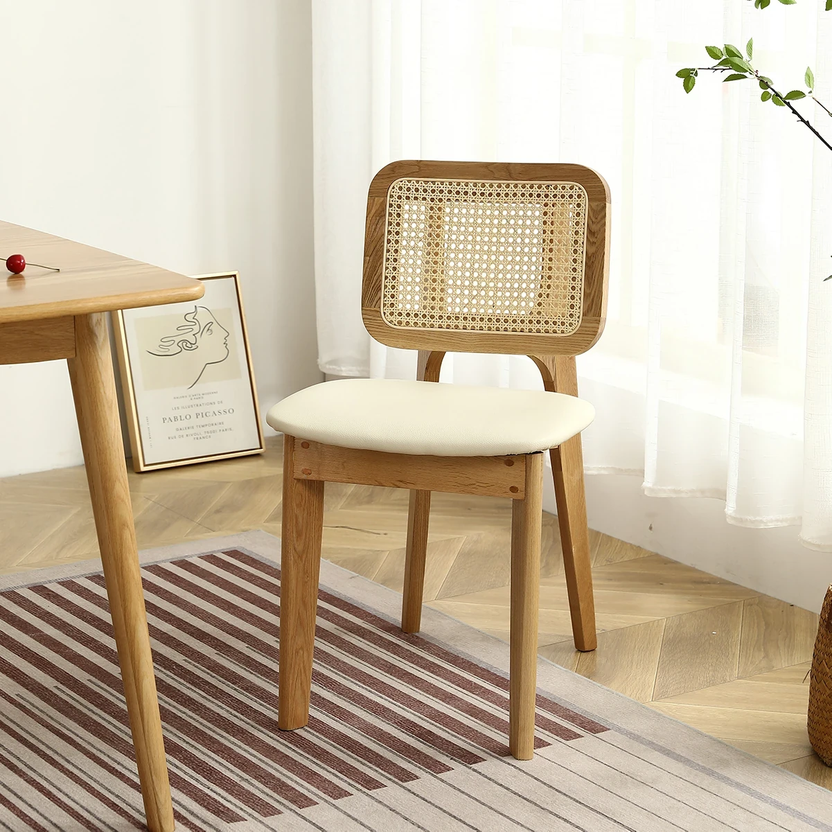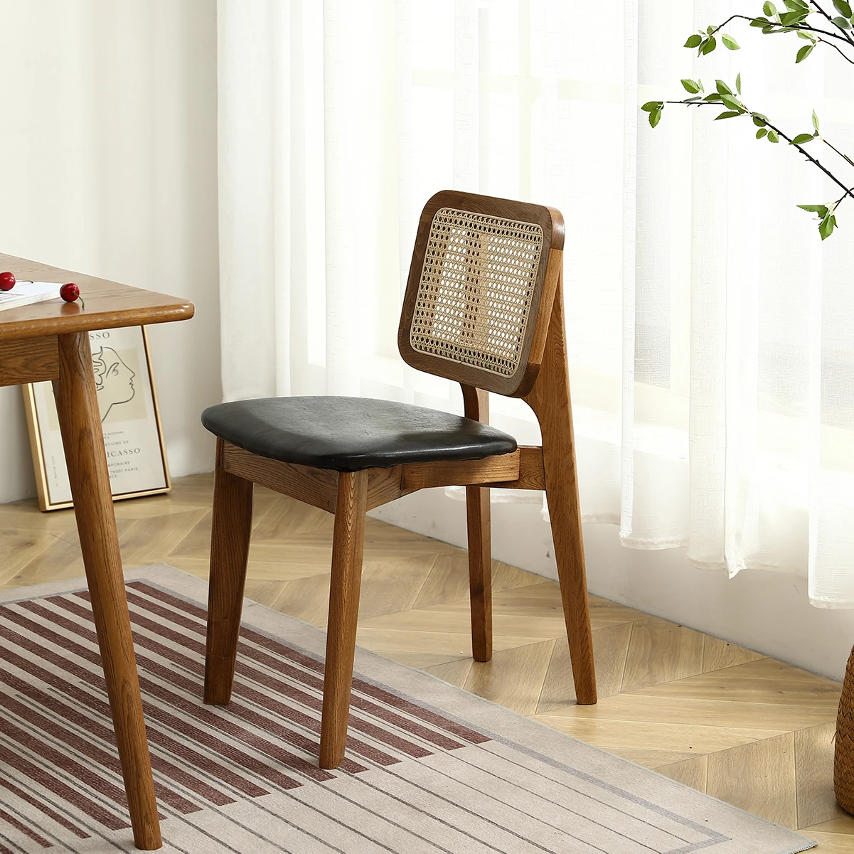 Minimalist Rattan Dining Chair - New Nordic Solid Wood Wabi-Sabi Leisure Chair, Luxurious Designer Office Chair for Cafés and Modern Spaces
