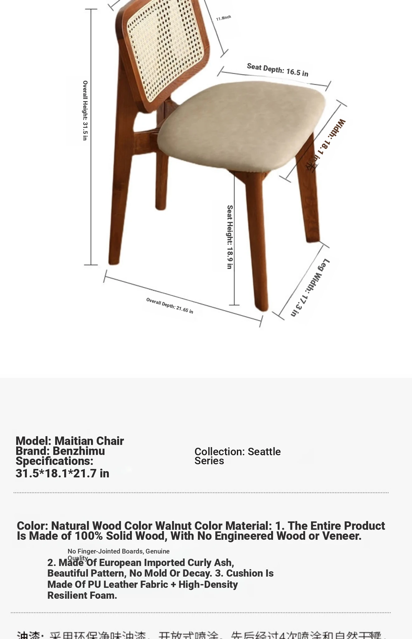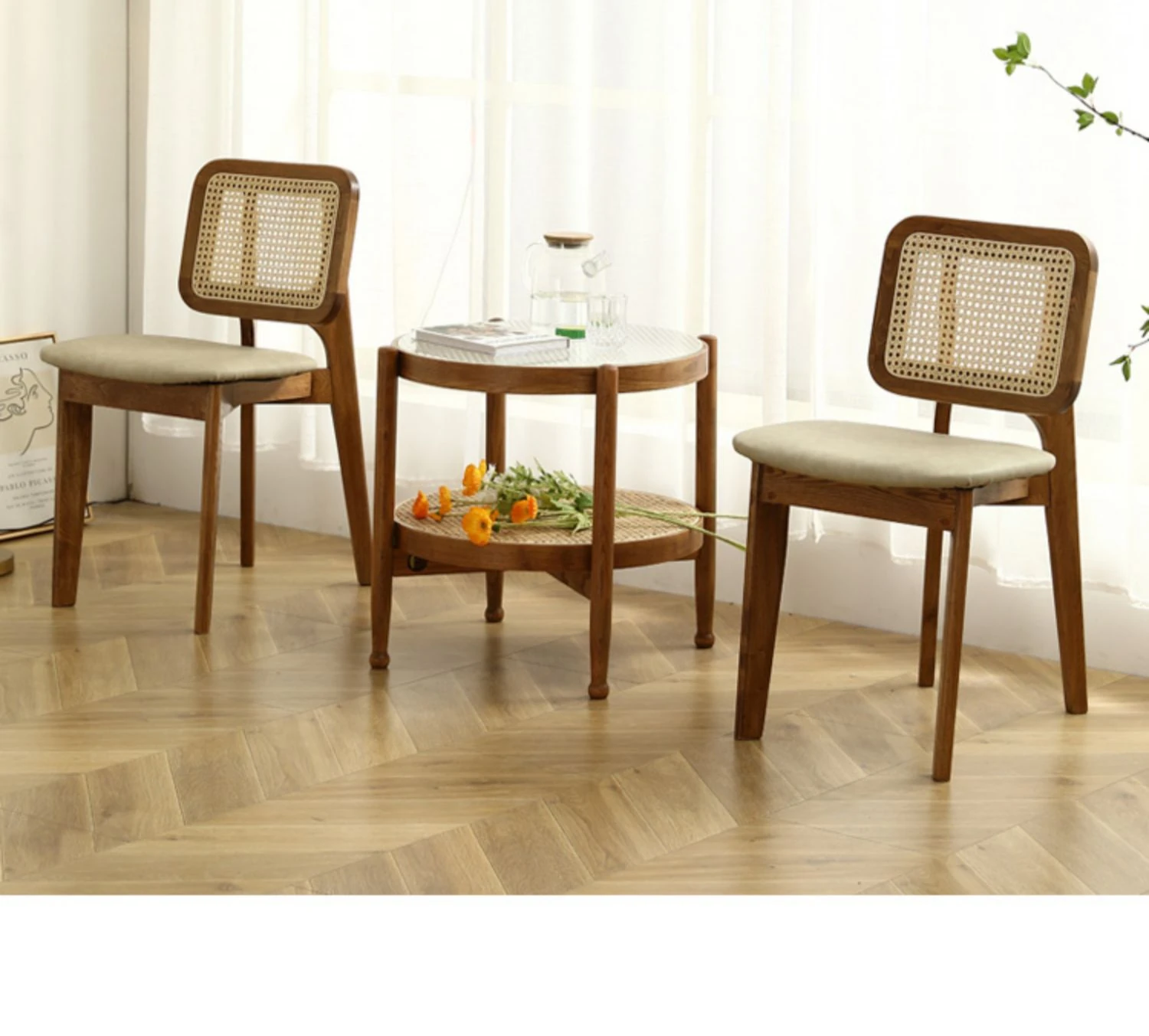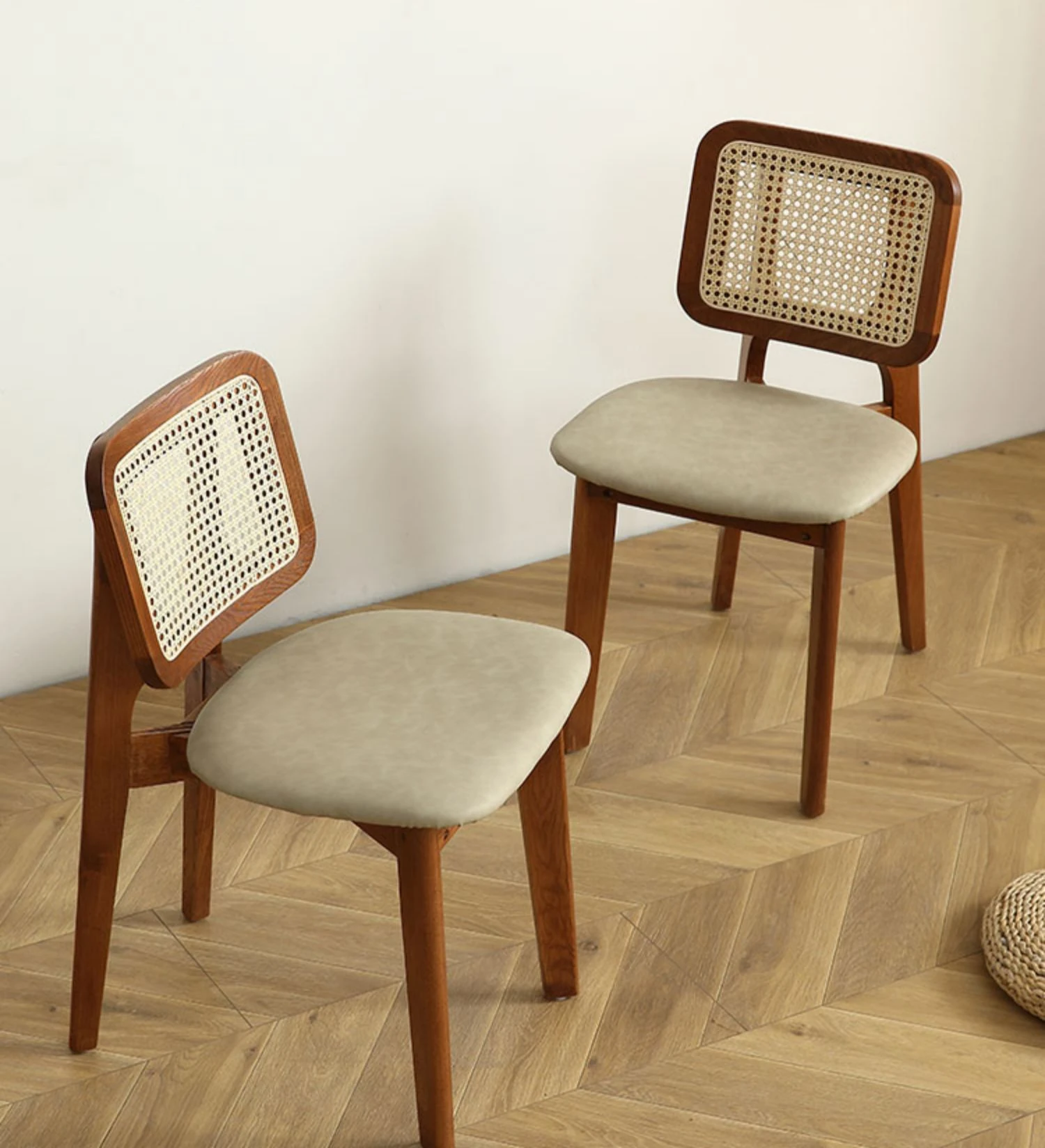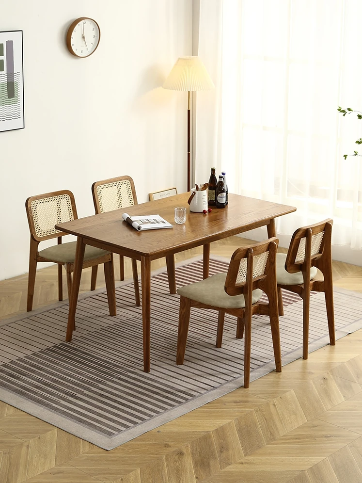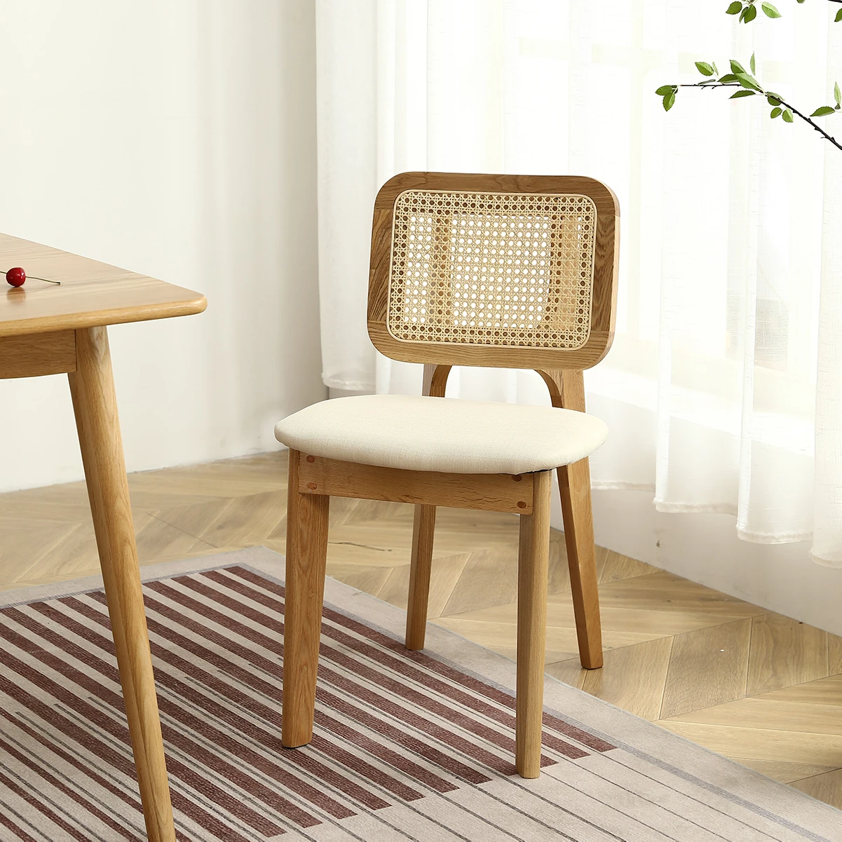 Minimalist Rattan Dining Chair - New Nordic Solid Wood Wabi-Sabi Leisure Chair, Luxurious Designer Office Chair for Cafés and Modern Spaces