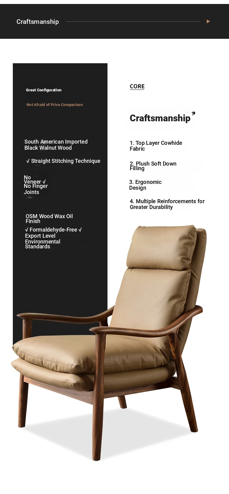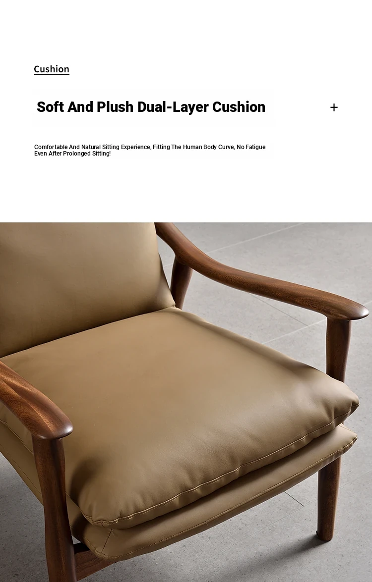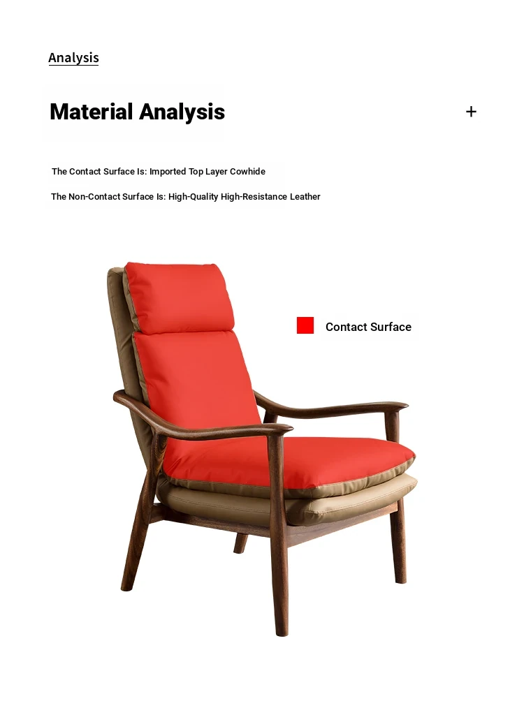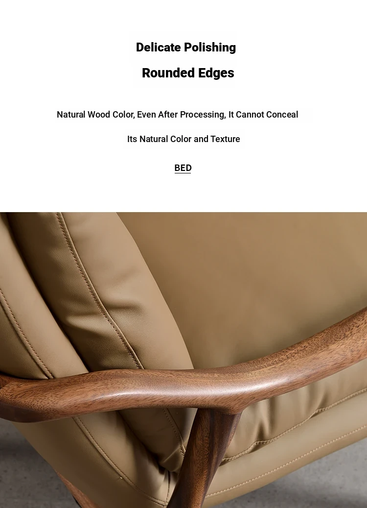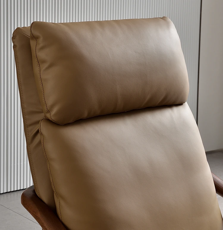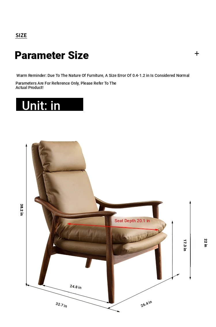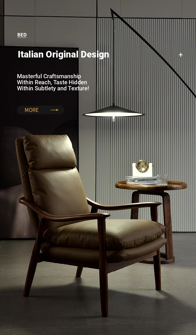 Modern Minimalist Black Walnut Solid Wood Leisure Chair - Comfortable Leather Sofa Chair for Living Room, Perfect for Relaxing on the Balcony or as a Single Recliner.
