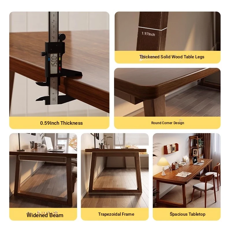 Solid Wood leg walnut color 140*60*75 [0.59in thickened single table] Debang/Jingdong home delivery