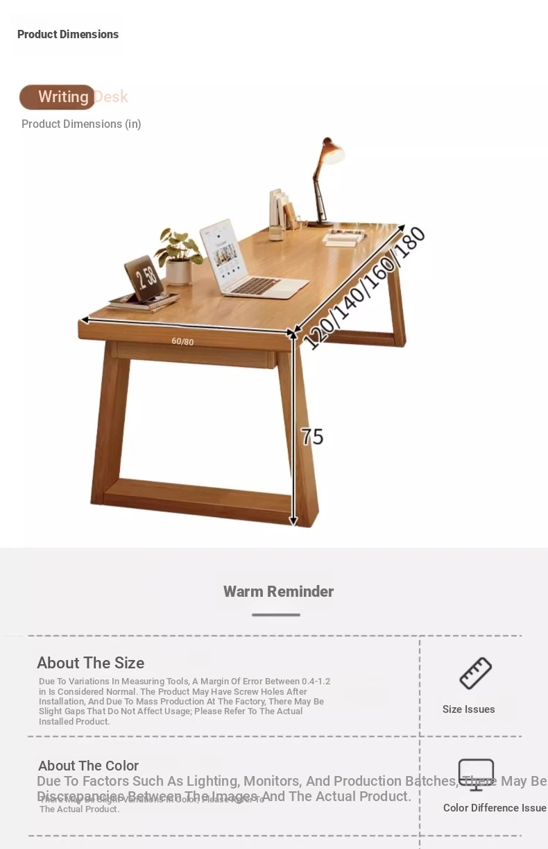 Solid Wood leg log color 140*60*75 [0.59in thickened single table] Debang/Jingdong delivered to your door