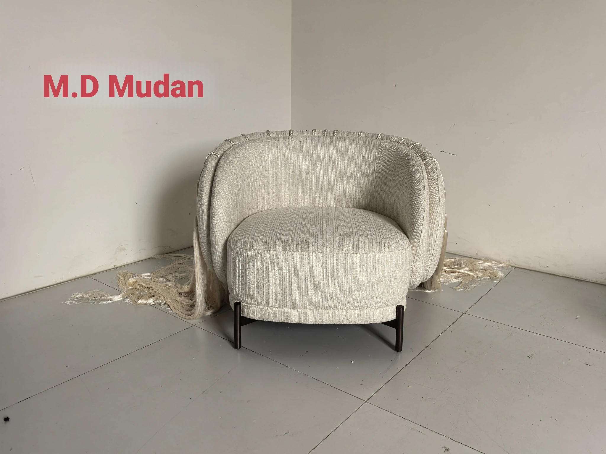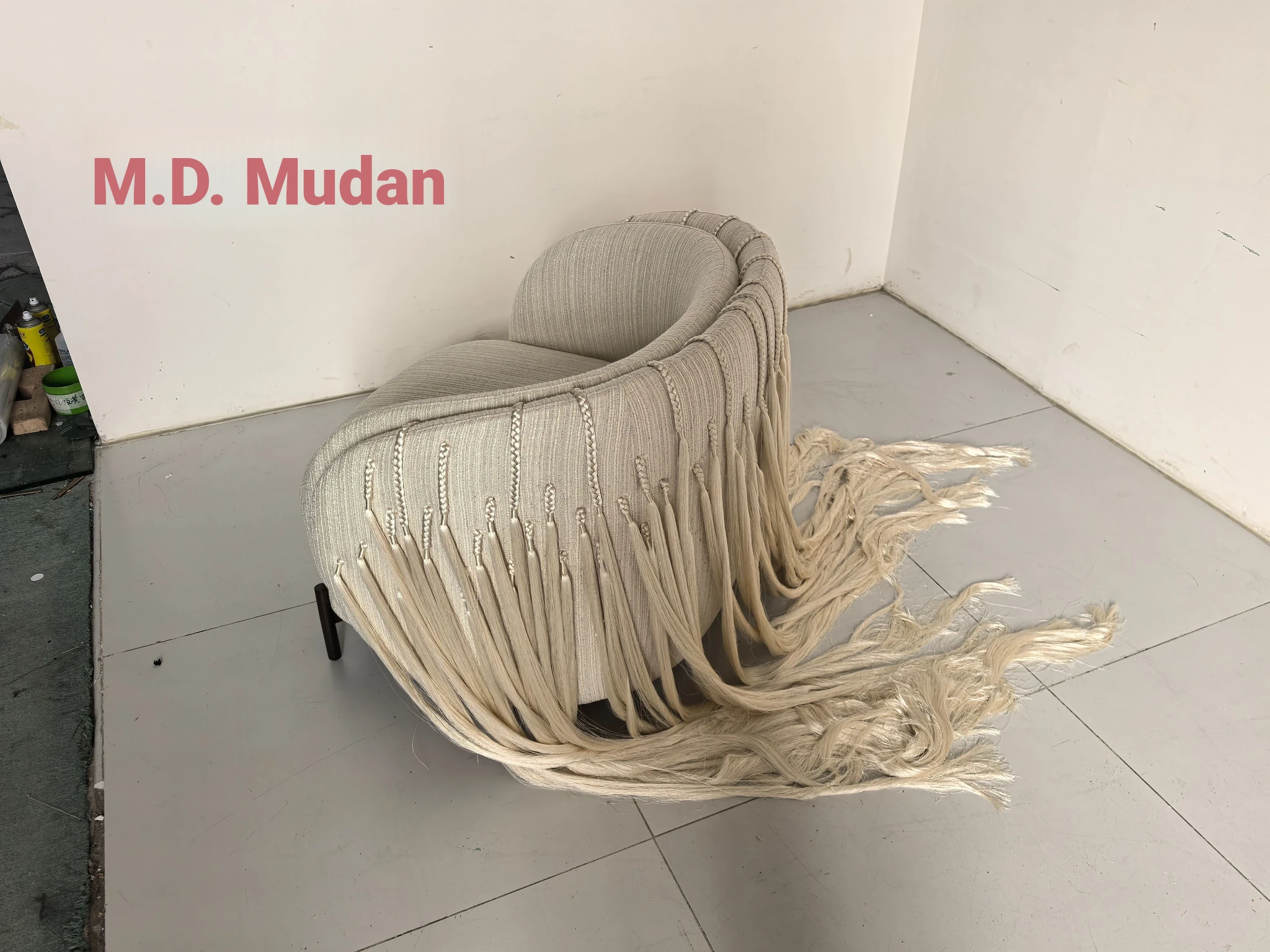 MuDan Designer Vintage Wabi-Sabi Style Handmade Braided Art Single Leisure Sofa - Embrace Unique Charm and Comfort in Your Space