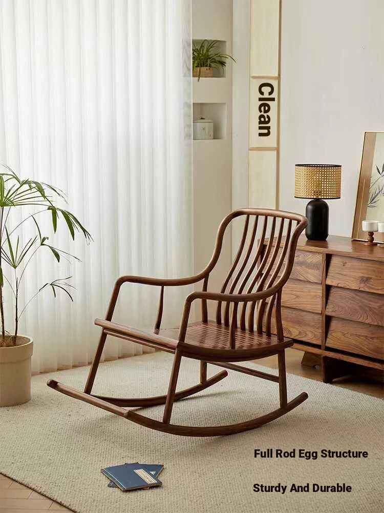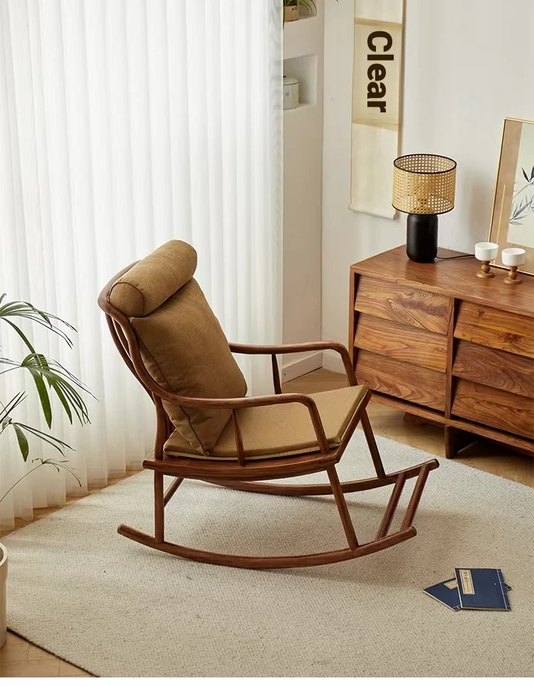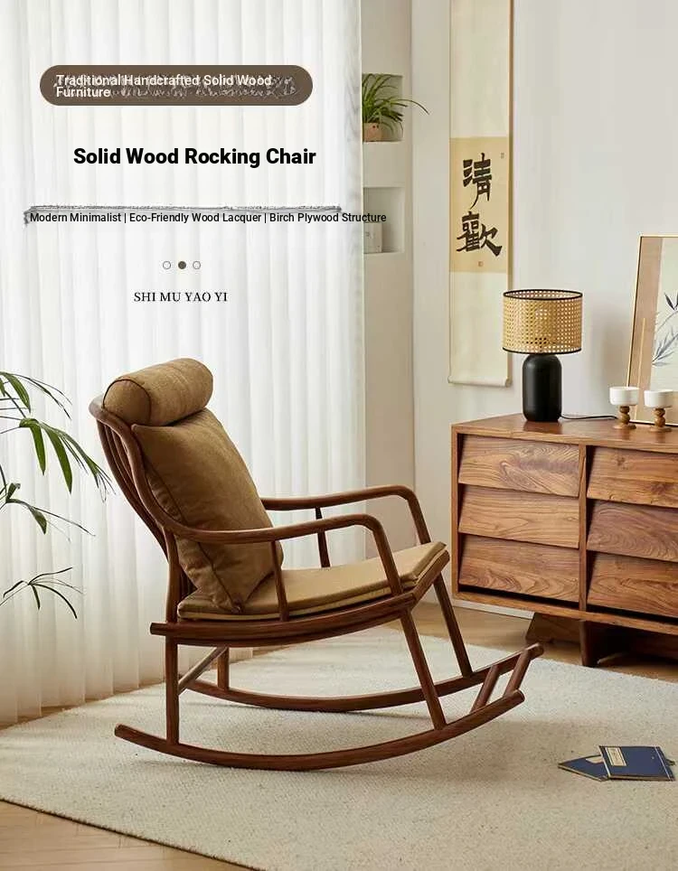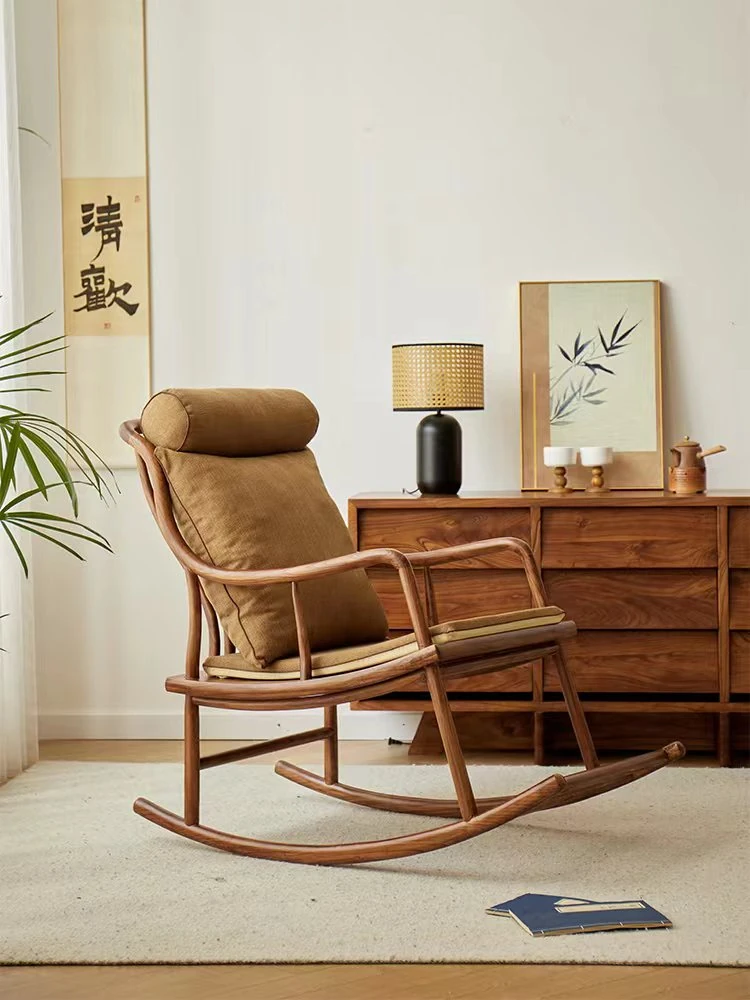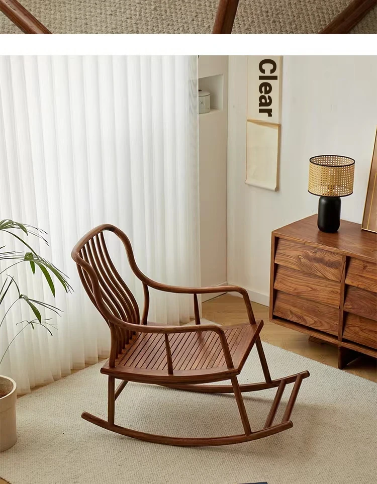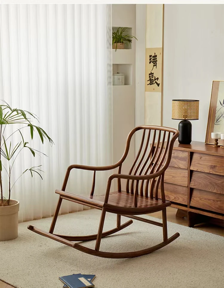 New Chinese Style Solid Elm Rocking Chair for Balcony – Perfect for Home, Living Room, Guesthouse. Comfortable Lounge Chair, Ideal for Relaxation and Napping.