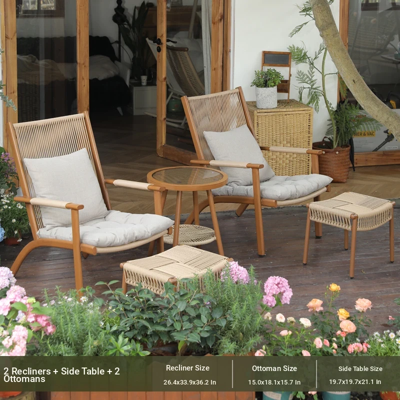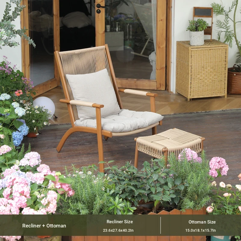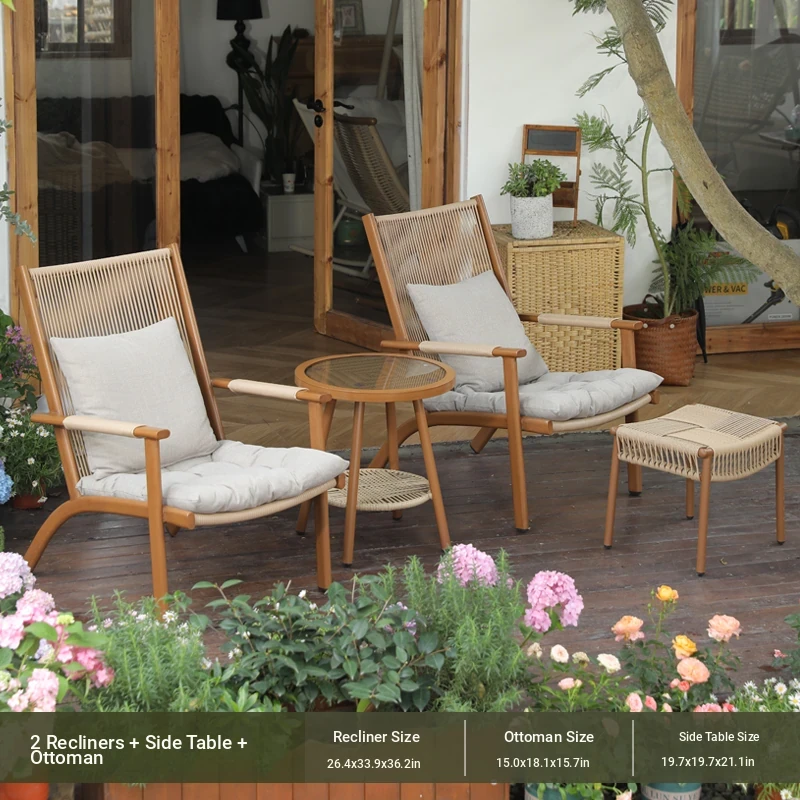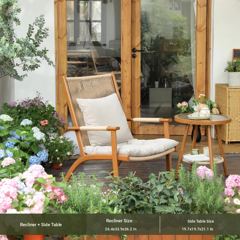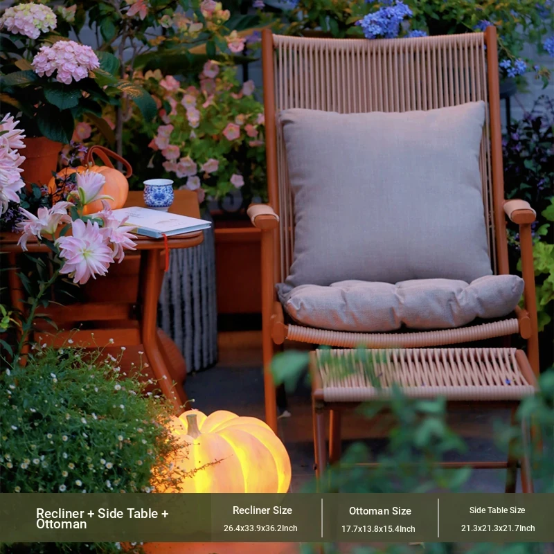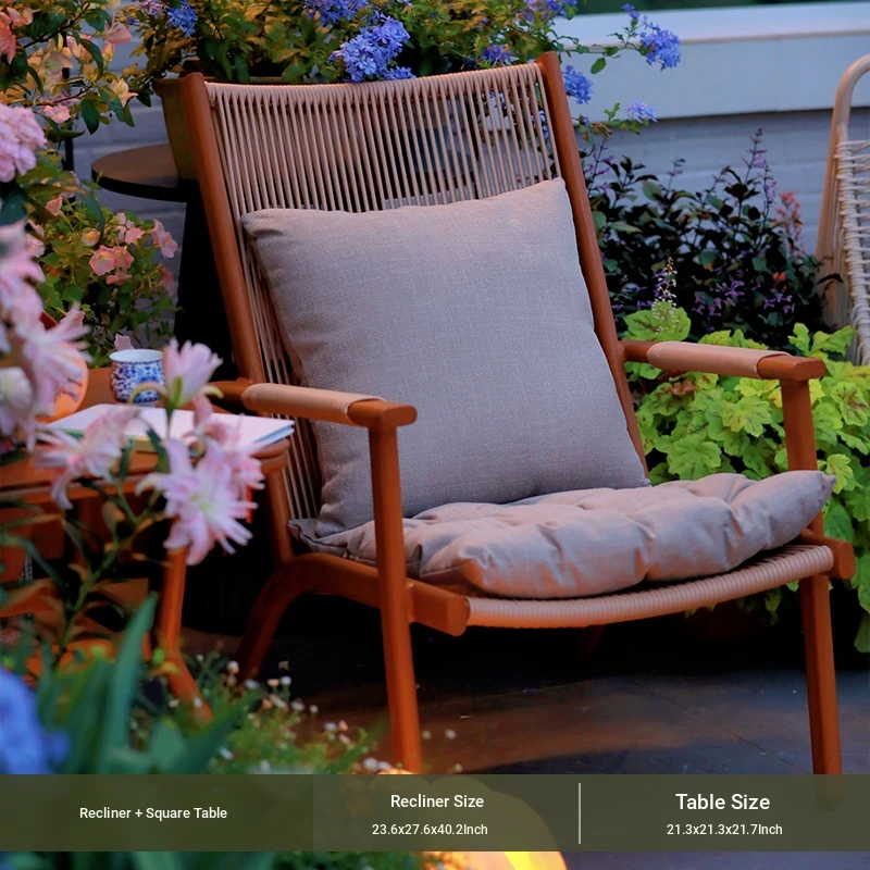 Manshan Recliner + Mufeng Square Table [Deep Wood Grain] + Yunqi Pedal-Complimentary Sofa Cushion + Pillow