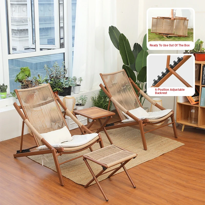 2 Cloud Habitat Folding Chairs + Side Tables + Foot Pedal-Short Cushion + Waist Pillow