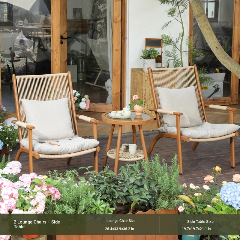 2 Cloud Habitat Folding Chairs + Side Tables-Short Cushion + Waist Pillow