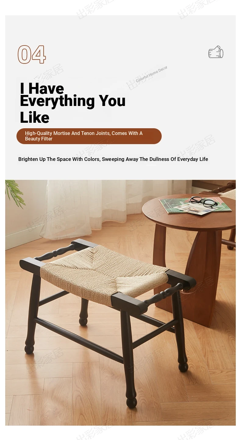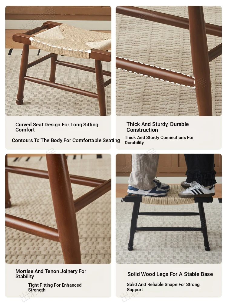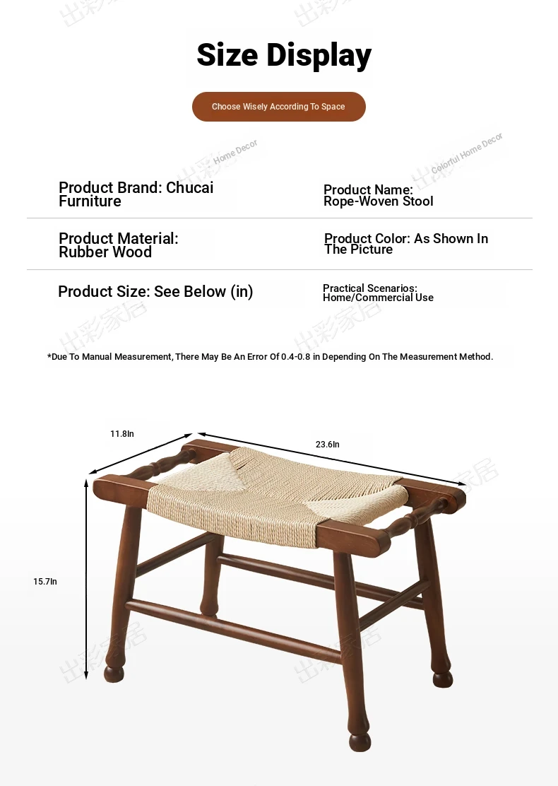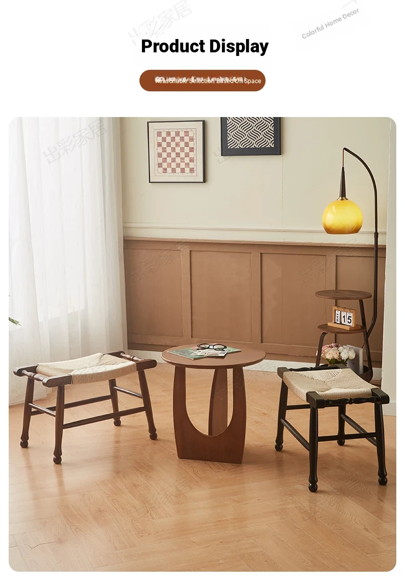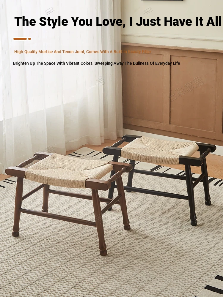 New Wabi-Sabi Style Solid Wood Square Stool - Versatile Entryway Shoe Bench, Living Room Accent, or Bedroom End Table - Stylish and Cozy Braided Low Stool for Home Decor