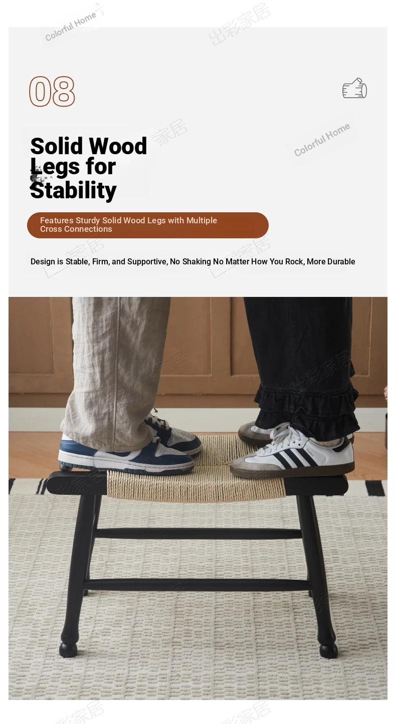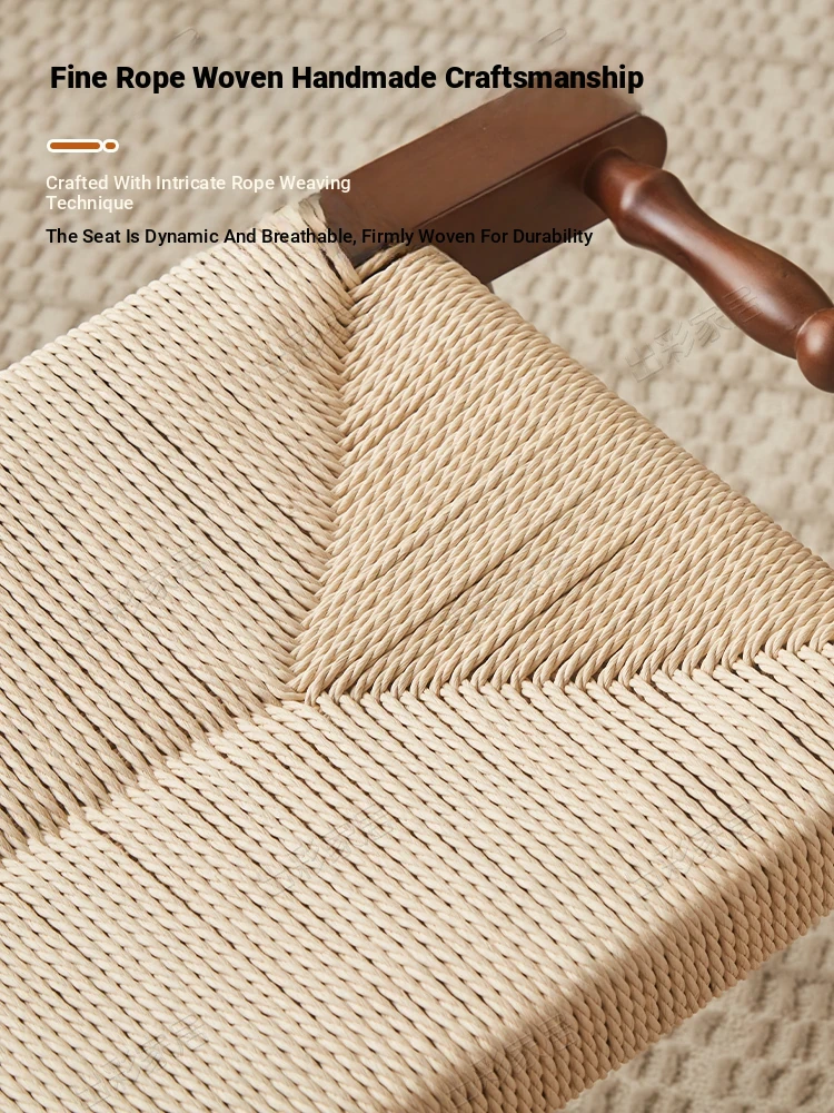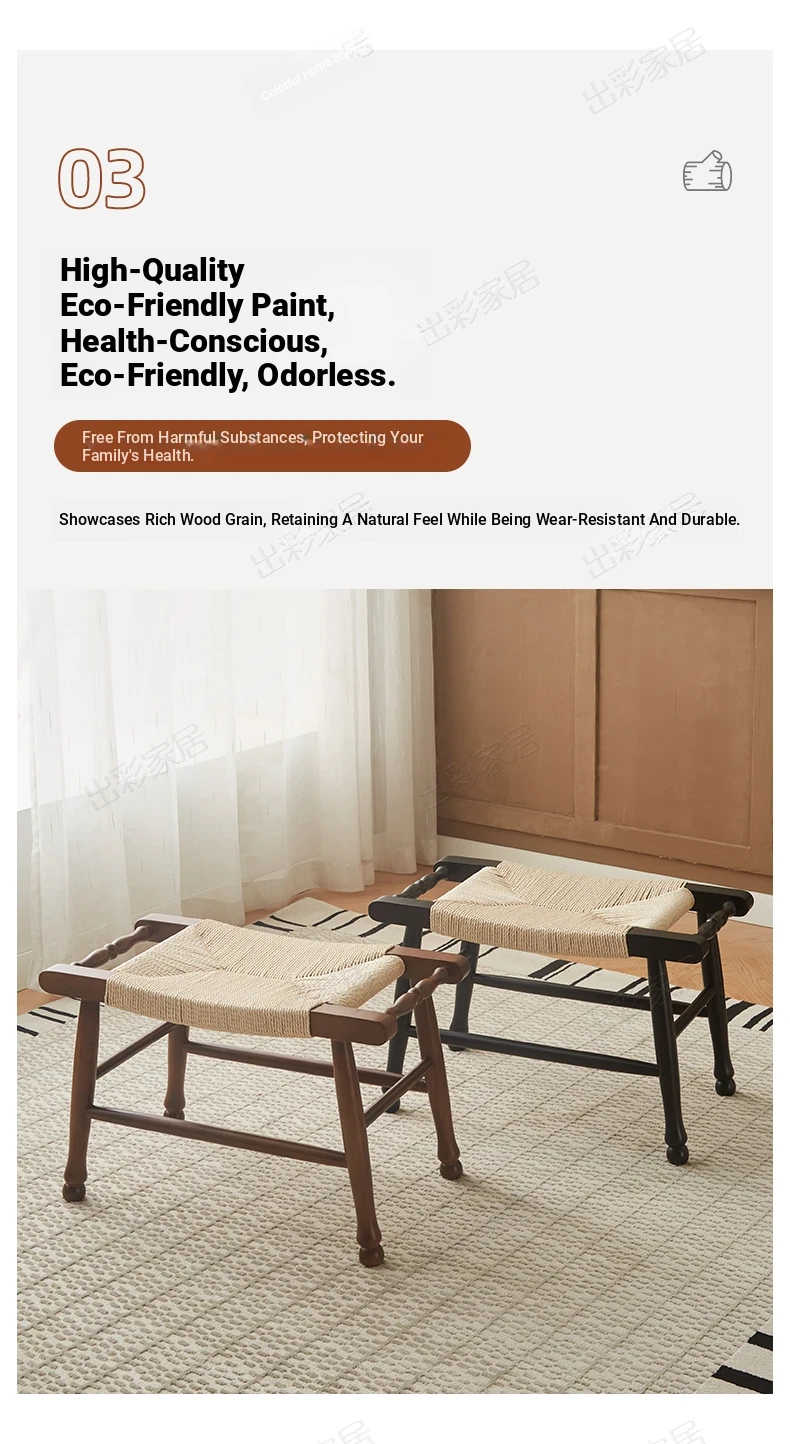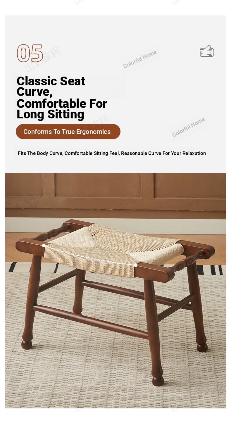 New Wabi-Sabi Style Solid Wood Square Stool - Versatile Entryway Shoe Bench, Living Room Accent, or Bedroom End Table - Stylish and Cozy Braided Low Stool for Home Decor