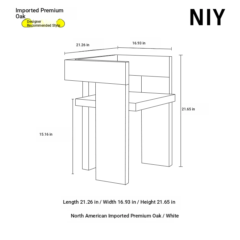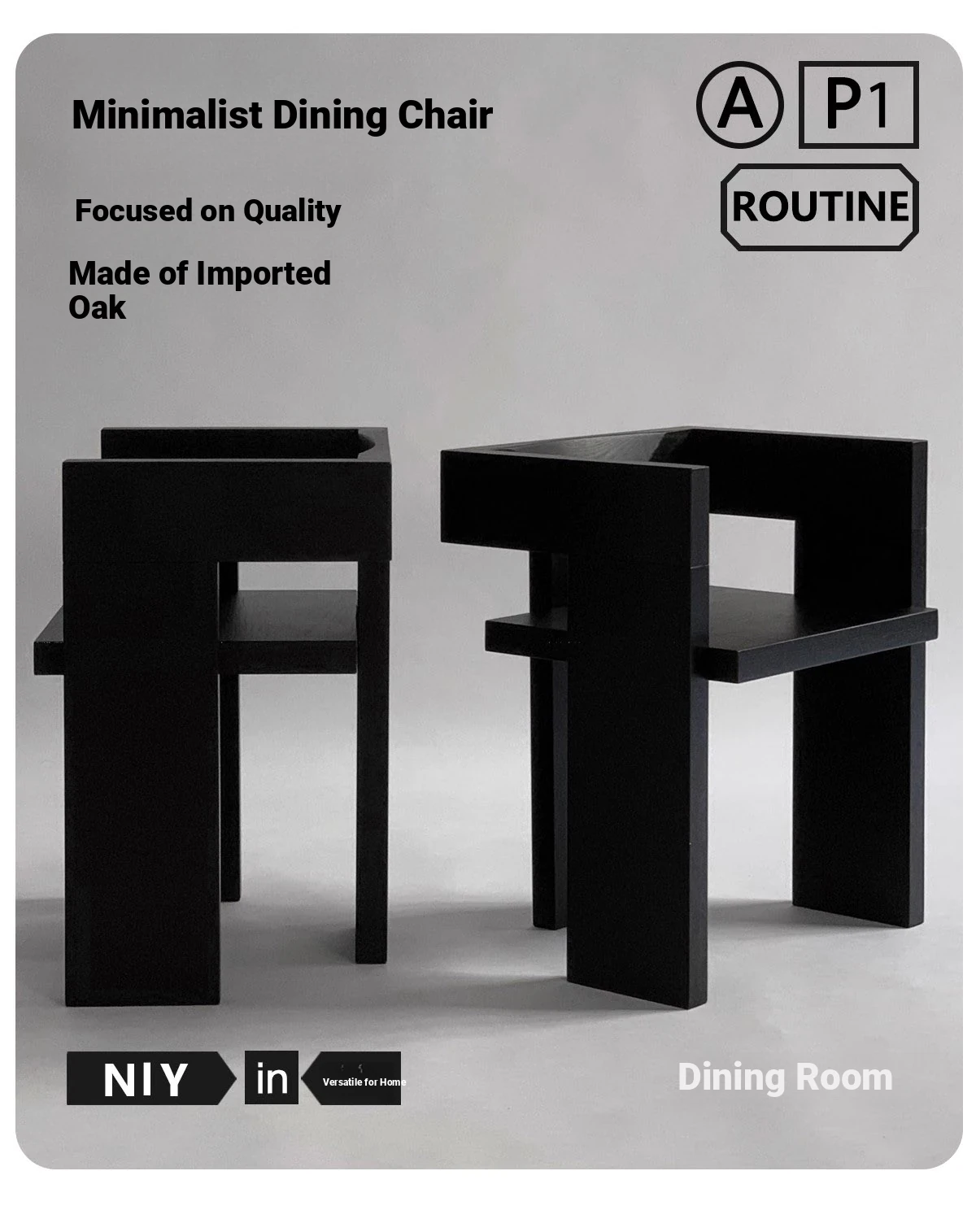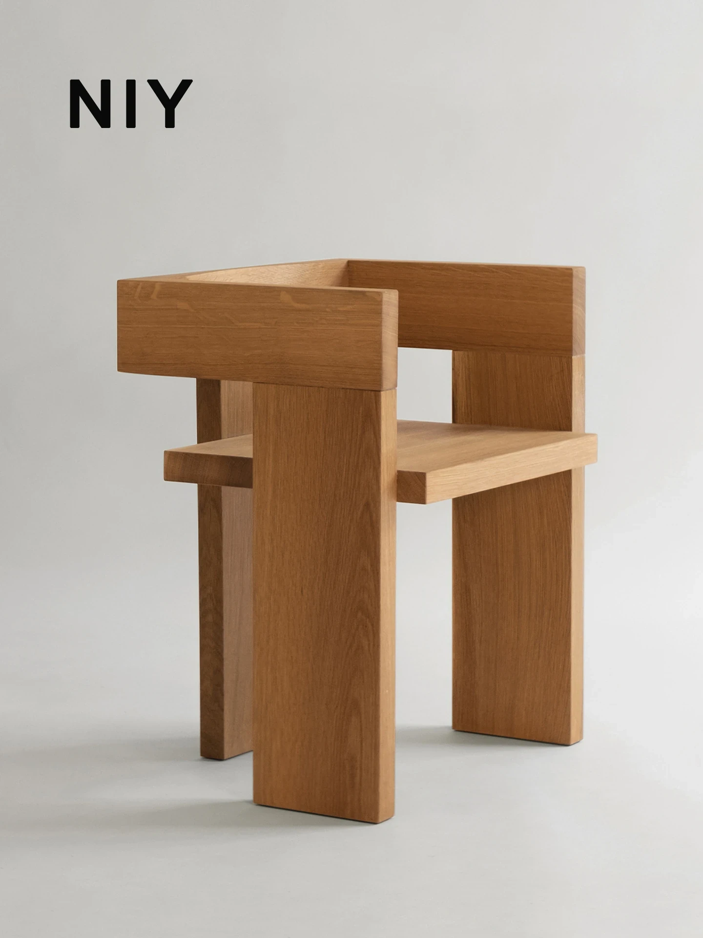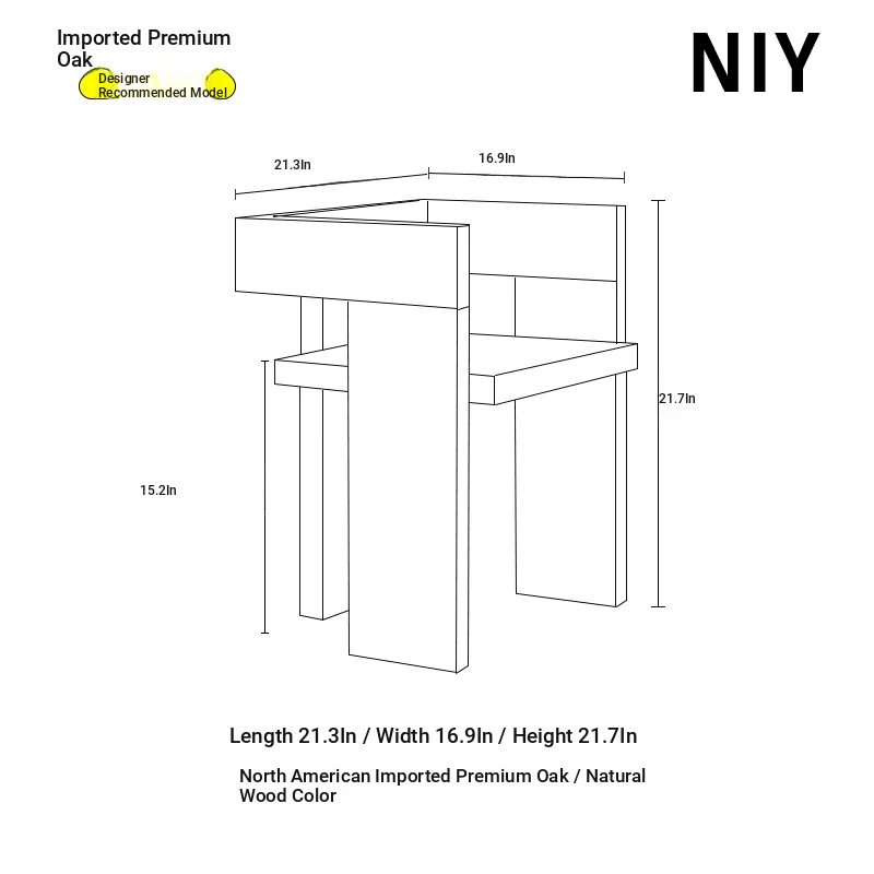NIY Geometric Shaped Dining Chair - Unique Solid Wood Long Bench, Creative Postmodern Low Stool, Stylish Single Seat for Vintage Lovers