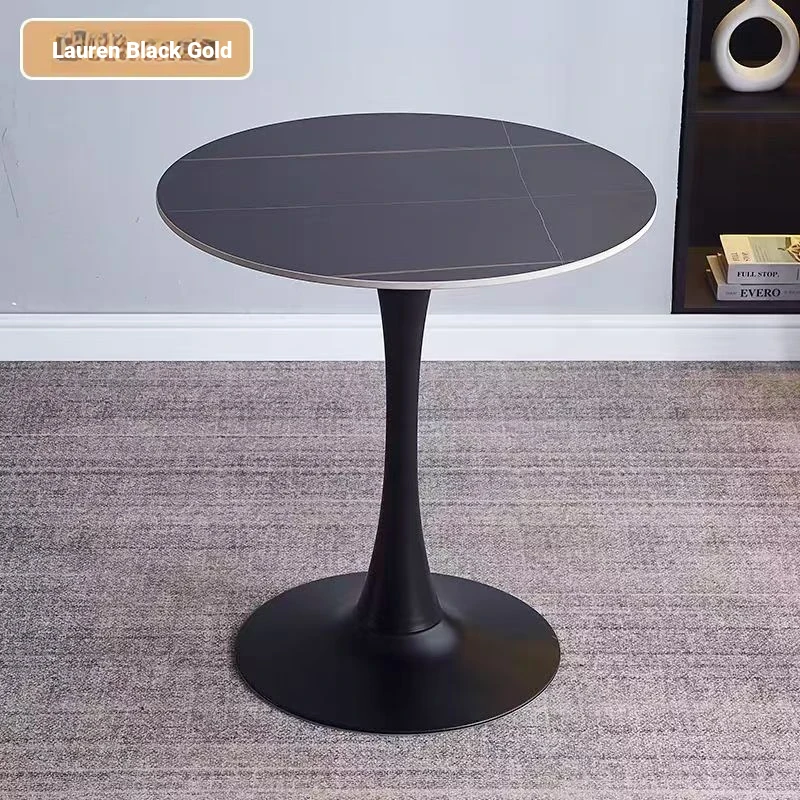 Rock Slab Table Diameter 23.62in Lauren Black Gold