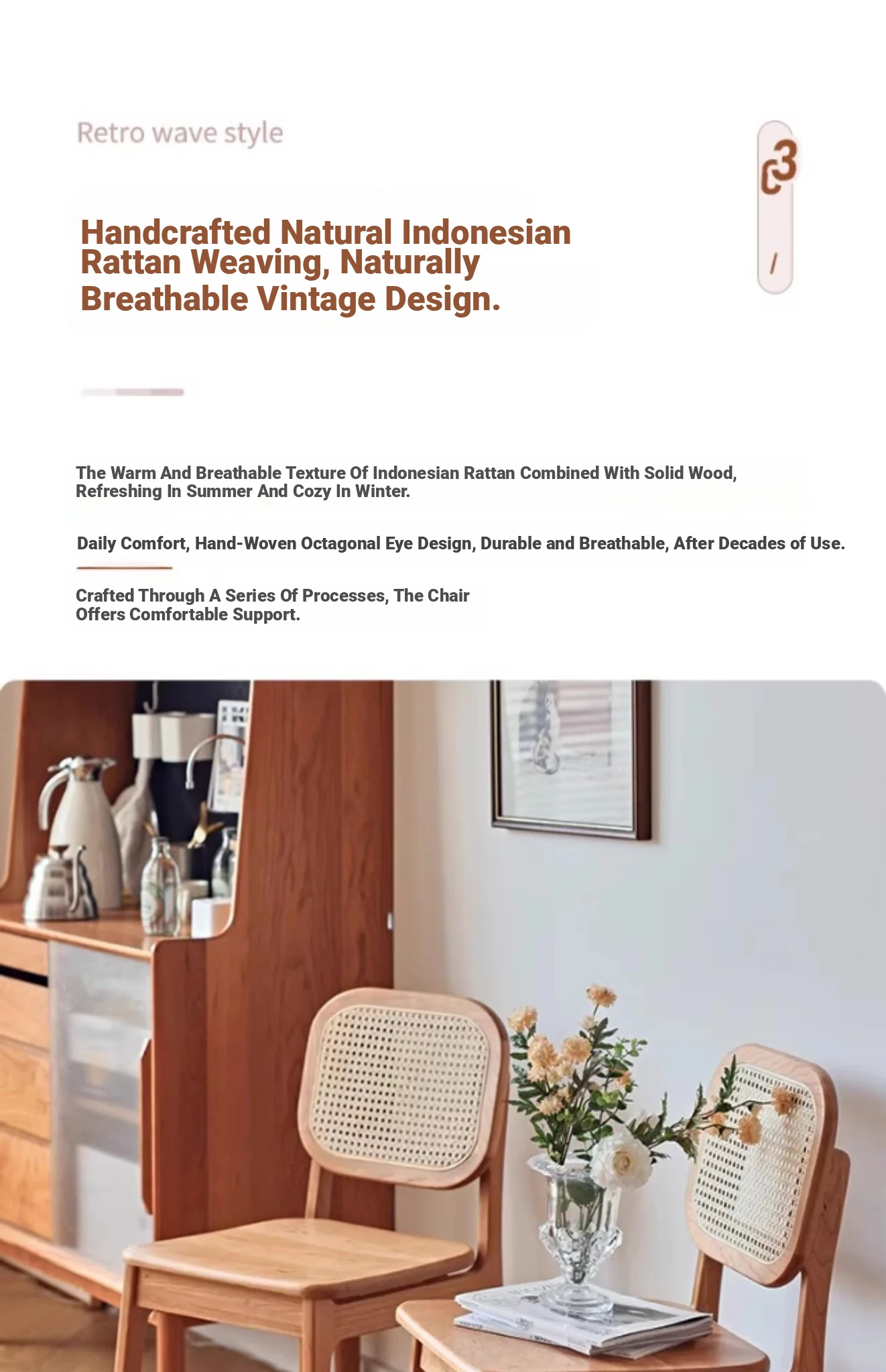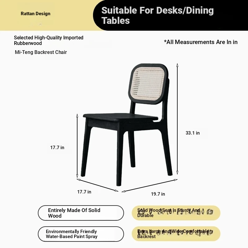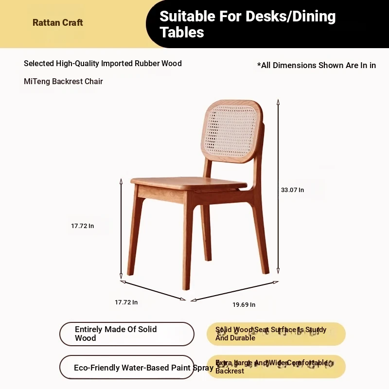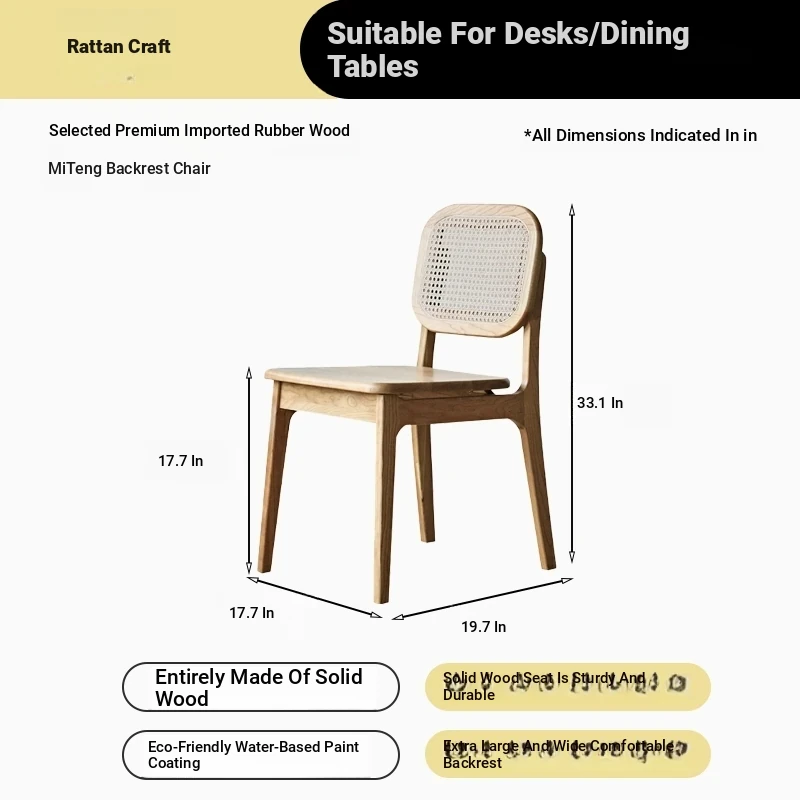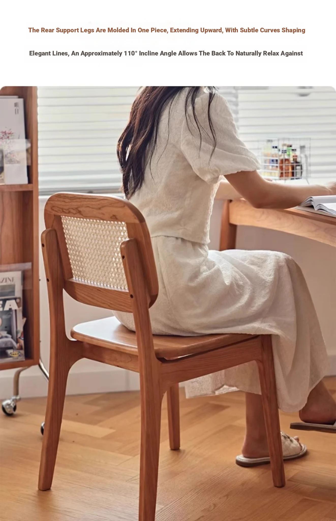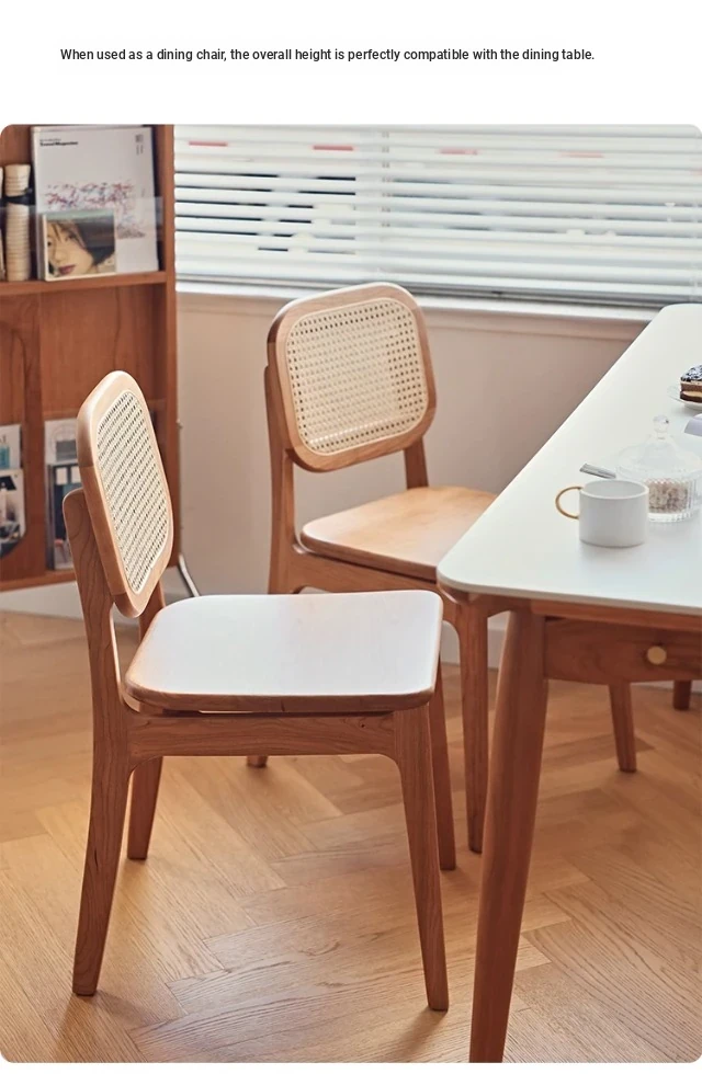 Nordic Japanese Solid Wood Dining Chair - Comfortable Home Restaurant Seat for Meals, Casual Meetings, with Relaxing Backrest and Rattan Weave Design. Perfect for Dining and Leisure!