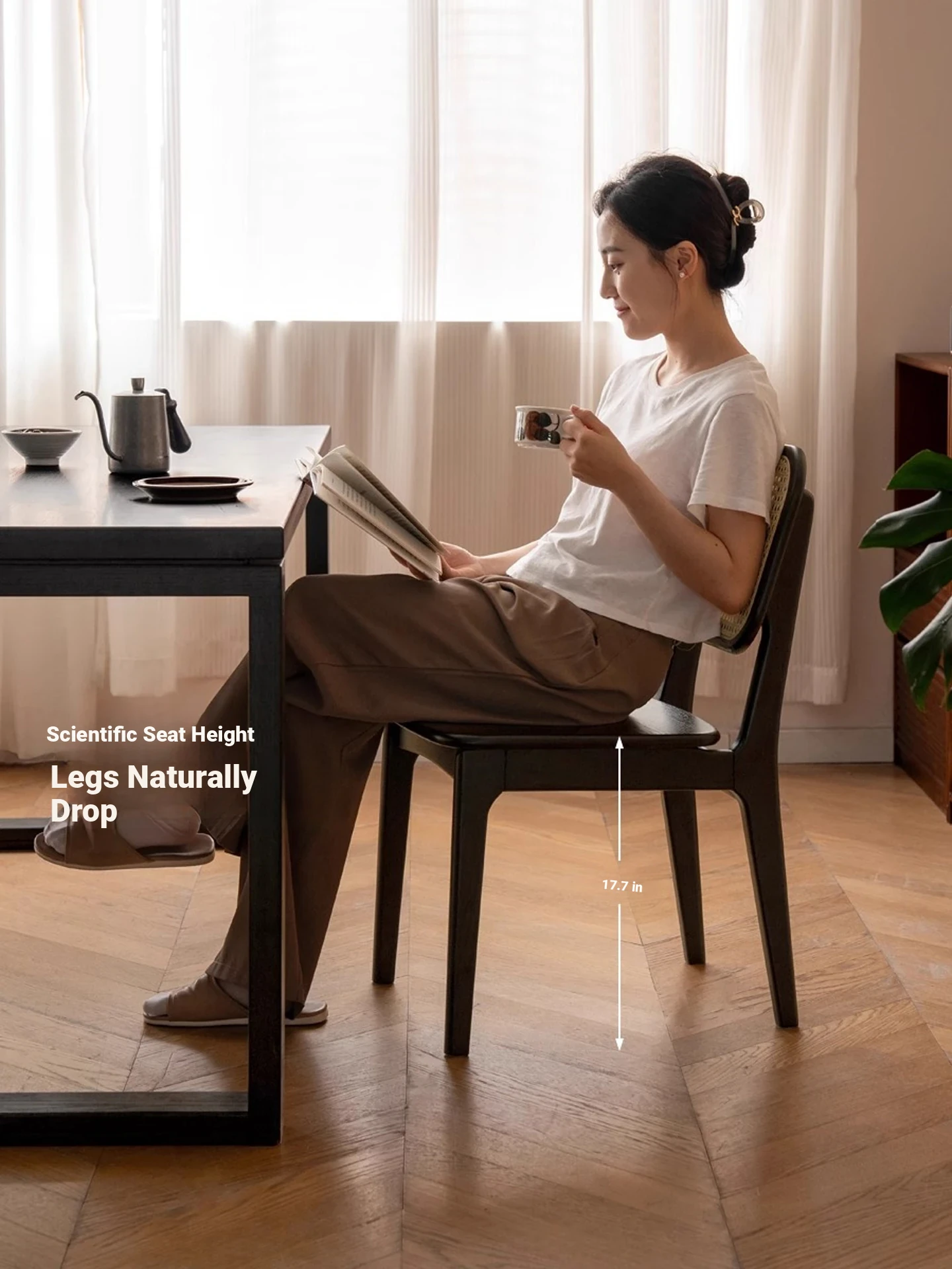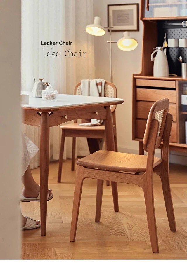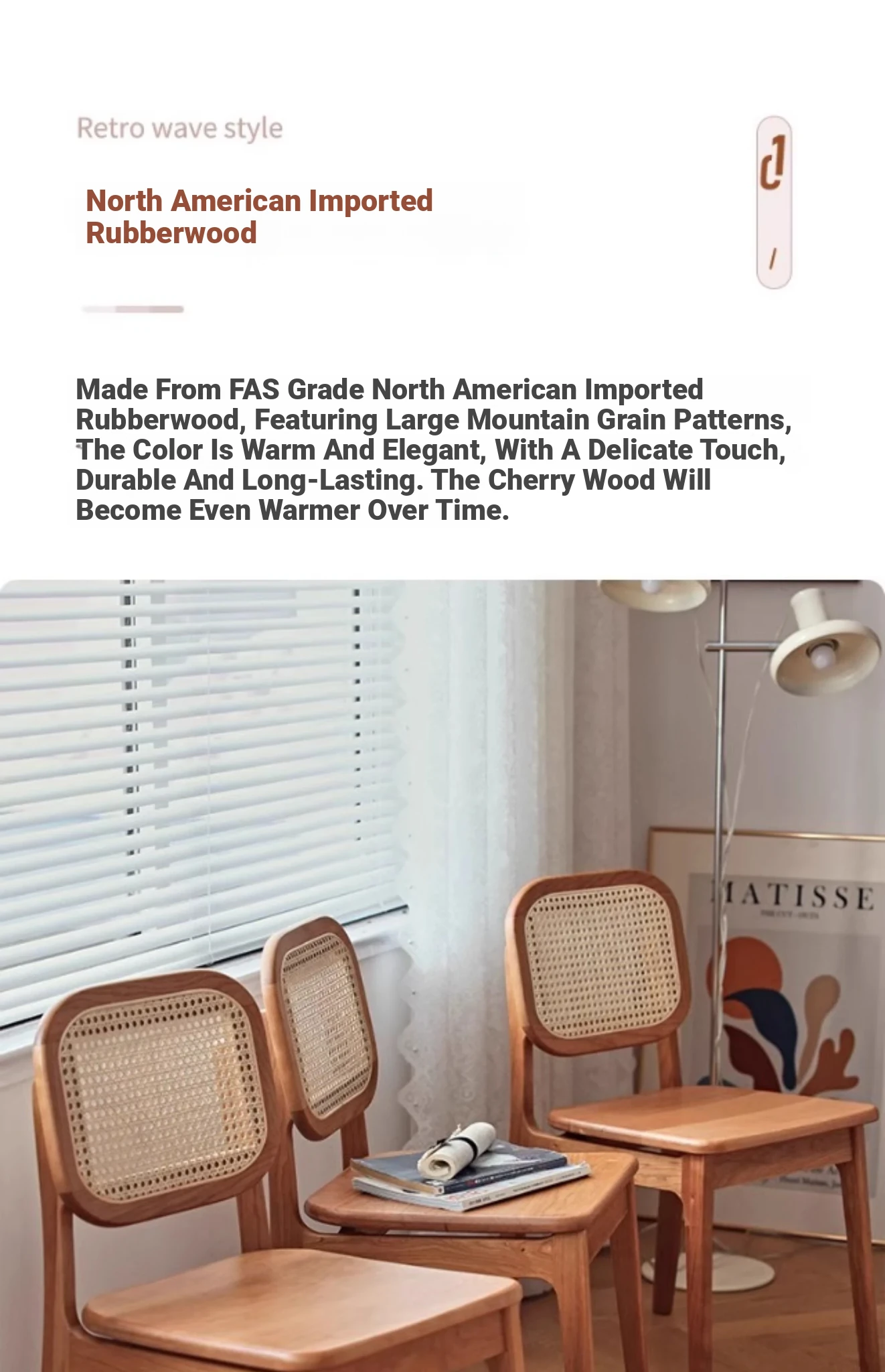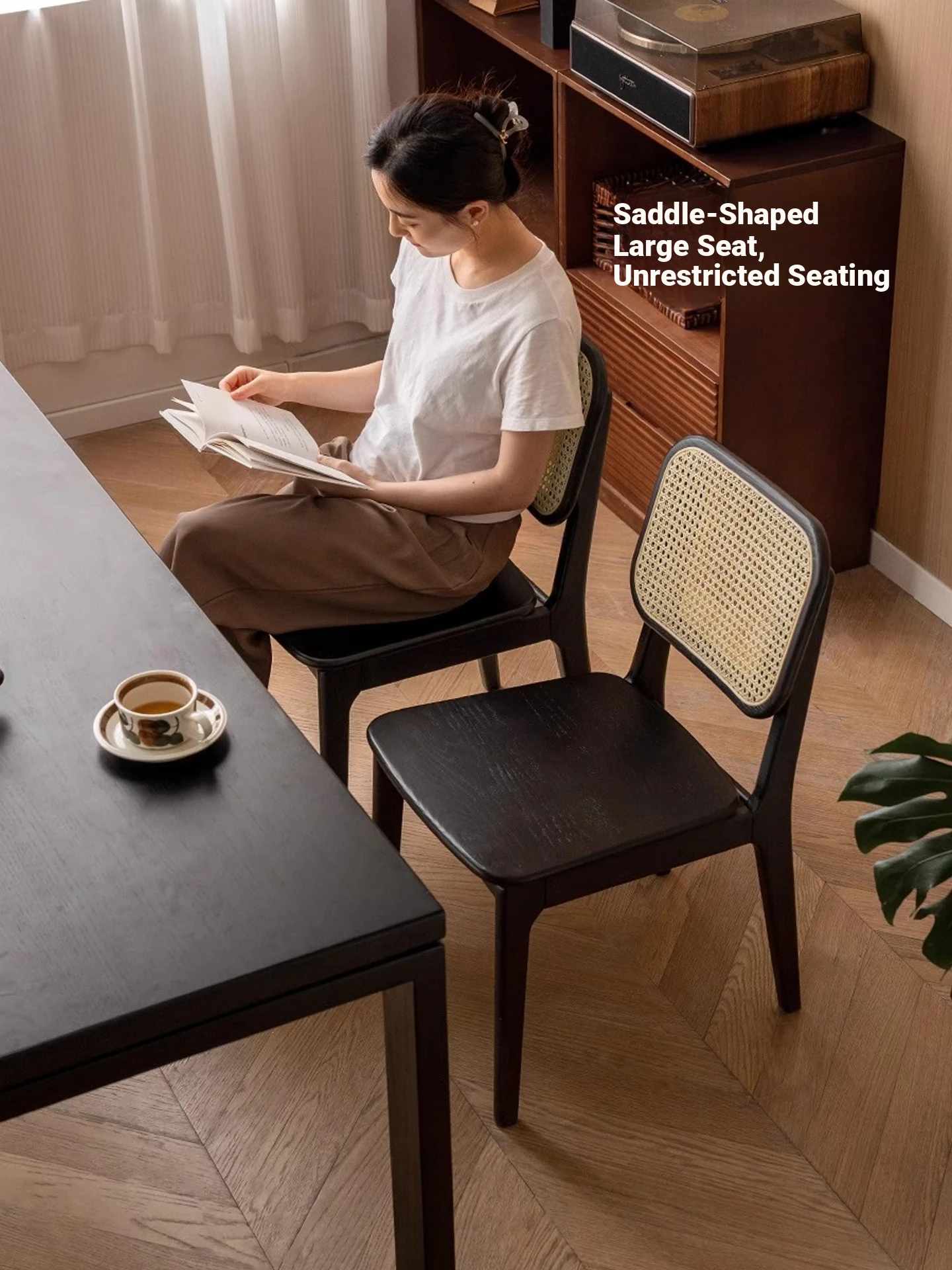 Nordic Japanese Solid Wood Dining Chair - Comfortable Home Restaurant Seat for Meals, Casual Meetings, with Relaxing Backrest and Rattan Weave Design. Perfect for Dining and Leisure!