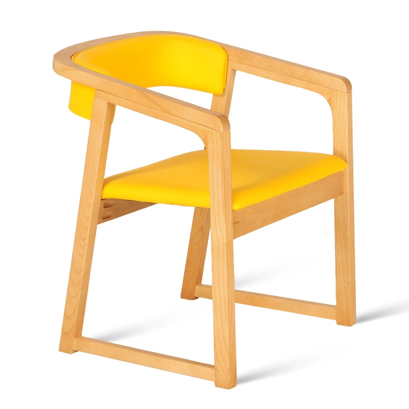 Rectangular chair white wax wood (original wood-coloured armrest + yellow PU)