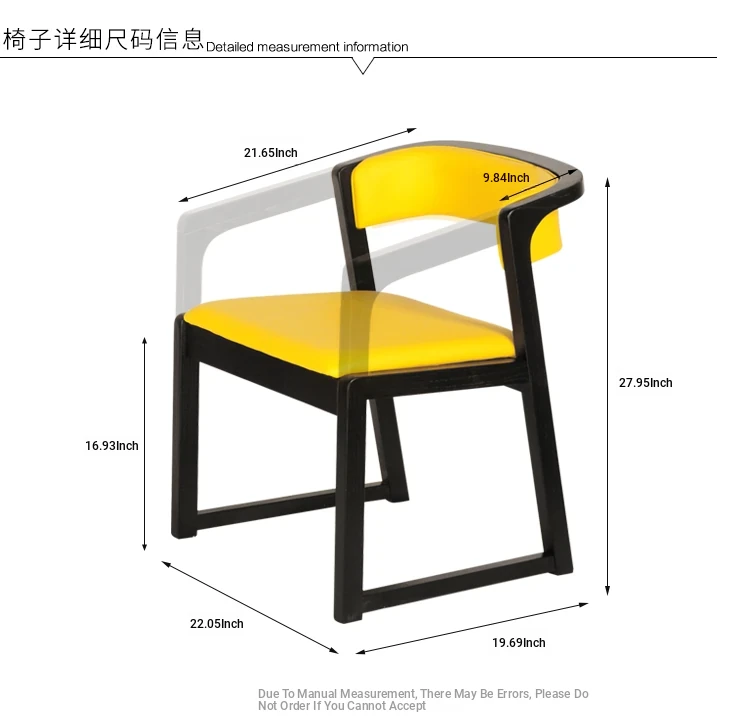 Rectangular chair white wax wood (black without armrest + yellow PU)