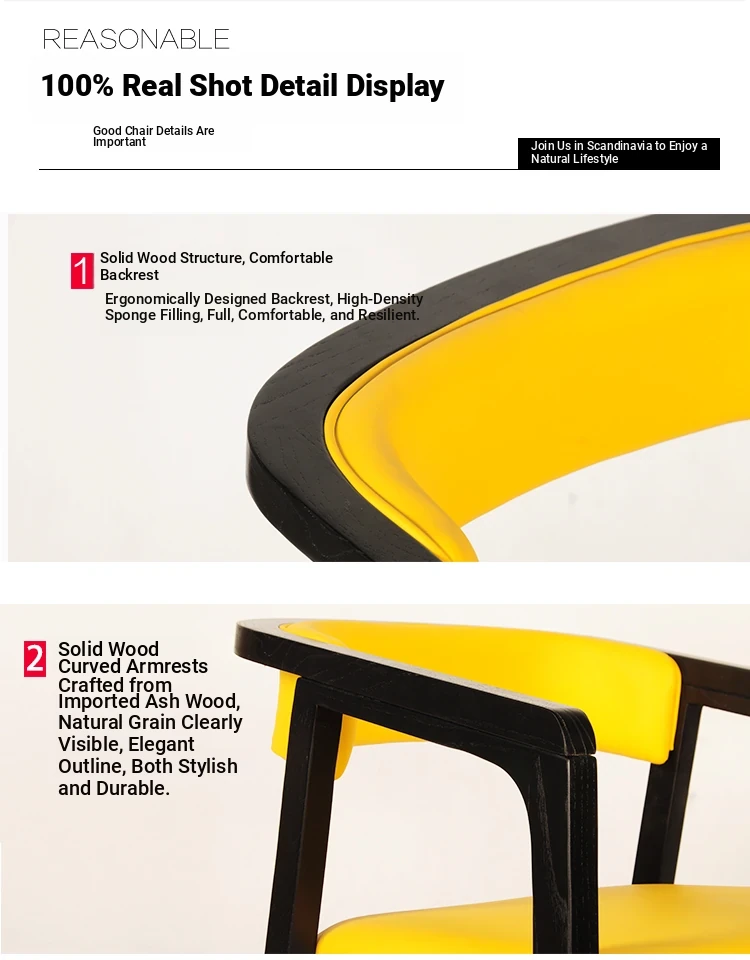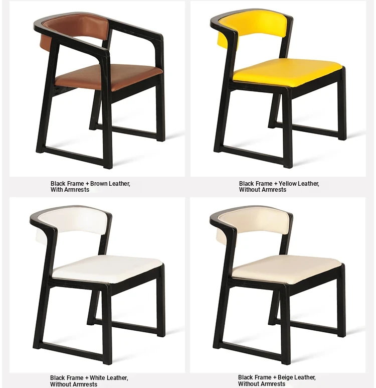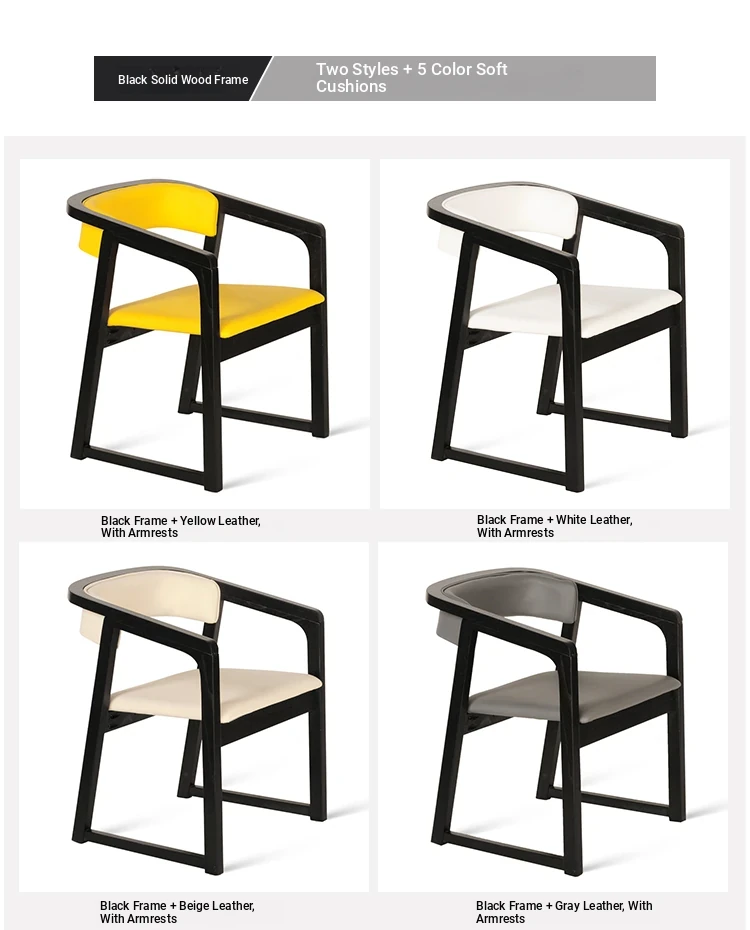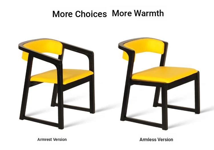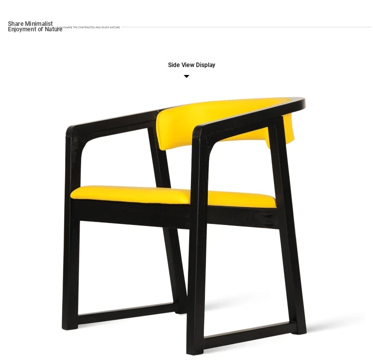 Rectangular chair white wax wood (black with armrest + yellow PU)
