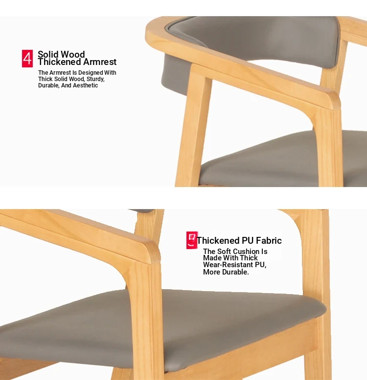 Rectangular chair white wax wood (original wood-coloured armrest + grey PU)