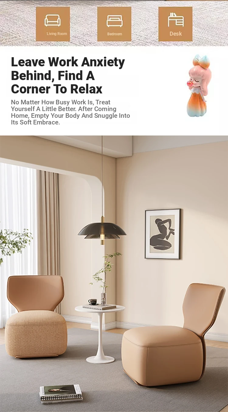 Nordic Style Single Sofa Chair - Elegant and Cozy Armchair for Small Spaces, Perfect for Living Room or Balcony Relaxation, Upholstered Fabric Lazy Chair