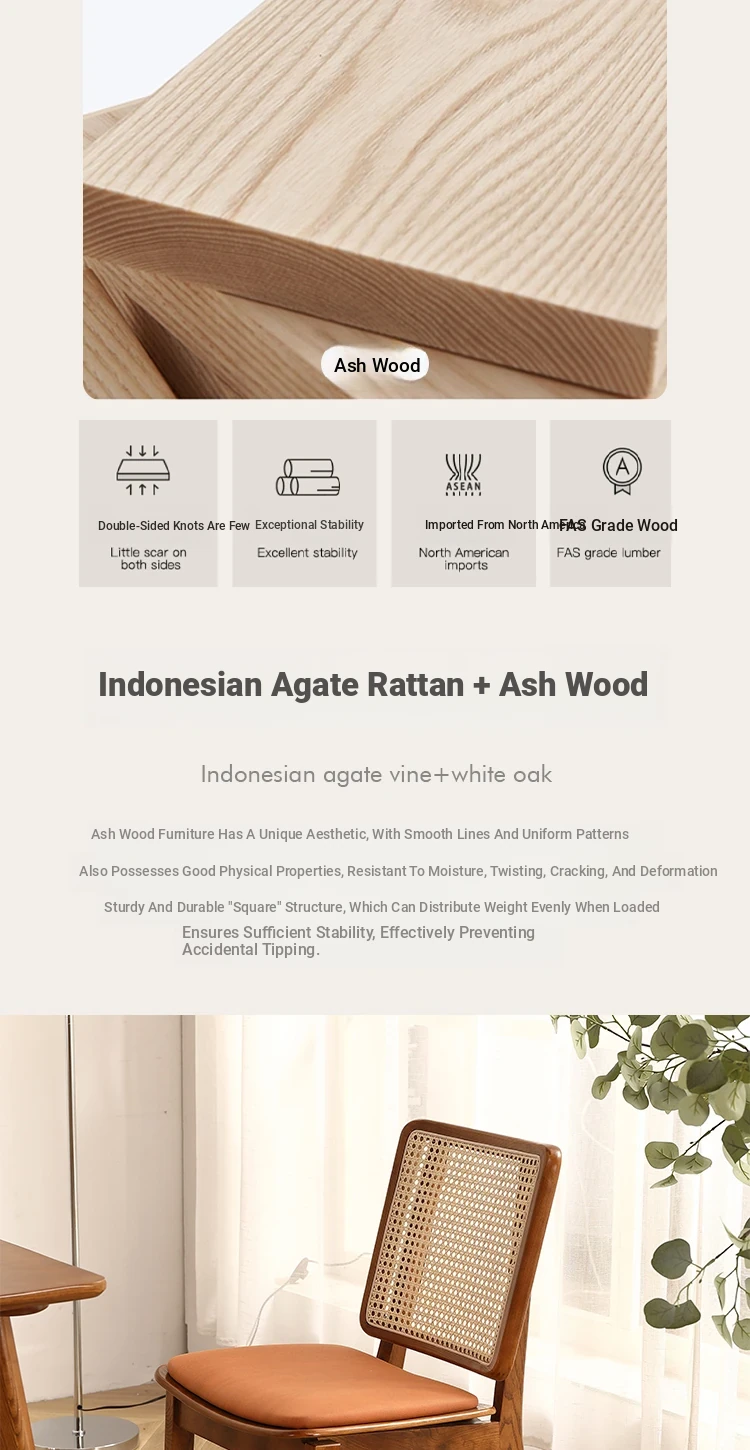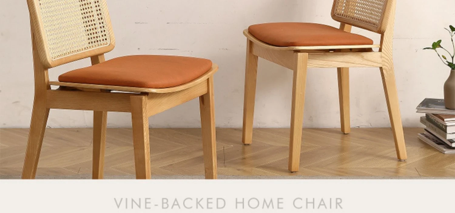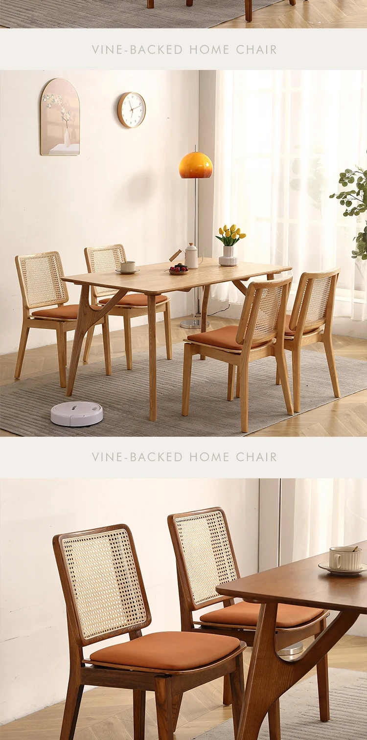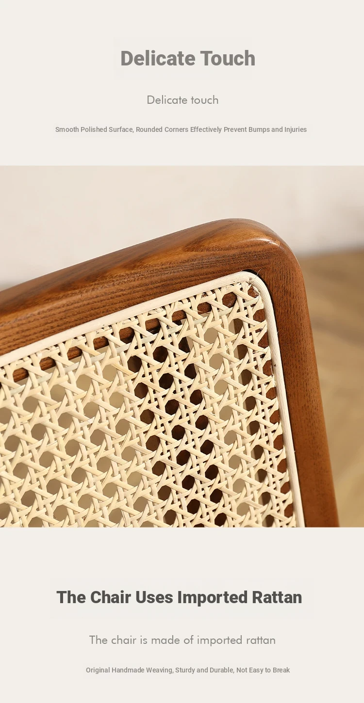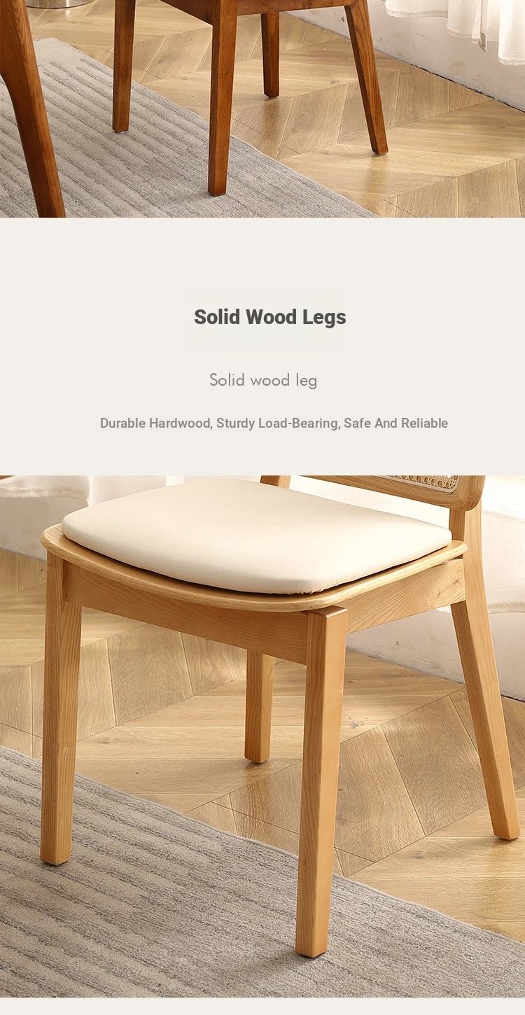 Solid Ash Wood Dining Chair with Rattan Backrest - Minimalist Wabi-Sabi Style for Hotels, Cafés, and Guesthouses - Perfect for Modern Interiors