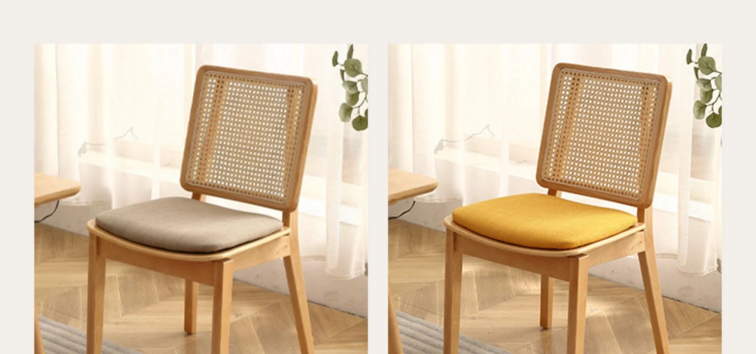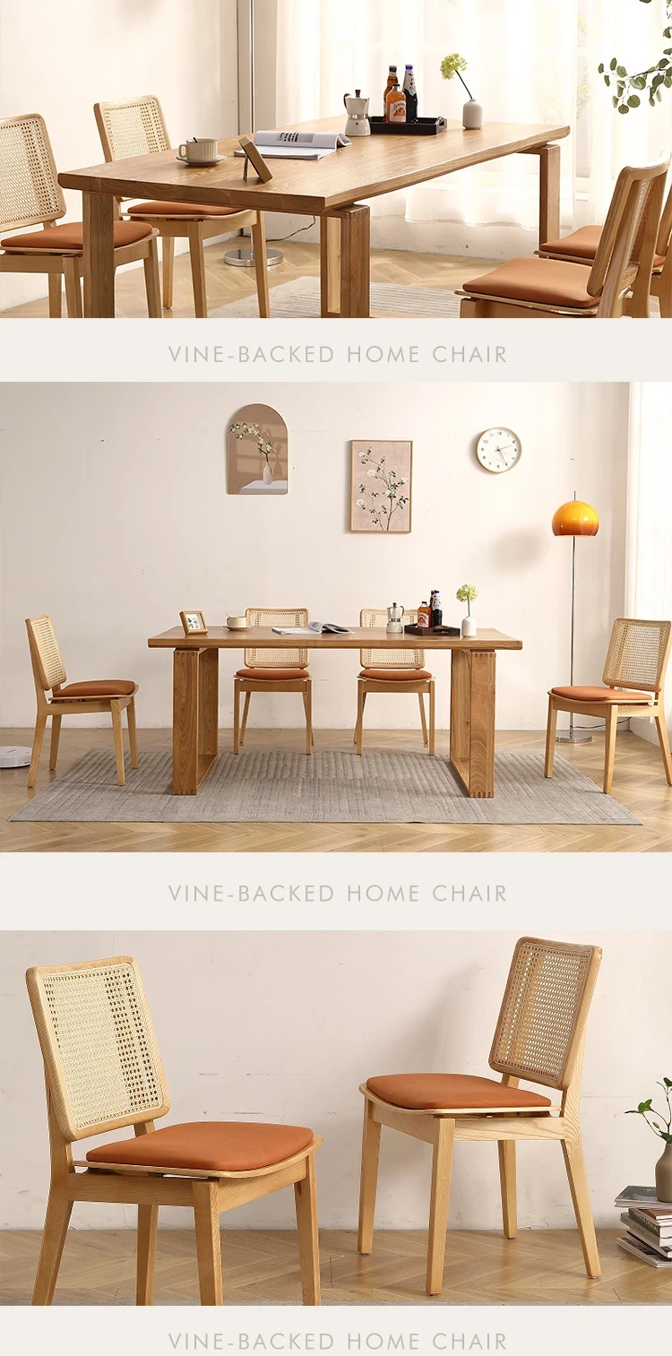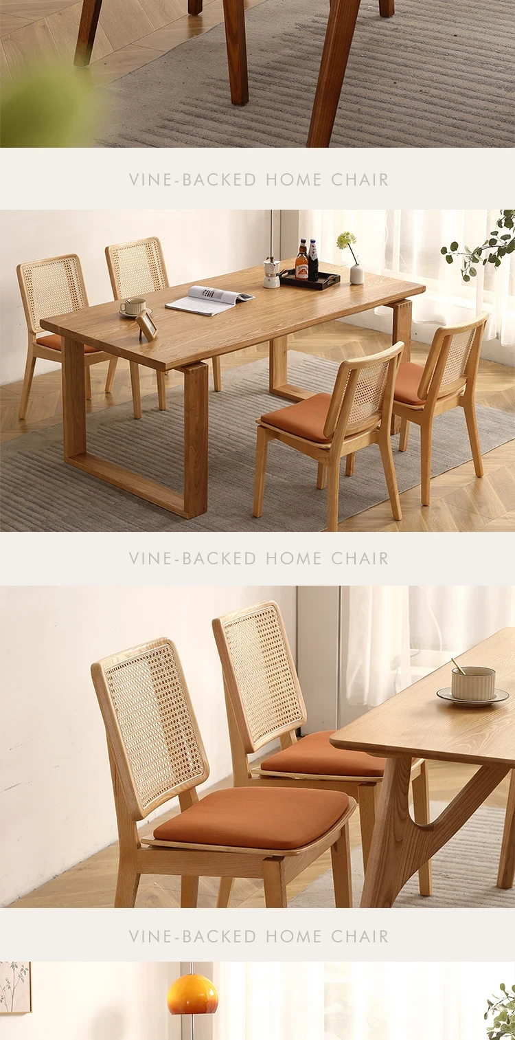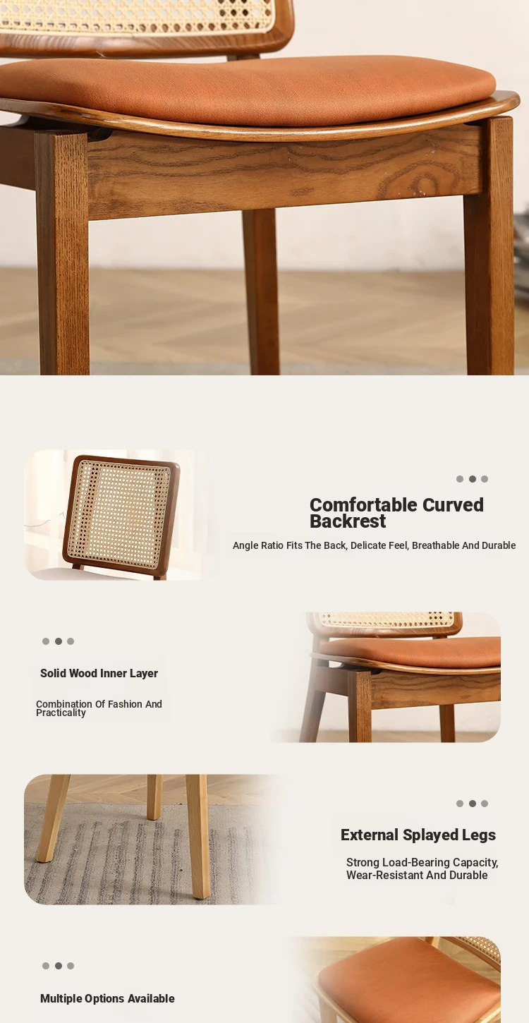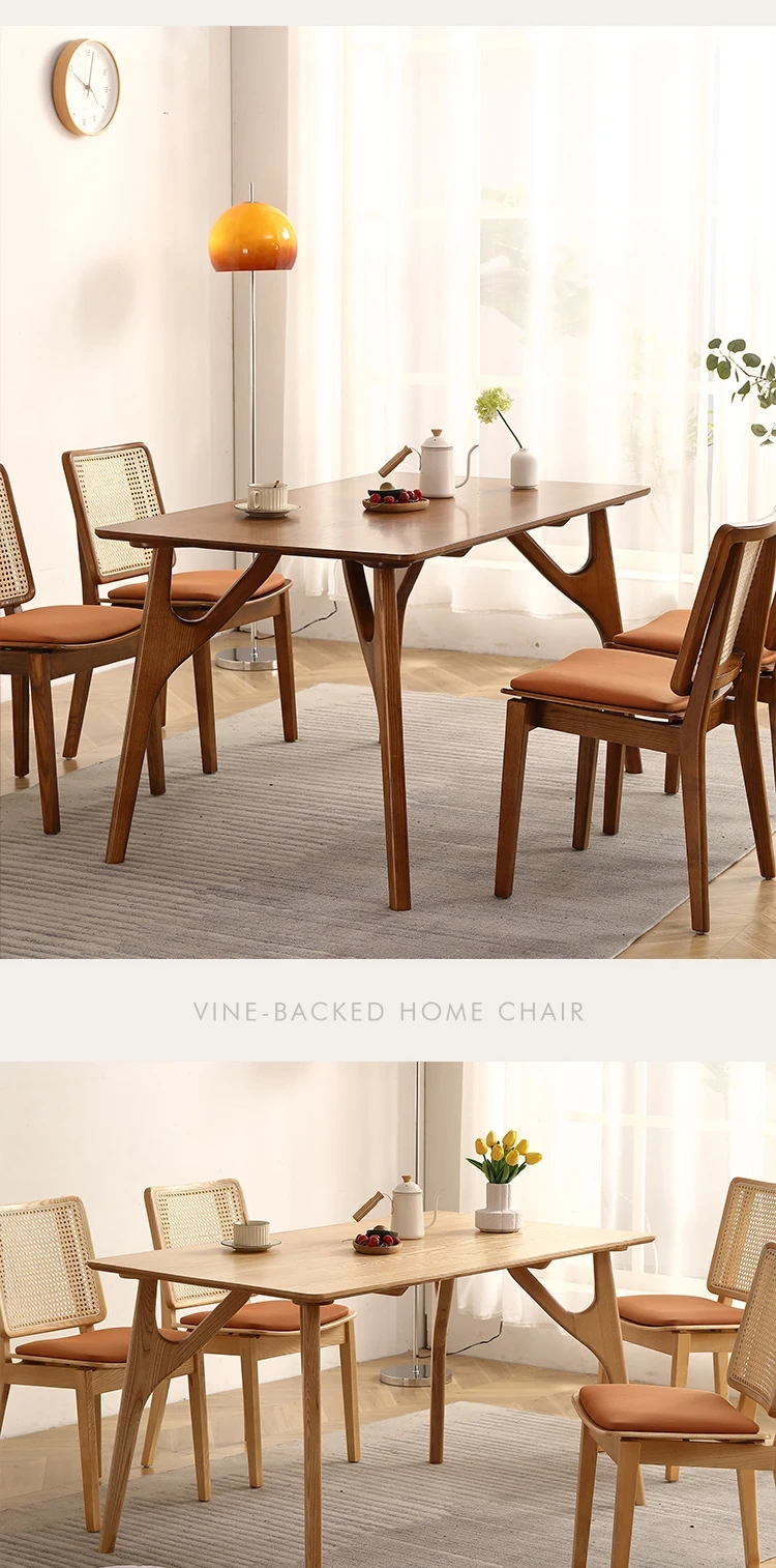 Solid Ash Wood Dining Chair with Rattan Backrest - Minimalist Wabi-Sabi Style for Hotels, Cafés, and Guesthouses - Perfect for Modern Interiors