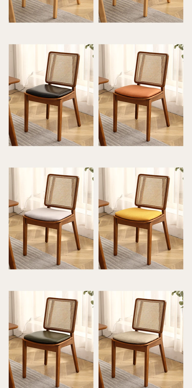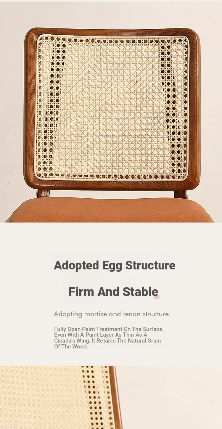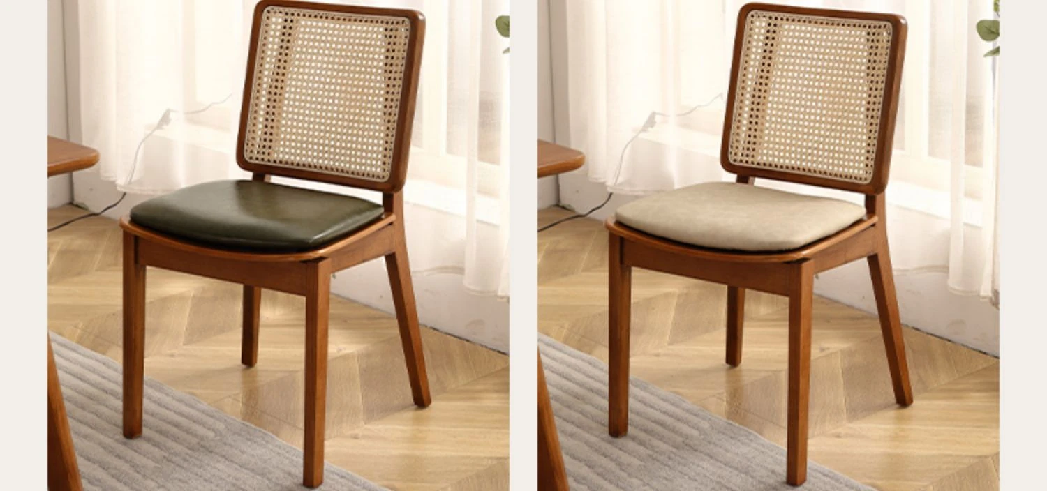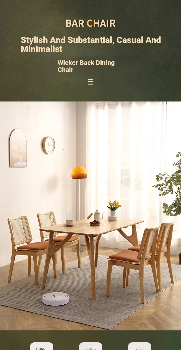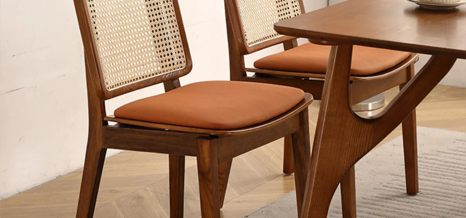 Solid Ash Wood Dining Chair with Rattan Backrest - Minimalist Wabi-Sabi Style for Hotels, Cafés, and Guesthouses - Perfect for Modern Interiors