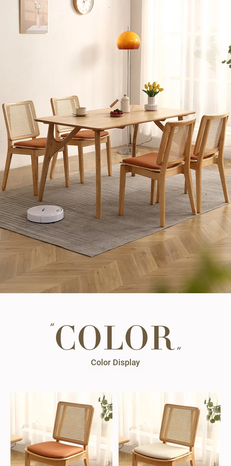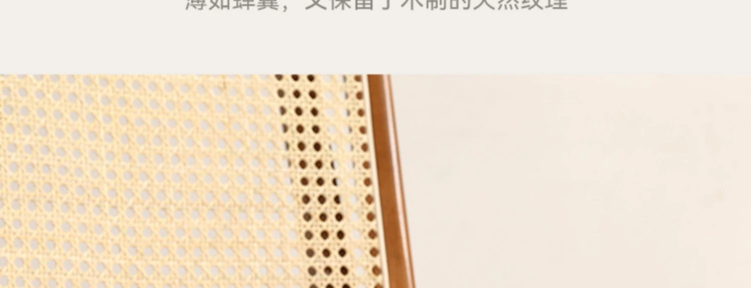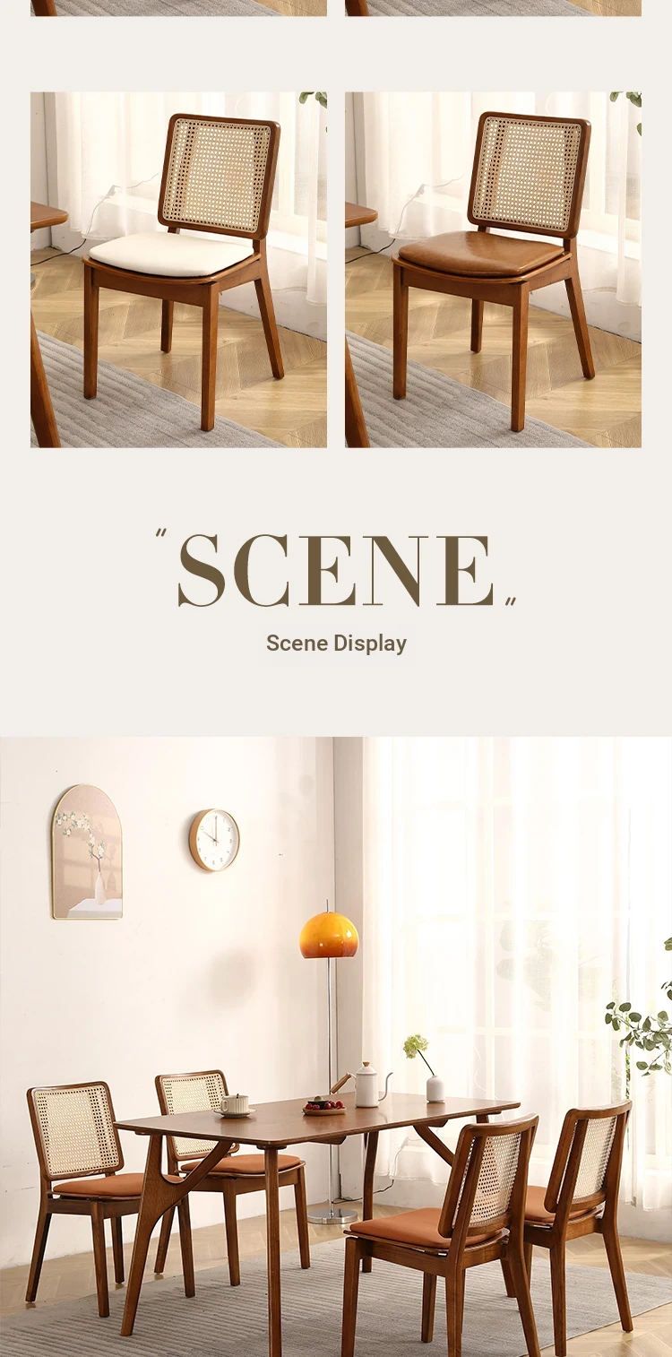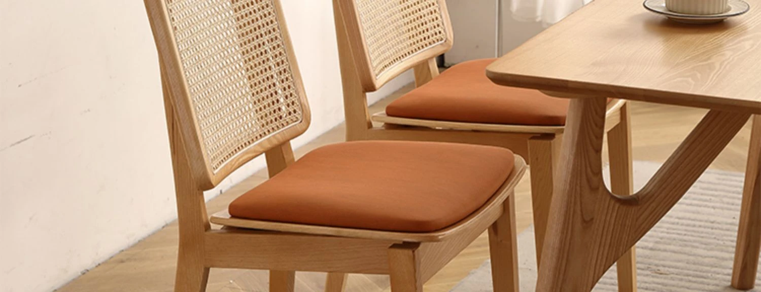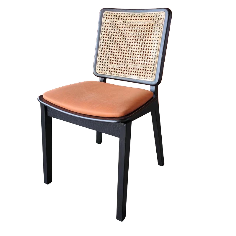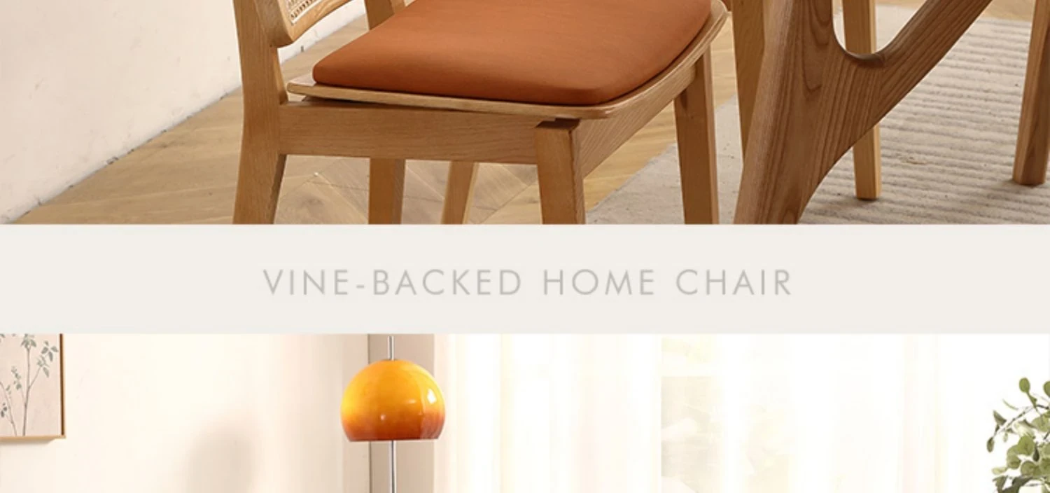 Solid Ash Wood Dining Chair with Rattan Backrest - Minimalist Wabi-Sabi Style for Hotels, Cafés, and Guesthouses - Perfect for Modern Interiors