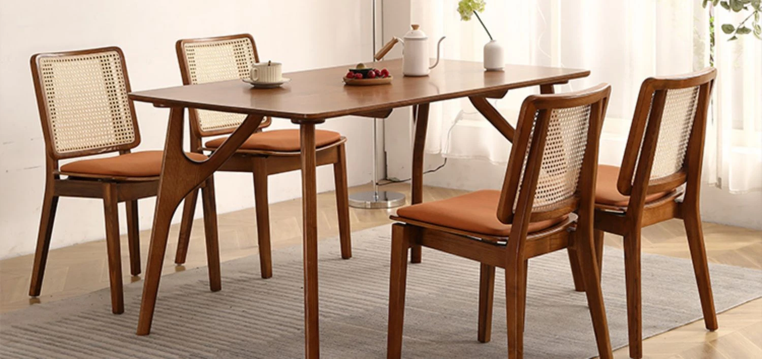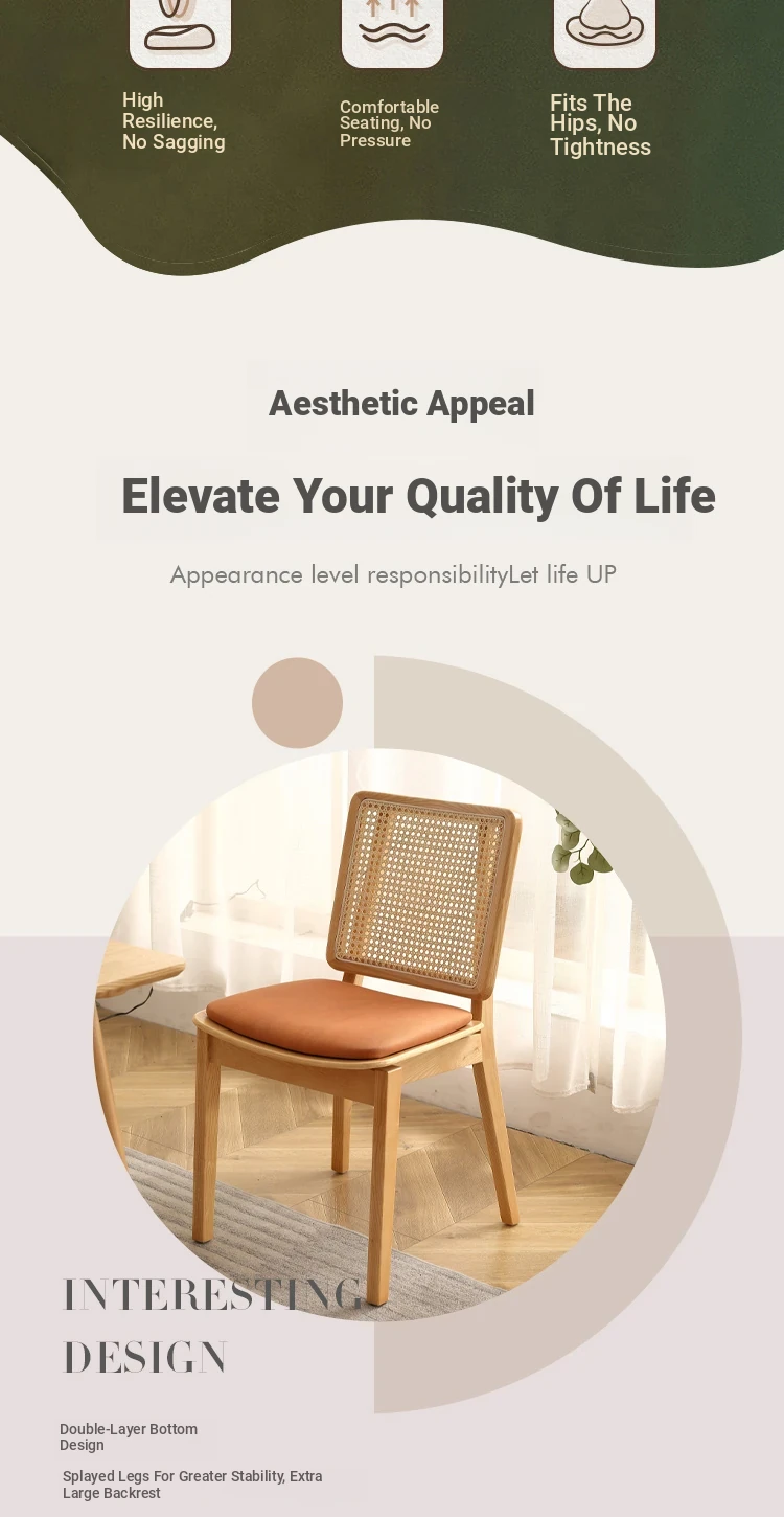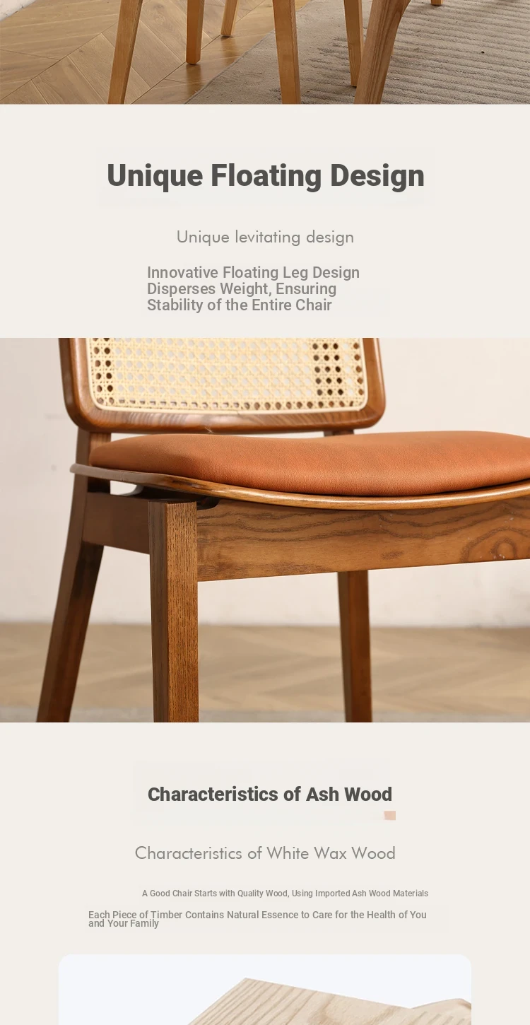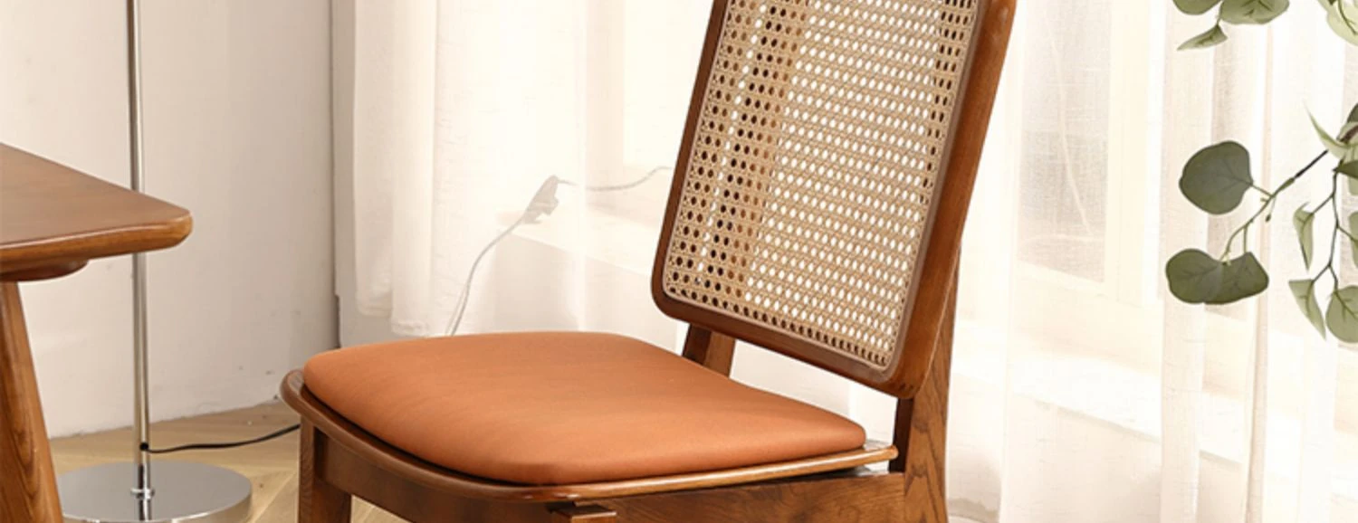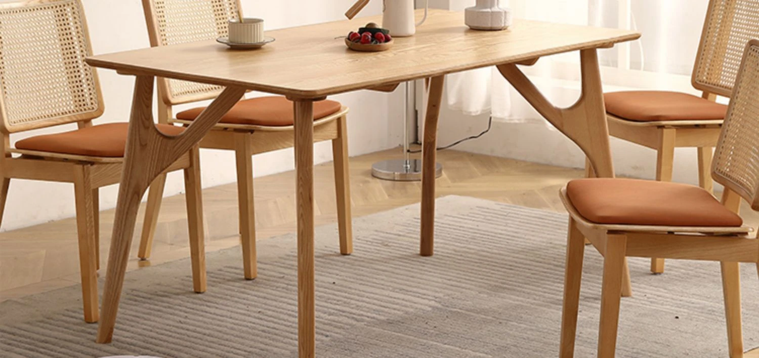 Solid Ash Wood Dining Chair with Rattan Backrest - Minimalist Wabi-Sabi Style for Hotels, Cafés, and Guesthouses - Perfect for Modern Interiors