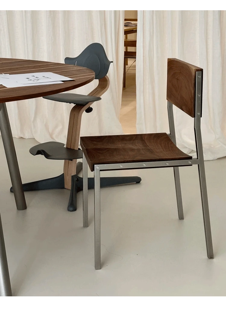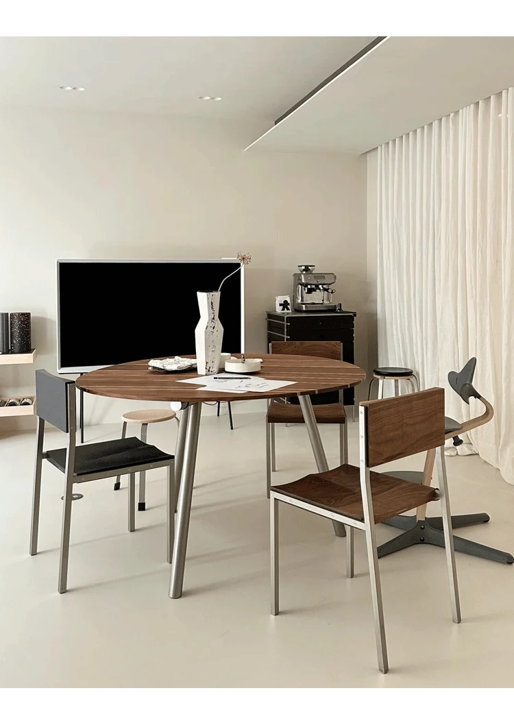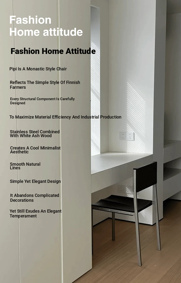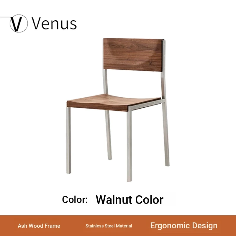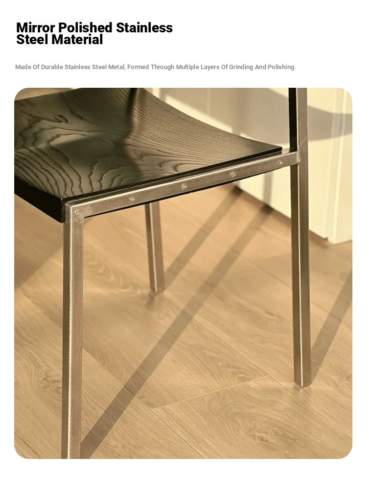 Stainless Steel and Solid Wood Dining Chair - Italian Light Luxury Bauhaus Nordic Minimalist Designer Chair for Hotels and Home Use