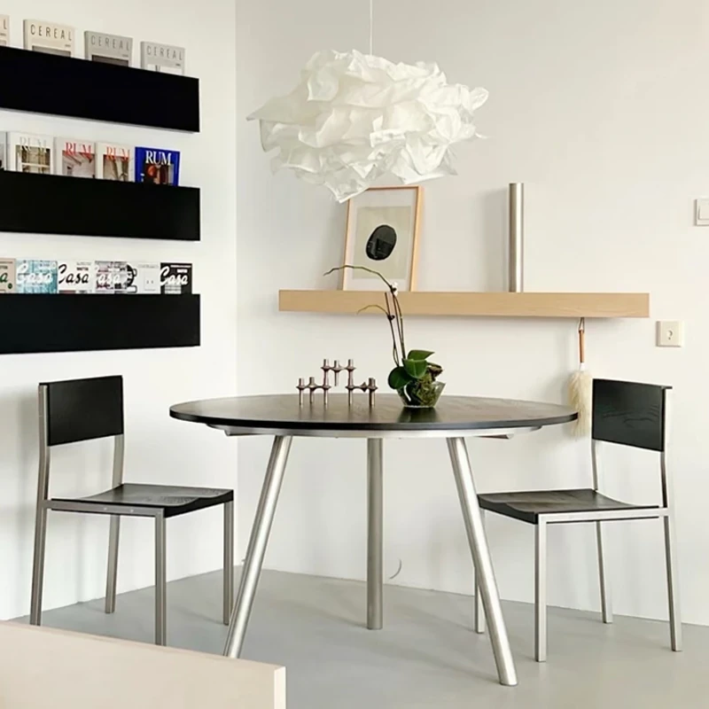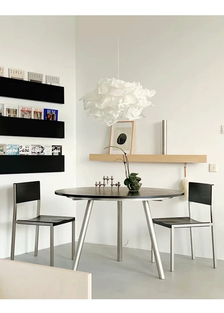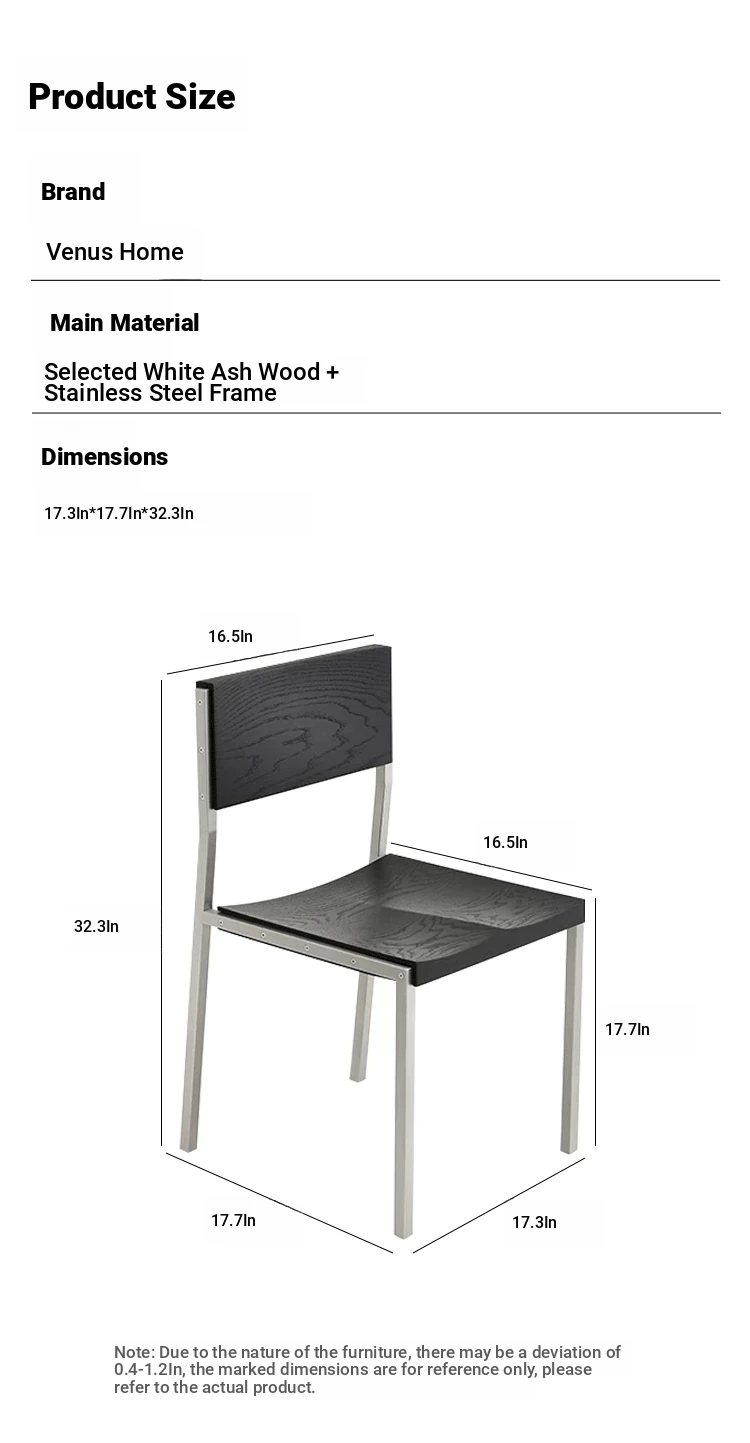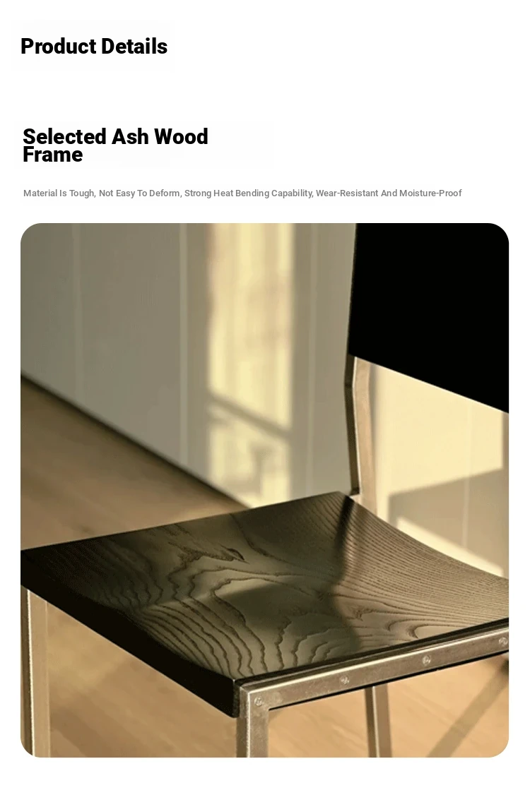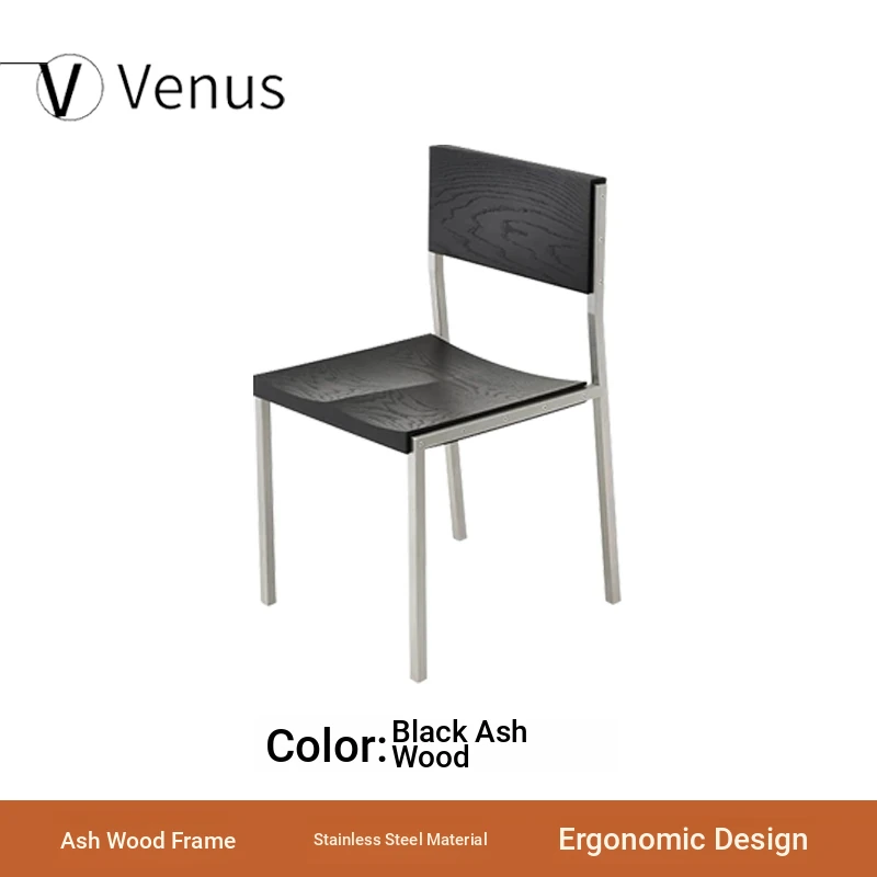 Stainless Steel and Solid Wood Dining Chair - Italian Light Luxury Bauhaus Nordic Minimalist Designer Chair for Hotels and Home Use