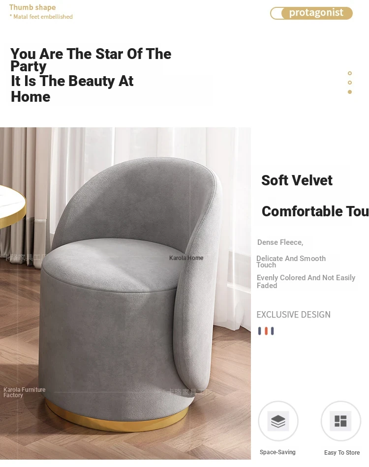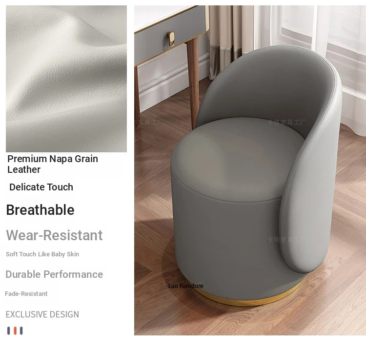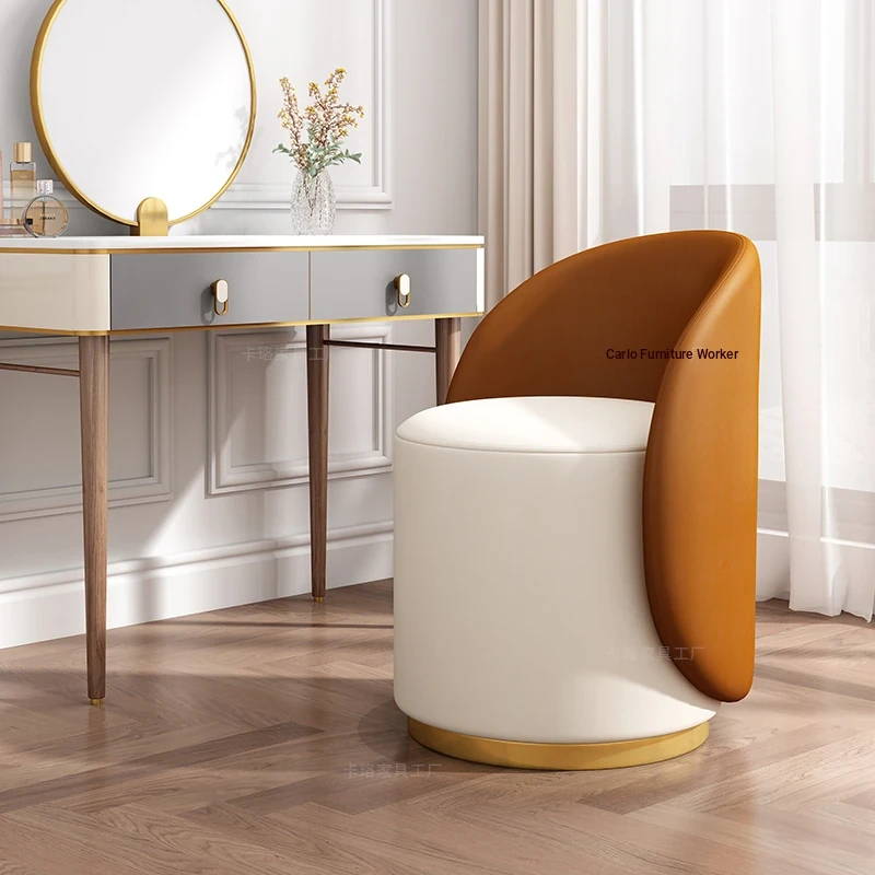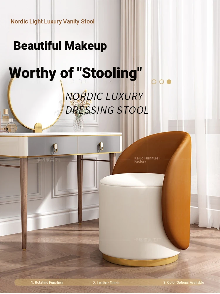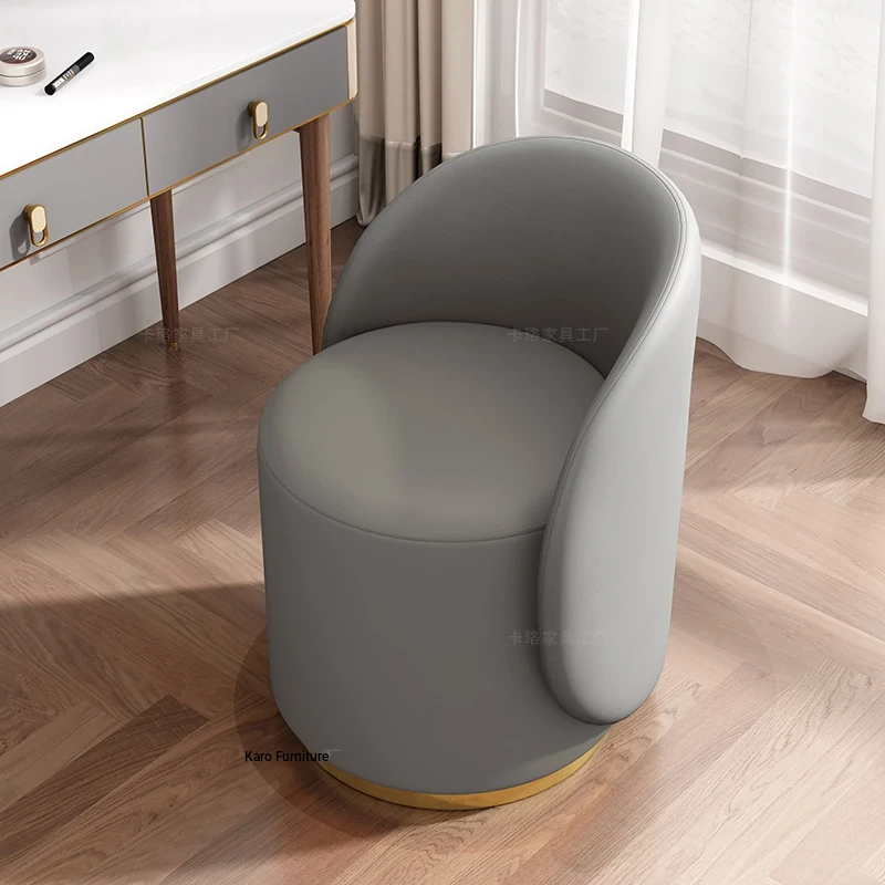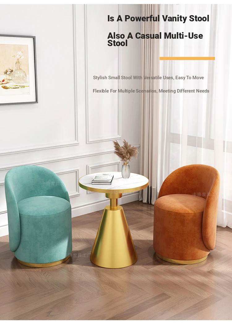 Stylish Nordic Vanity Stool - Modern Minimalist Rotating Chair with Backrest for Bedroom and Study, Perfect for Small Spaces, Trendy Makeup Chair