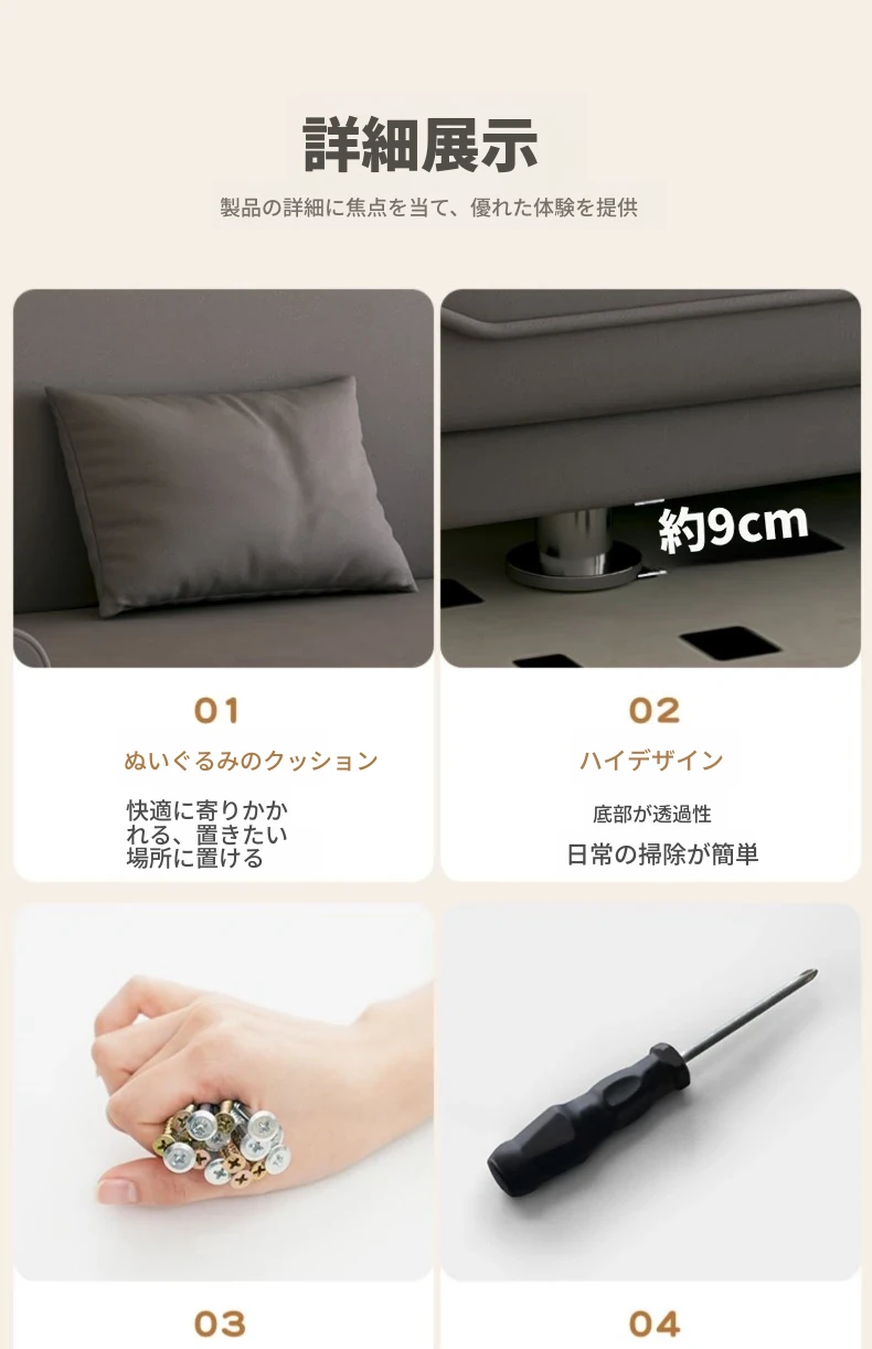 豆沙粉【テクノロジー布スパンジータイプ】1.8メートル*1メートル?(2アームレスト+2クッション付き)