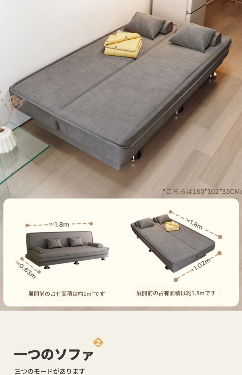 ?ほとんどの人が購入~【ソファベッド兼用】1.8メートル*1メートル