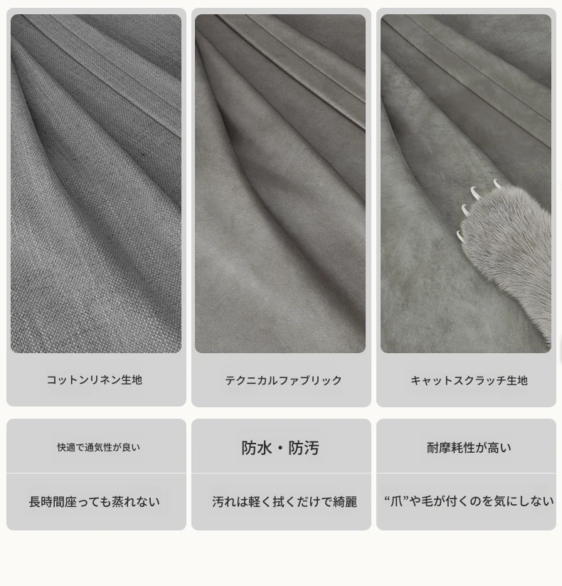 ライトグレー【キャットクロー布スパンジータイプ】1.8メートル*1メートル?(2アームレスト+2クッション付き)
