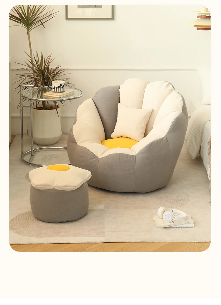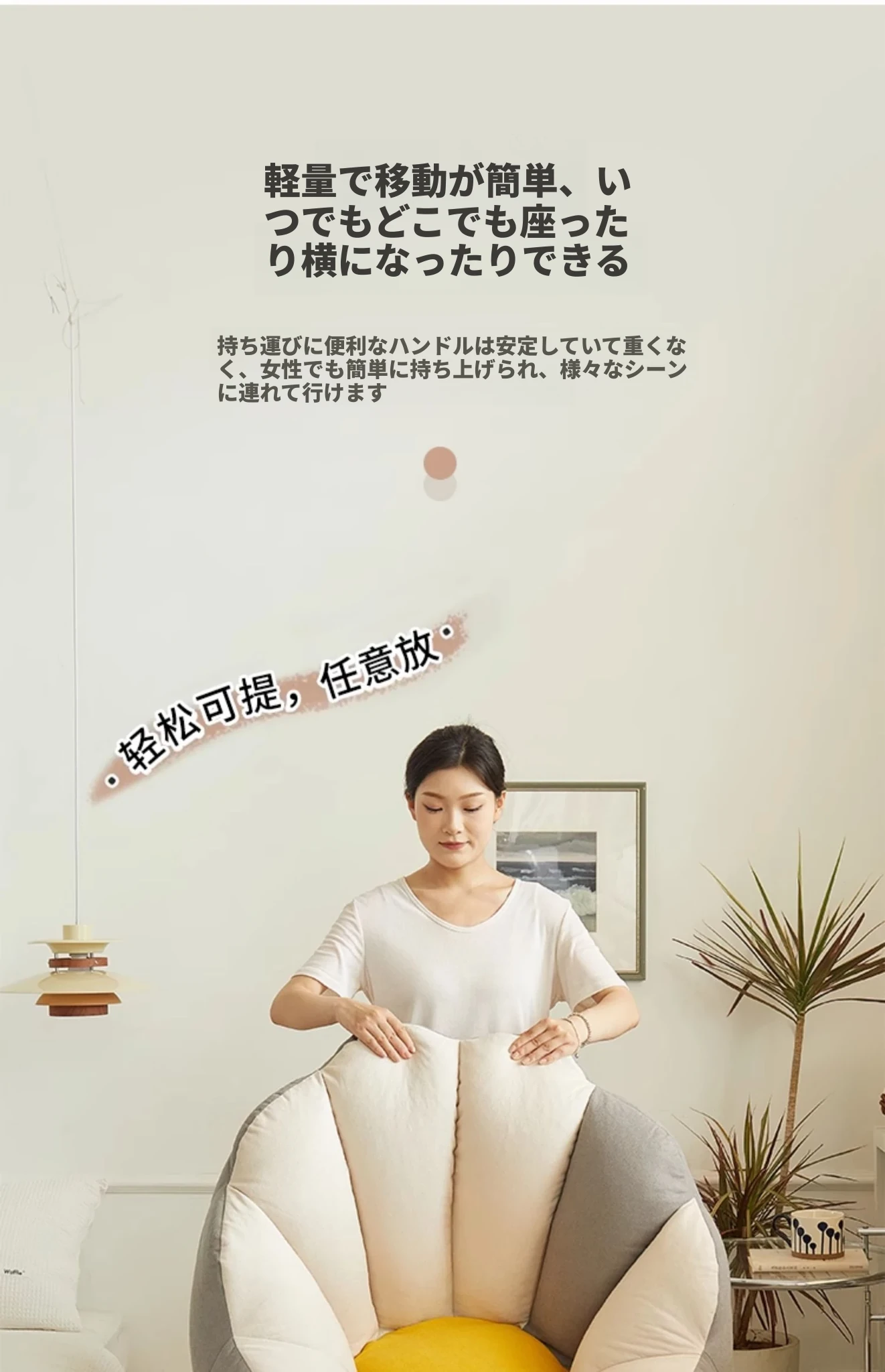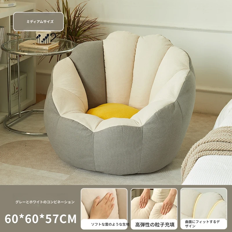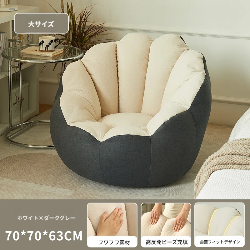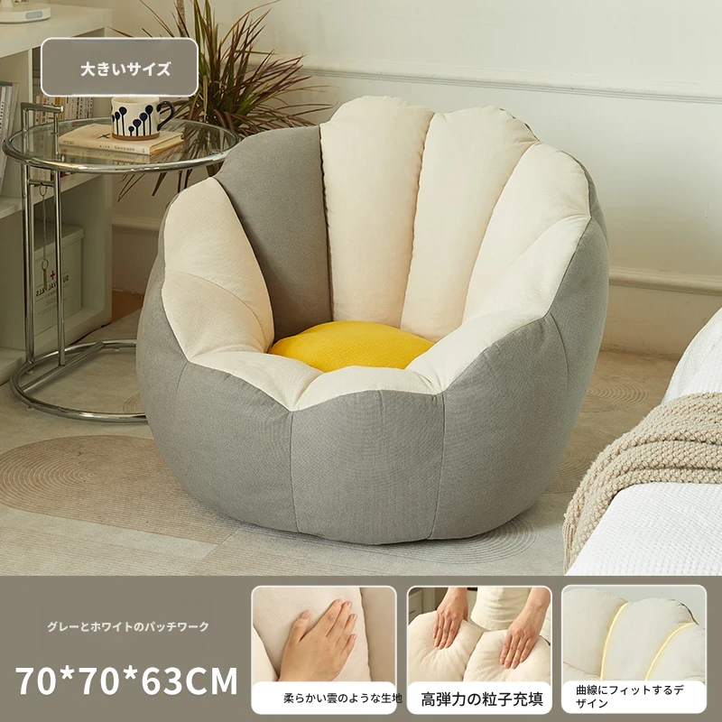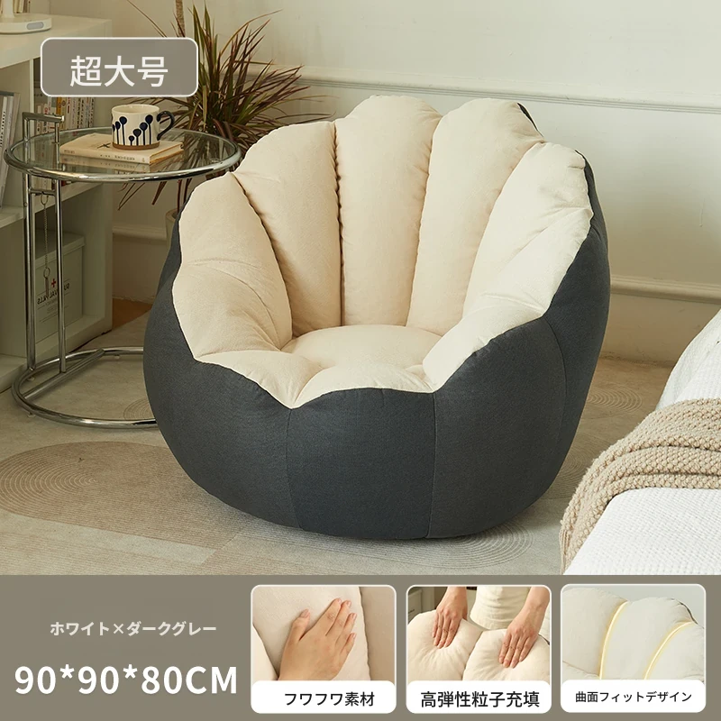 超大号 グレーとホワイトの接ぎ合わせ+花びら型足踏み+クッション