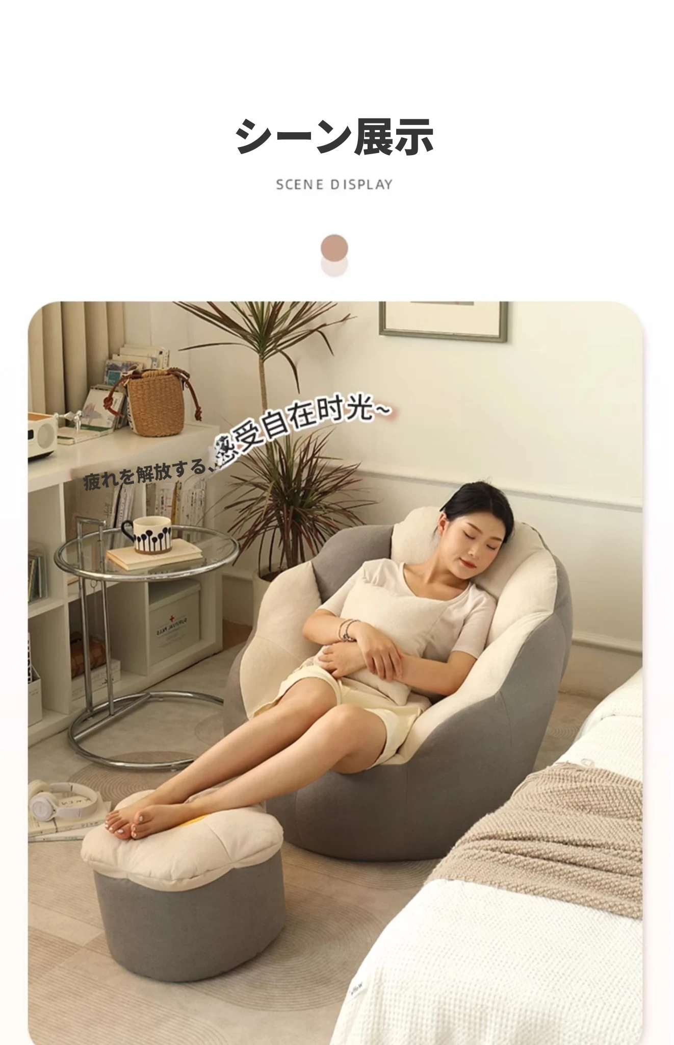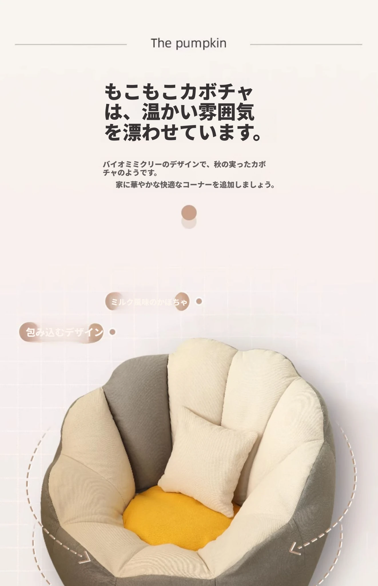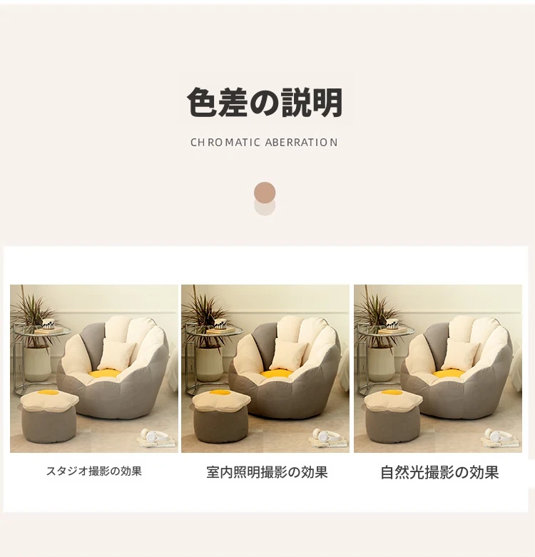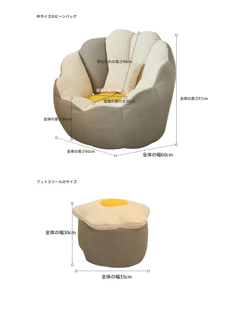 大号 グレーとホワイトの接ぎ合わせ+花びら型足踏み+クッション