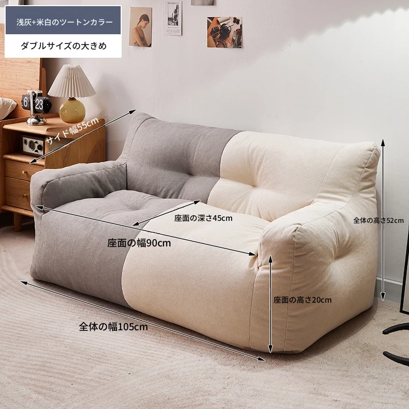 アイボリー×ライトグレー【ラグジュアリーダブル大サイズ】