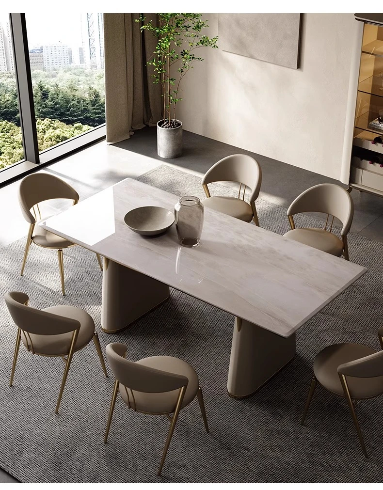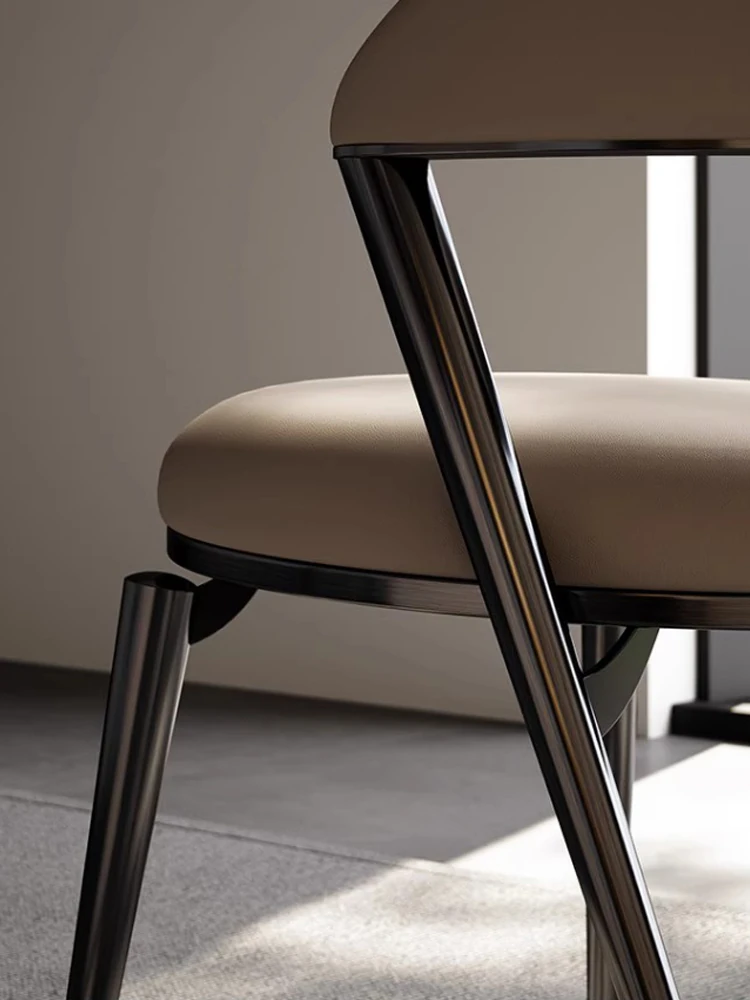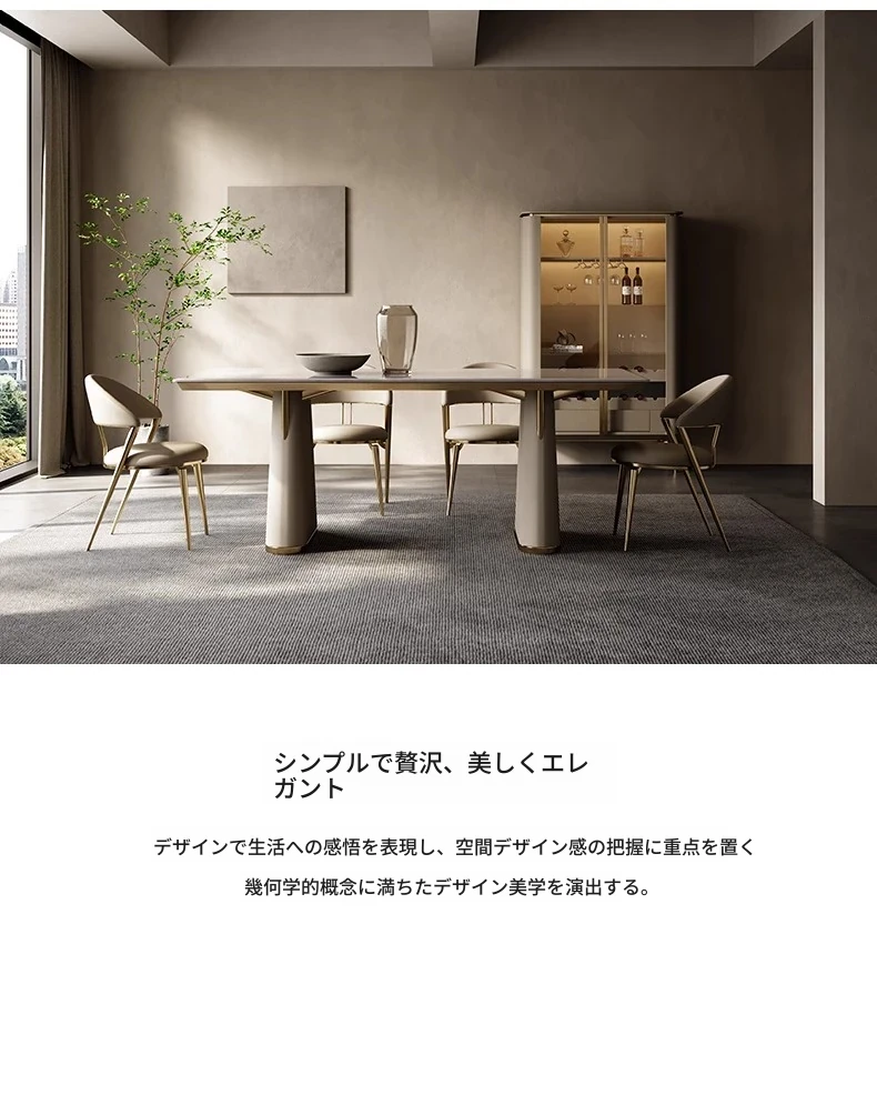 2025年新作!高級感あふれるステンレススチール製チェアーと本革のダイニングテーブルセット。ミニマルなイタリアンデザインで、狭いお部屋にもぴったり!おしゃれで機能的な空間を演出します。