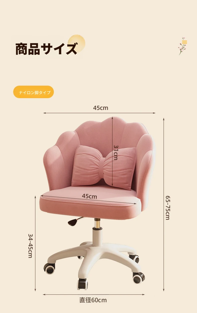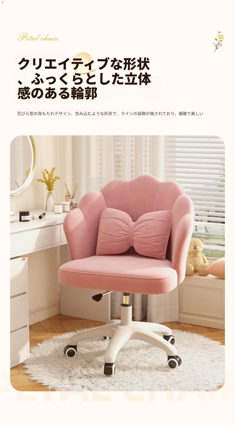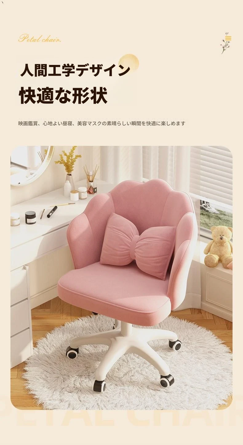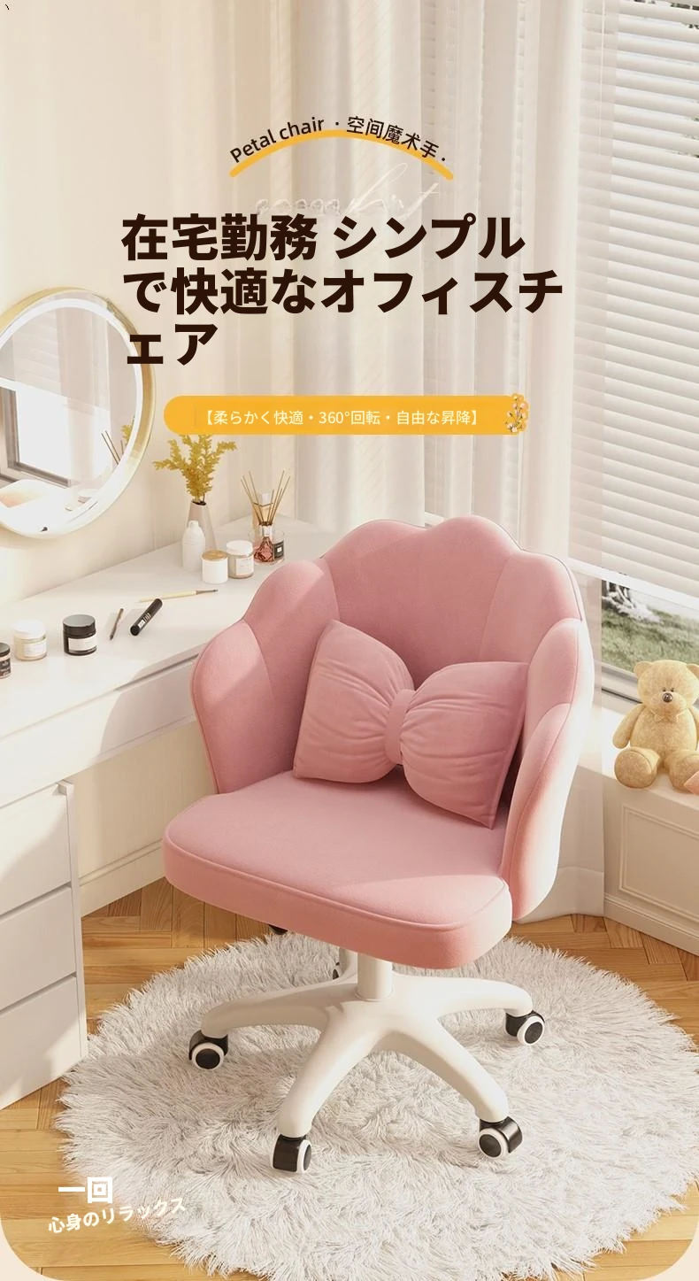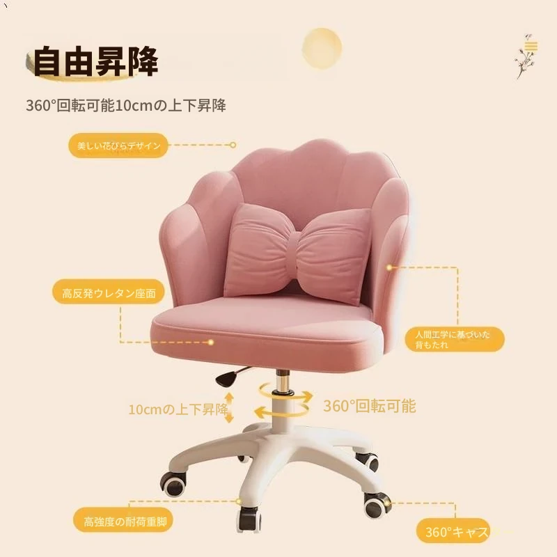 女の子のための快適な昇降式デスクチェア!学習や化粧に最適な寝室用椅子。長時間座っても疲れにくい背もたれ付き。自宅でのオフィスにもぴったり!
