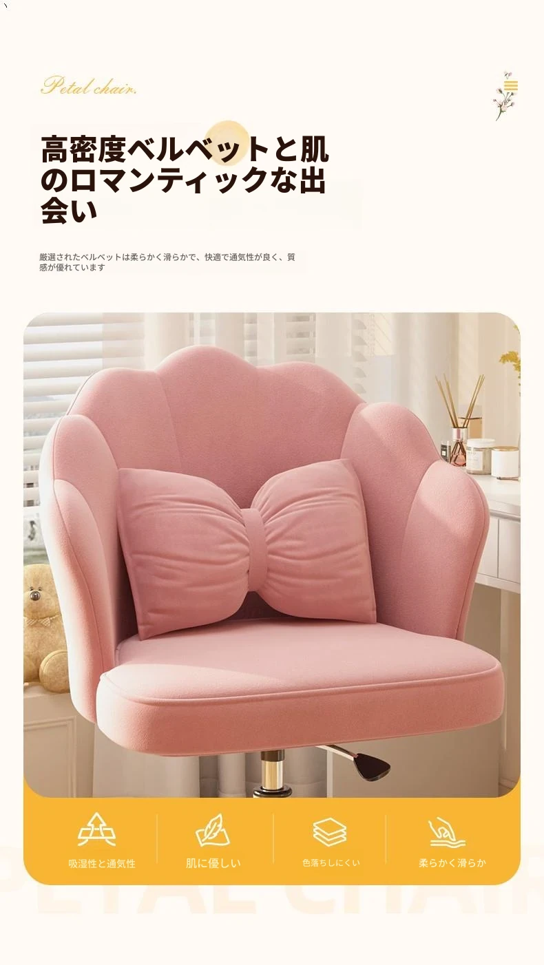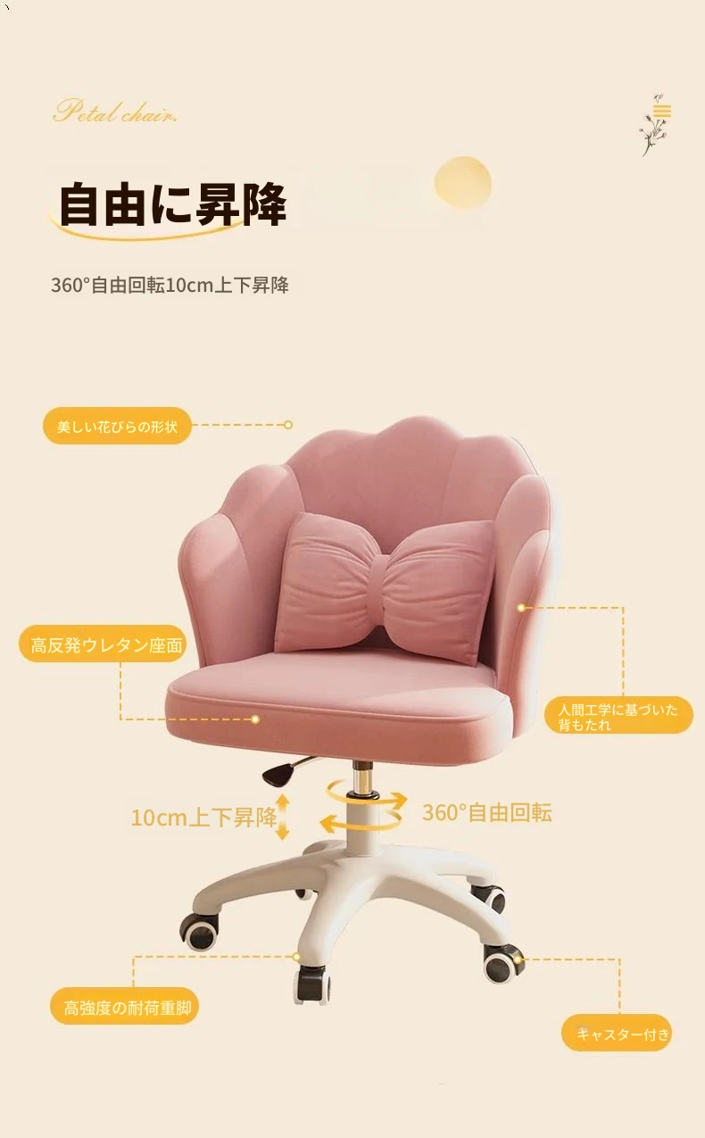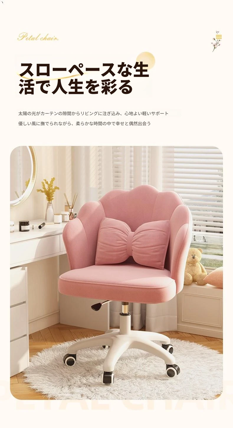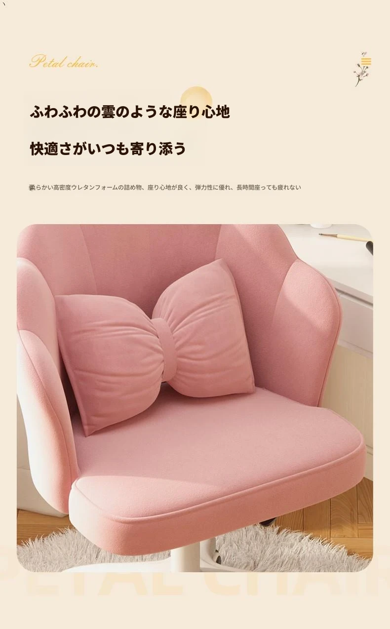 女の子のための快適な昇降式デスクチェア!学習や化粧に最適な寝室用椅子。長時間座っても疲れにくい背もたれ付き。自宅でのオフィスにもぴったり!
