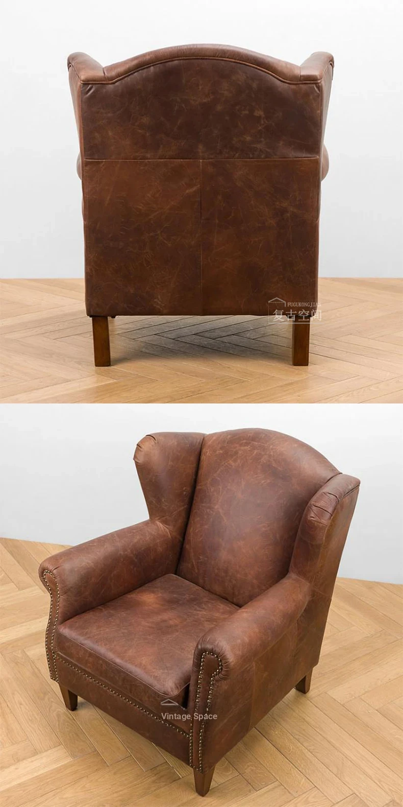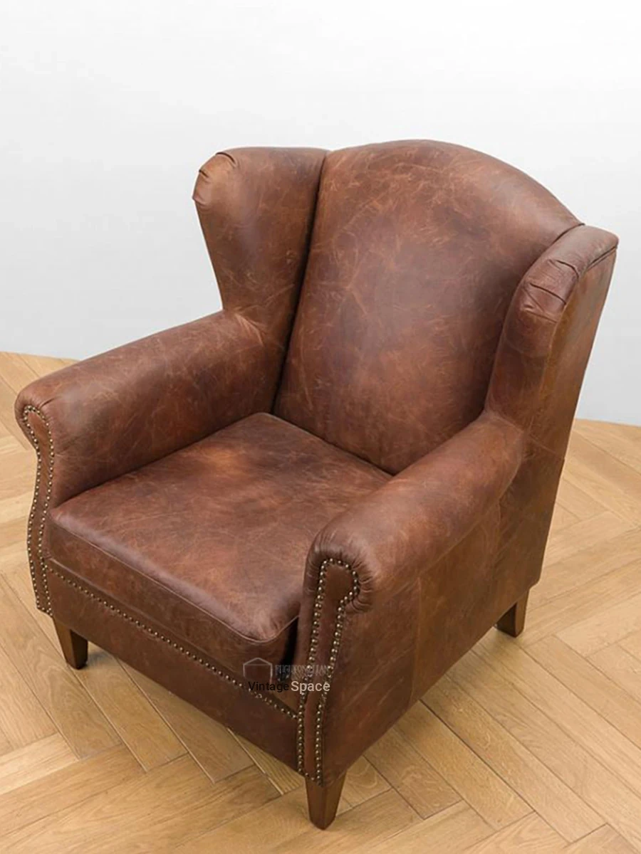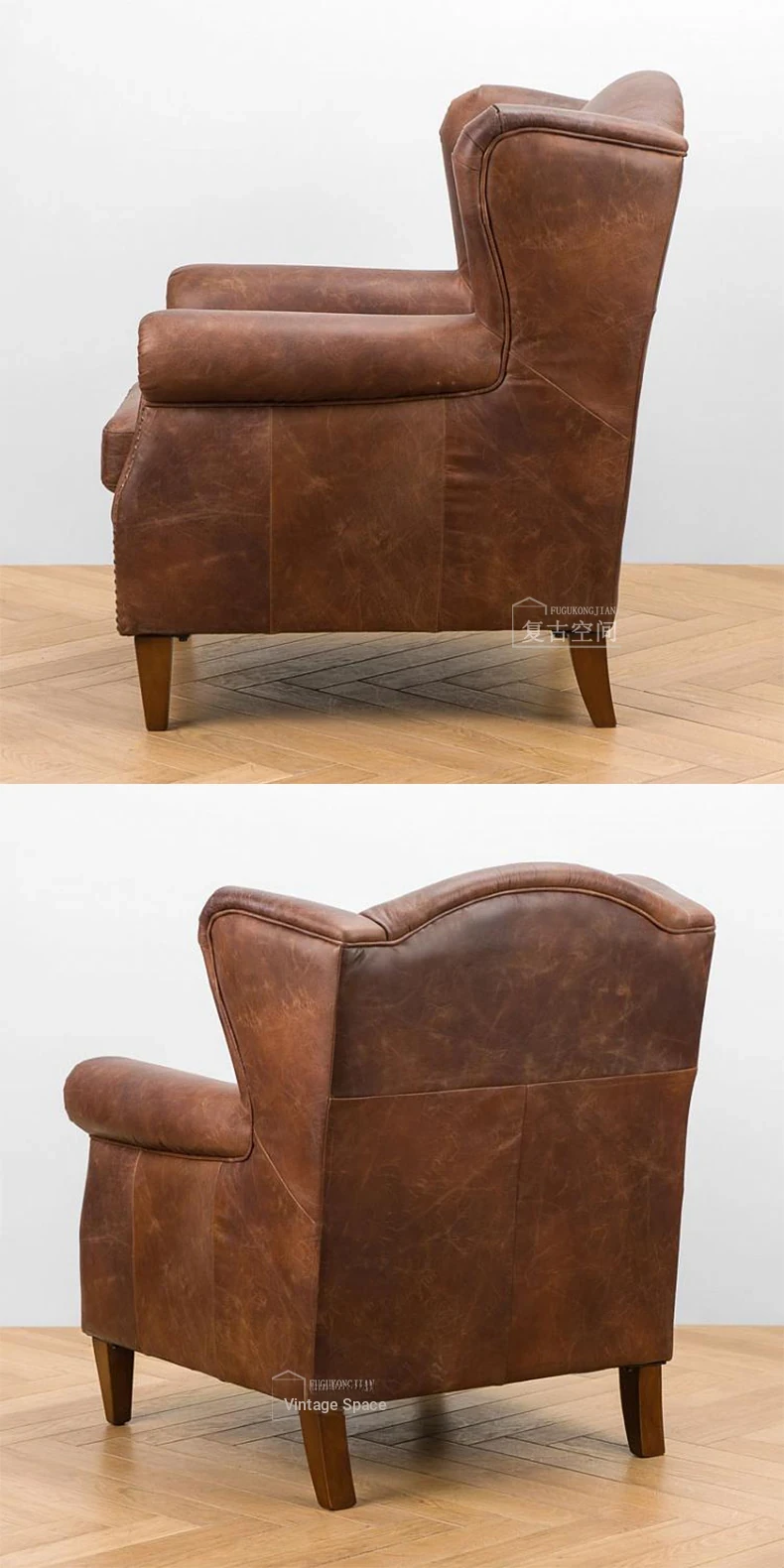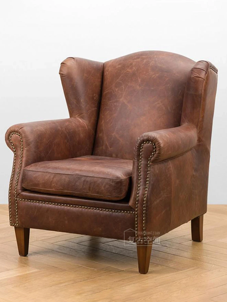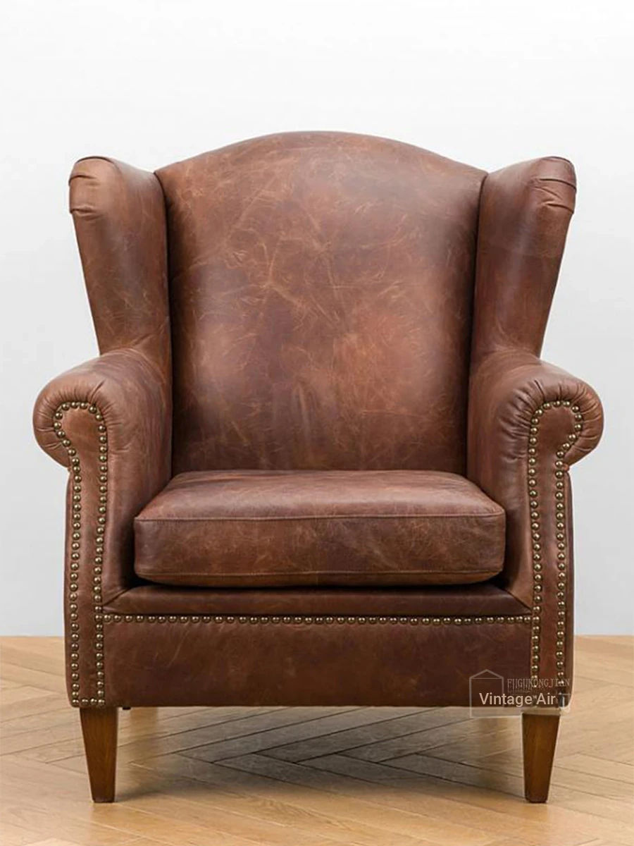 American Vintage Genuine Leather High-Back Tiger Chair - Retro Cigar Oil Wax Sofa for Living Room and Study - Perfect for Relaxation and Style!