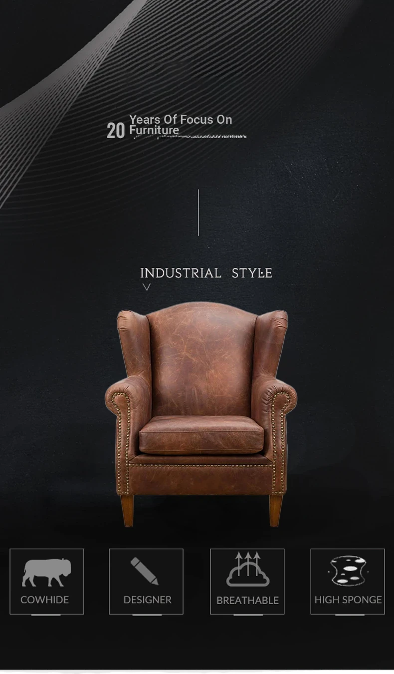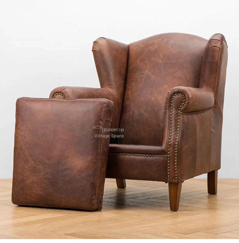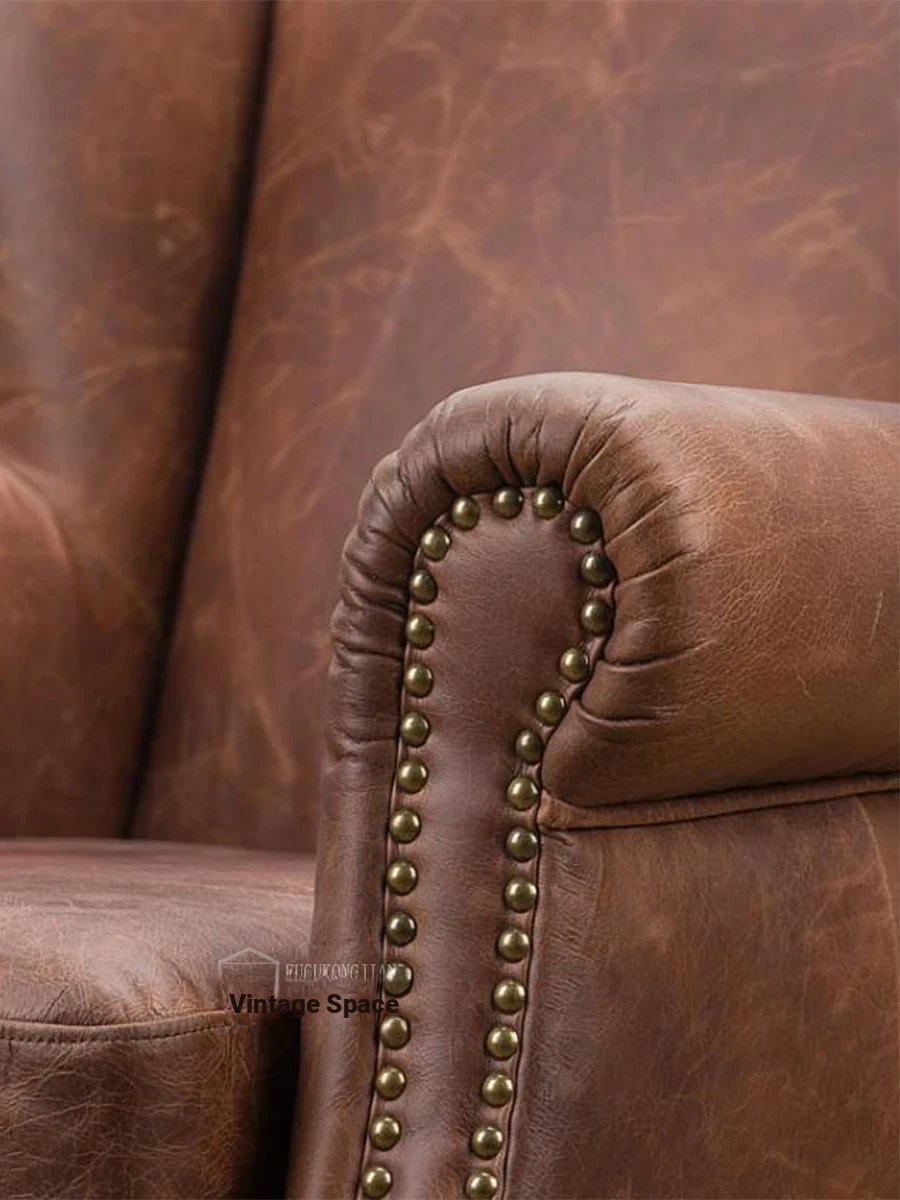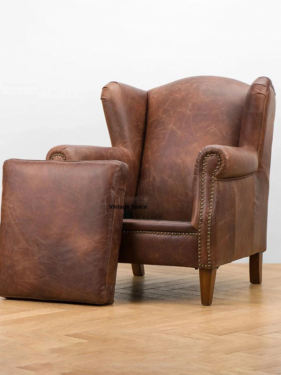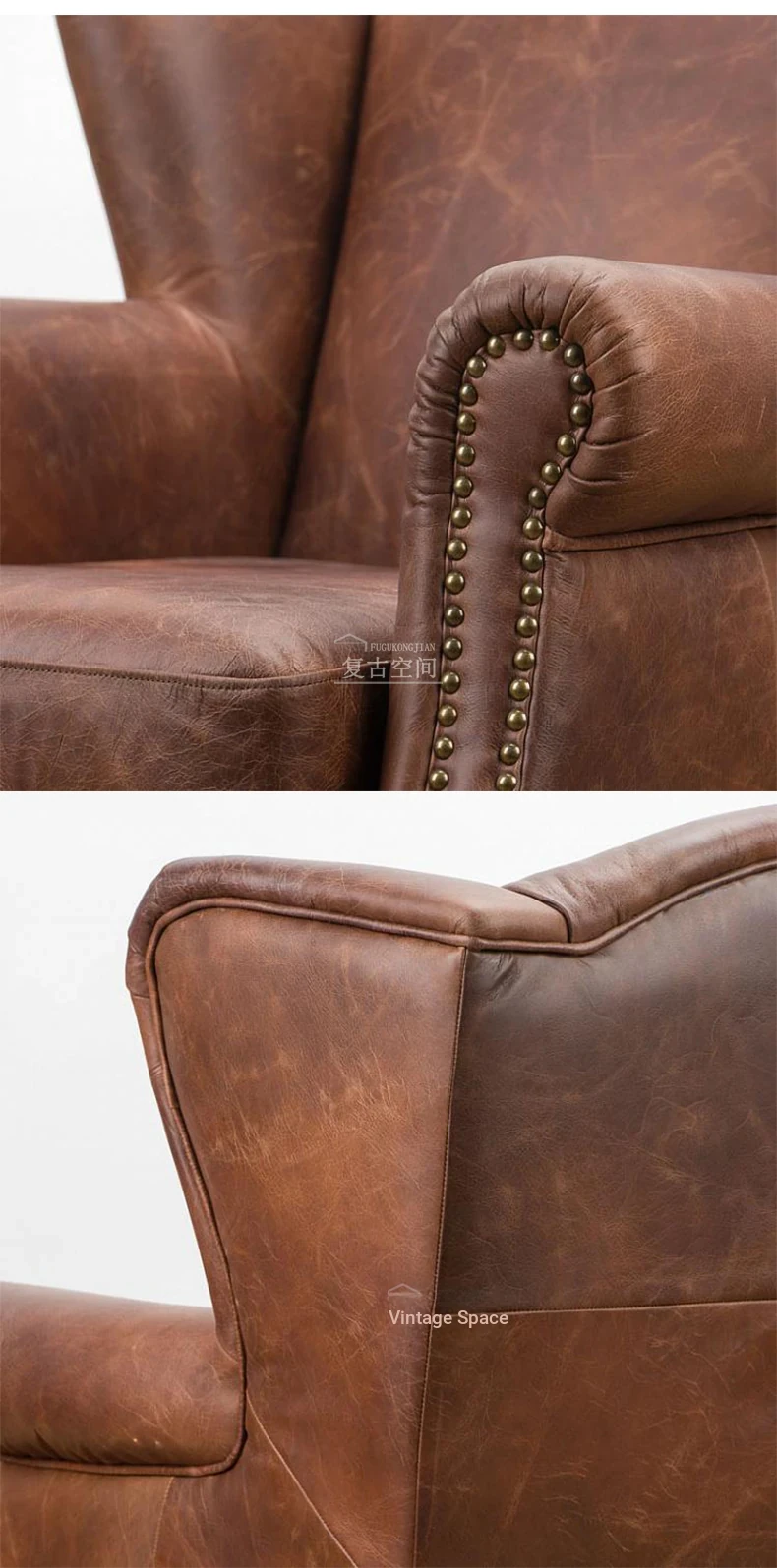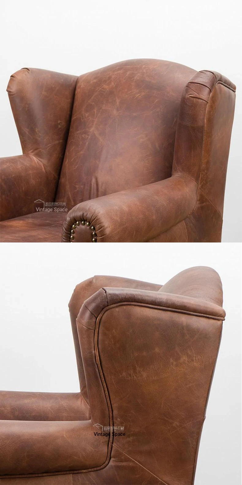 American Vintage Genuine Leather High-Back Tiger Chair - Retro Cigar Oil Wax Sofa for Living Room and Study - Perfect for Relaxation and Style!