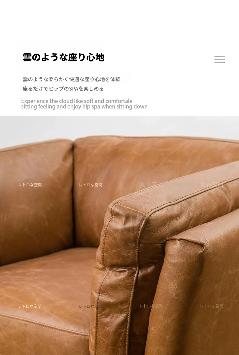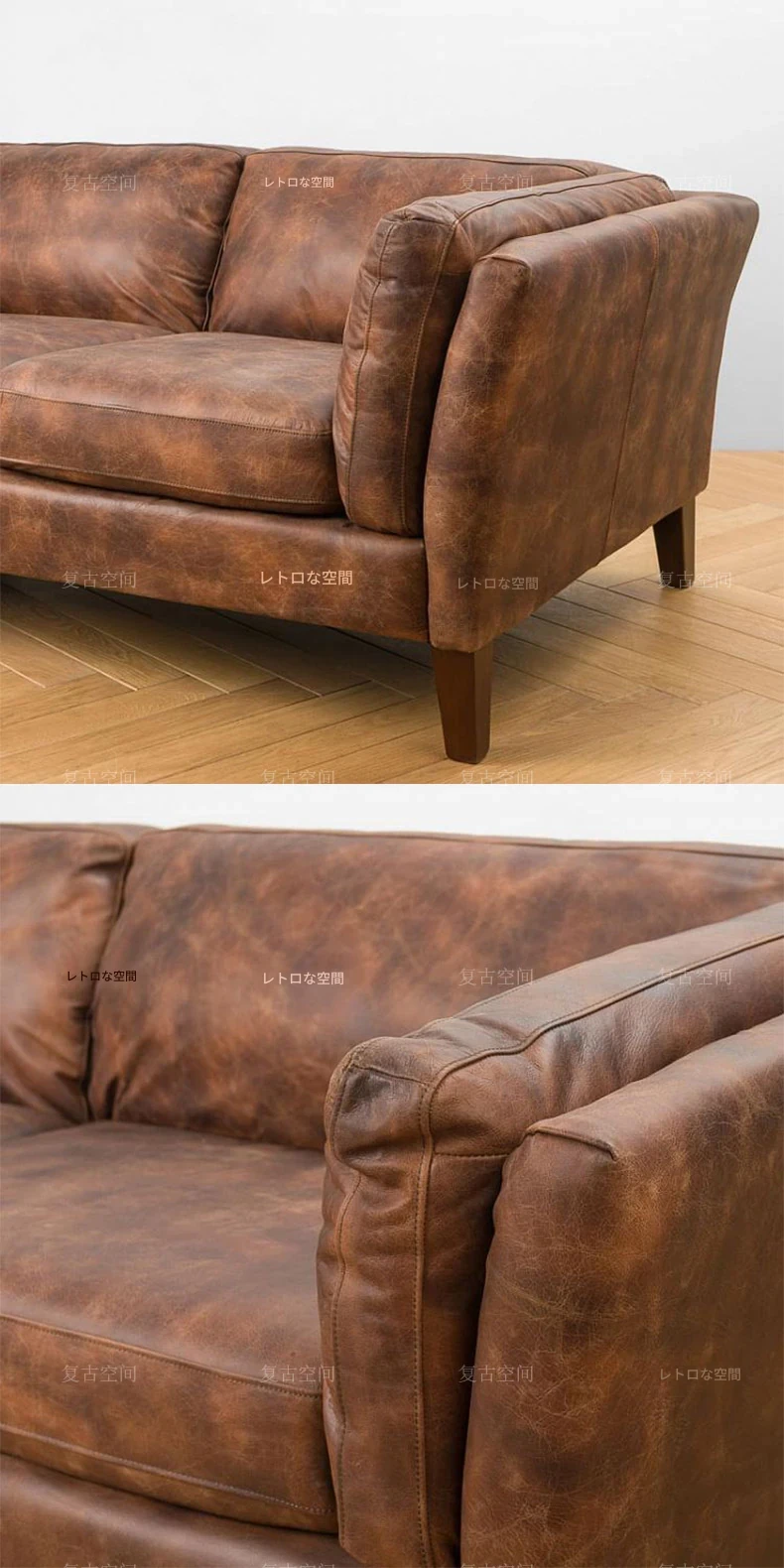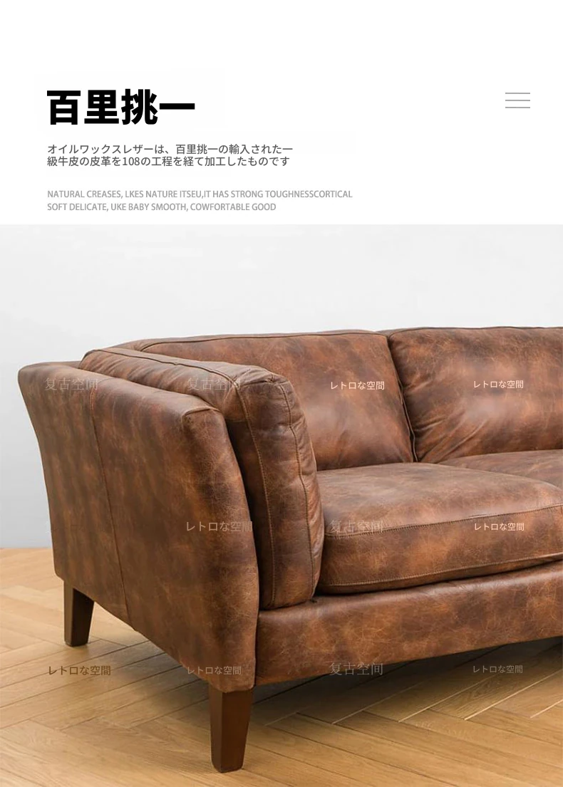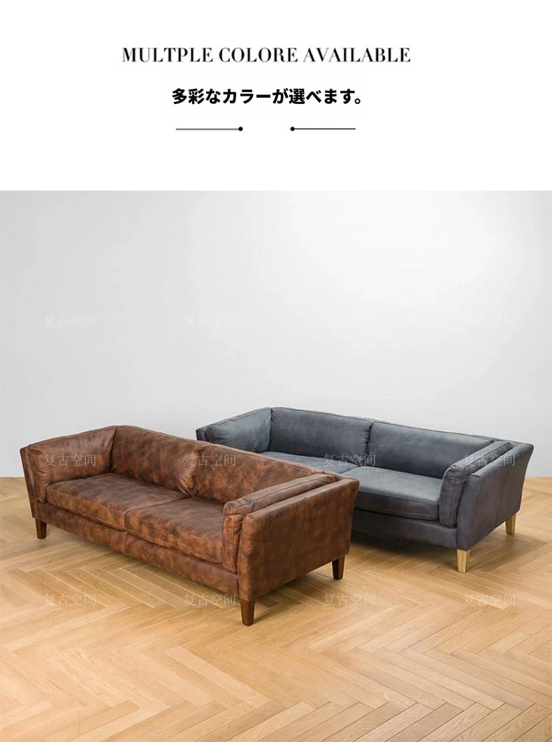 アメリカンスタイルの本革ソファー、インダストリアルビンテージ風のオイルワックス仕上げ、牛皮の風合いを活かしたアンティークデザイン。別荘やクラブ、バーにぴったりの一人用ダウンソファー!快適さとスタイルを両立させた極上のひとときを。