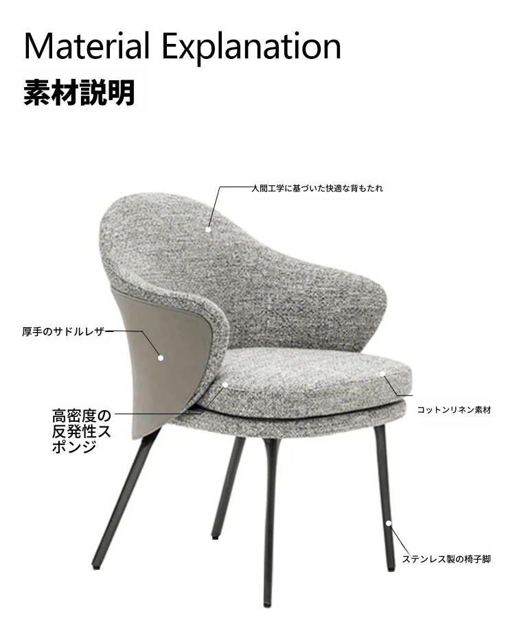 アンジー食卓椅子【ダークグレー】コットンリネン+ステンレス