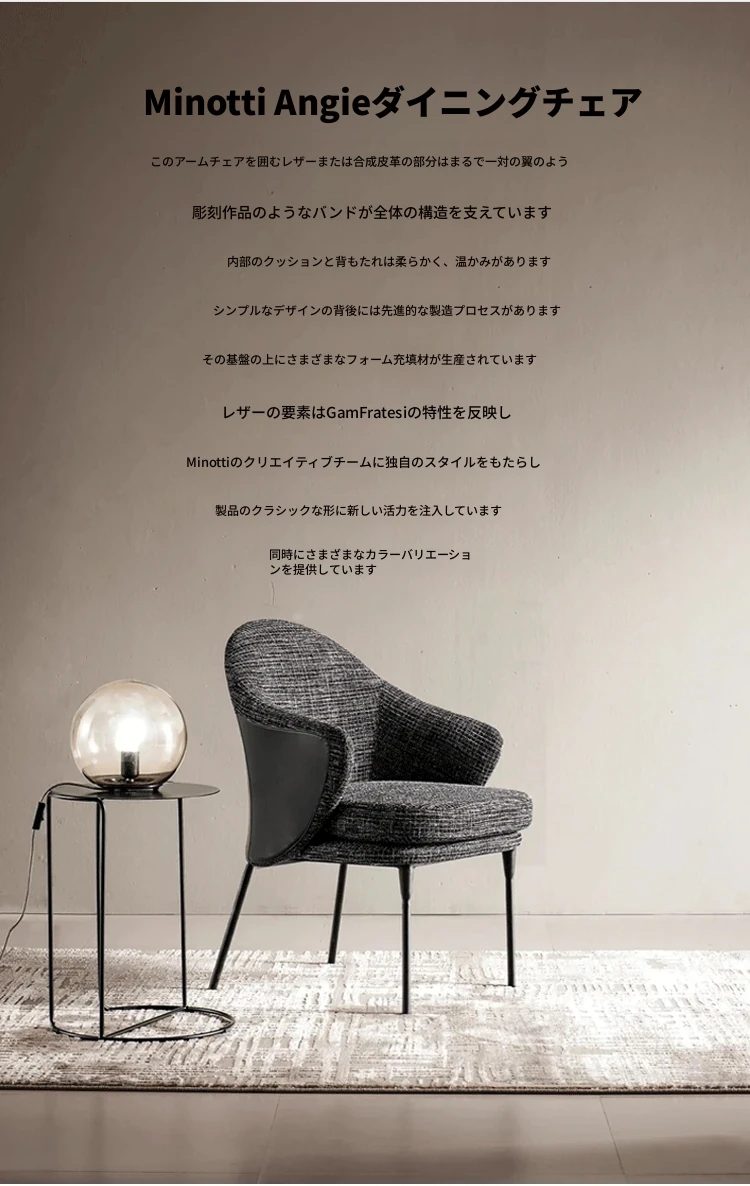 Angieアンジー ダイニングチェア - イタリアンミニマリズムと北欧デザインの融合!洗練された高級感で、現代的なシンプルさを追求した別荘や家庭にぴったりの一脚です。