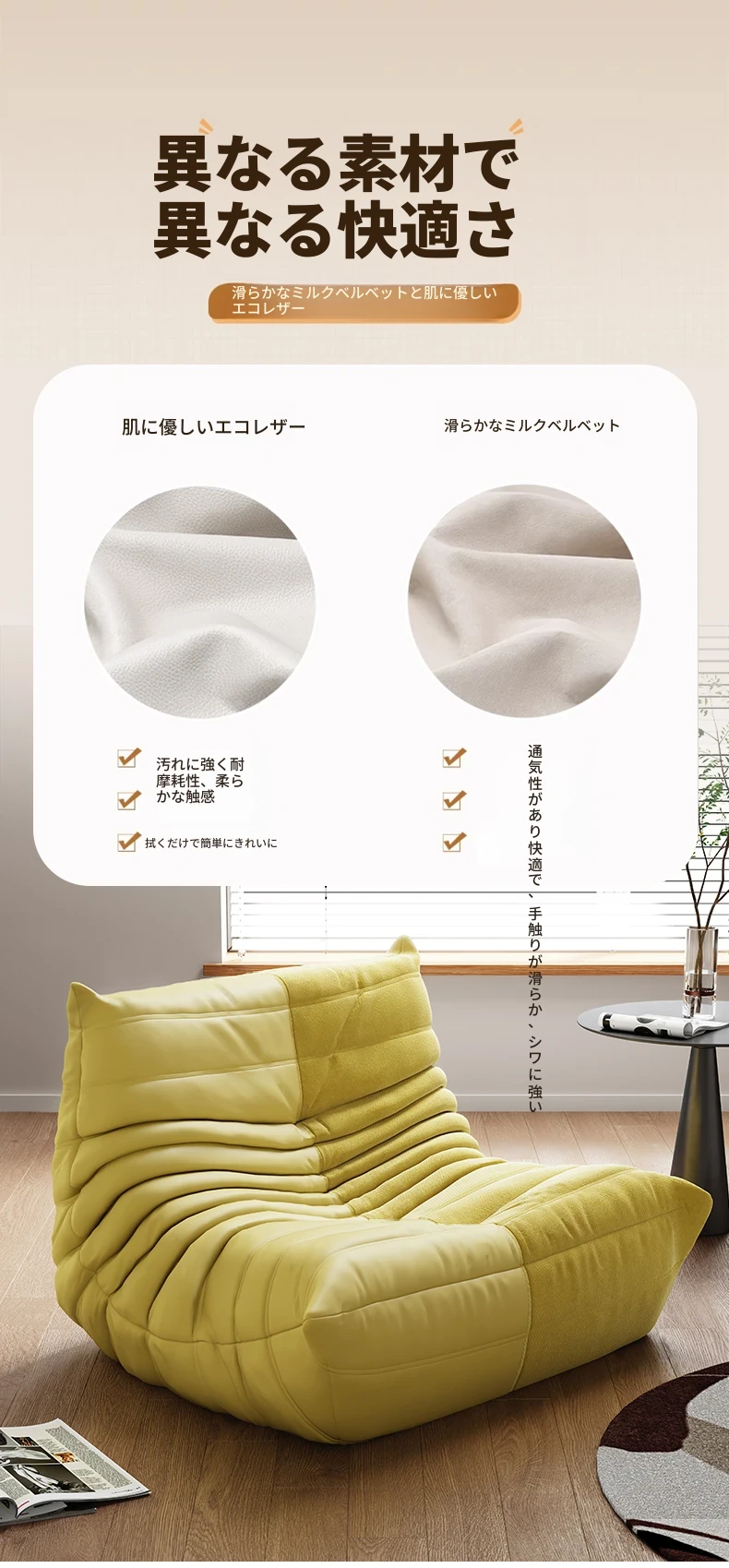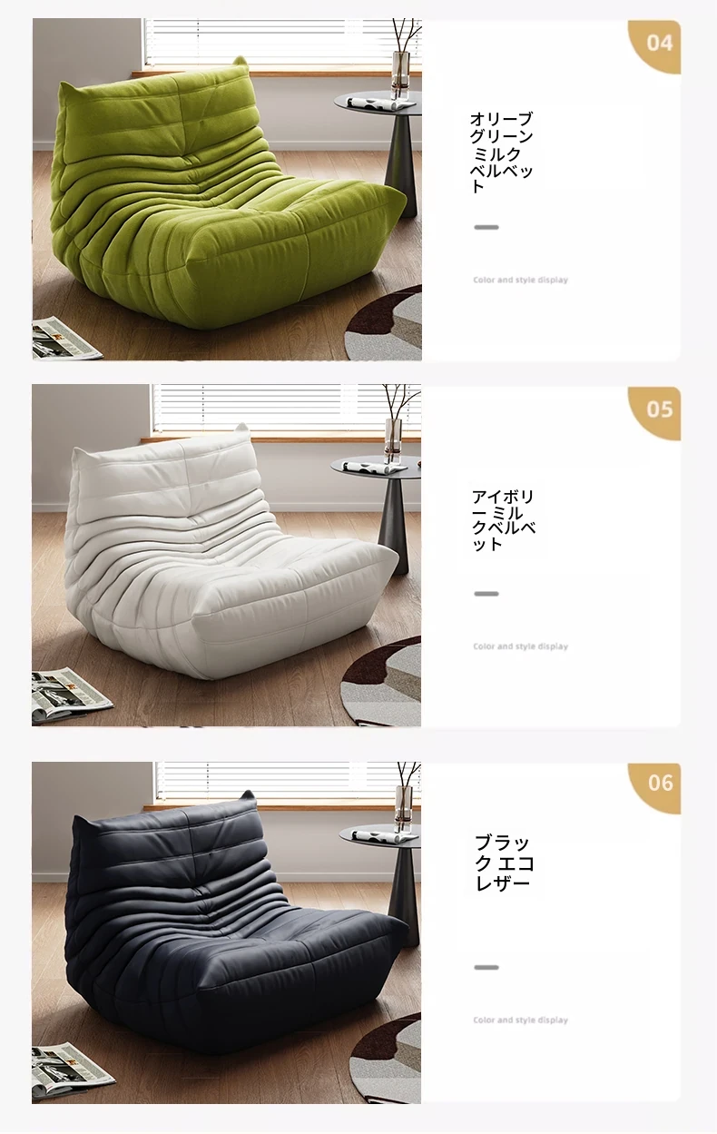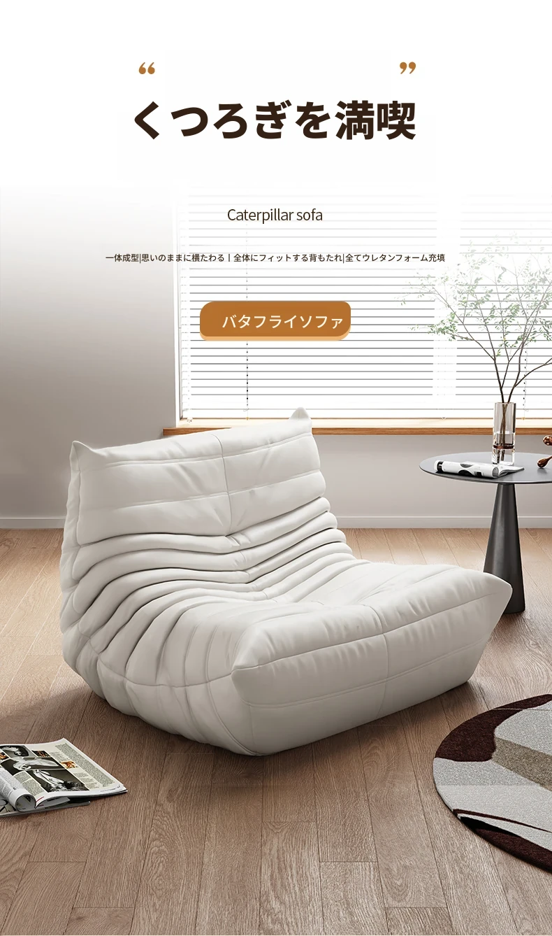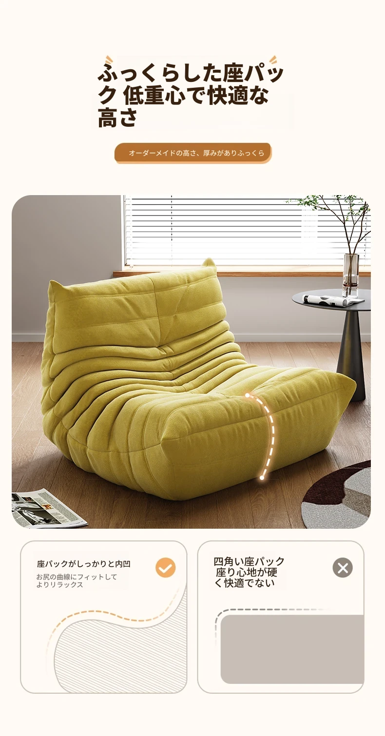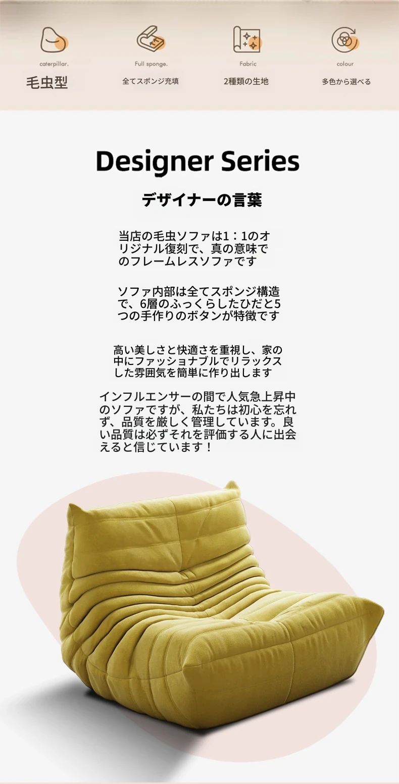 モフモフ毛虫ラウンジソファ - 寝転びながらくつろげる!リビング、バルコニー、寝室に最適なシングルソファ。オリジナルTogoデザインで、人気のリラックスチェア!快適なひとときをお届けします。
