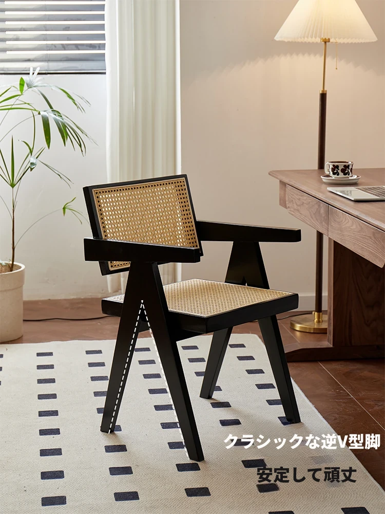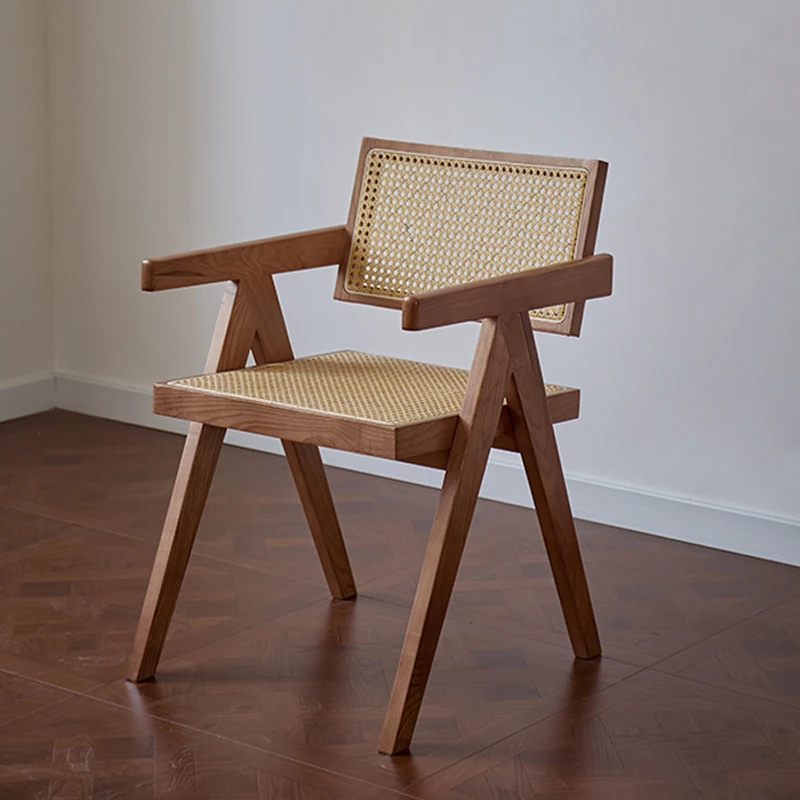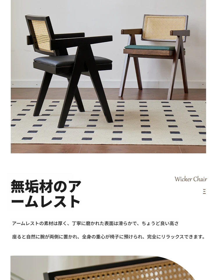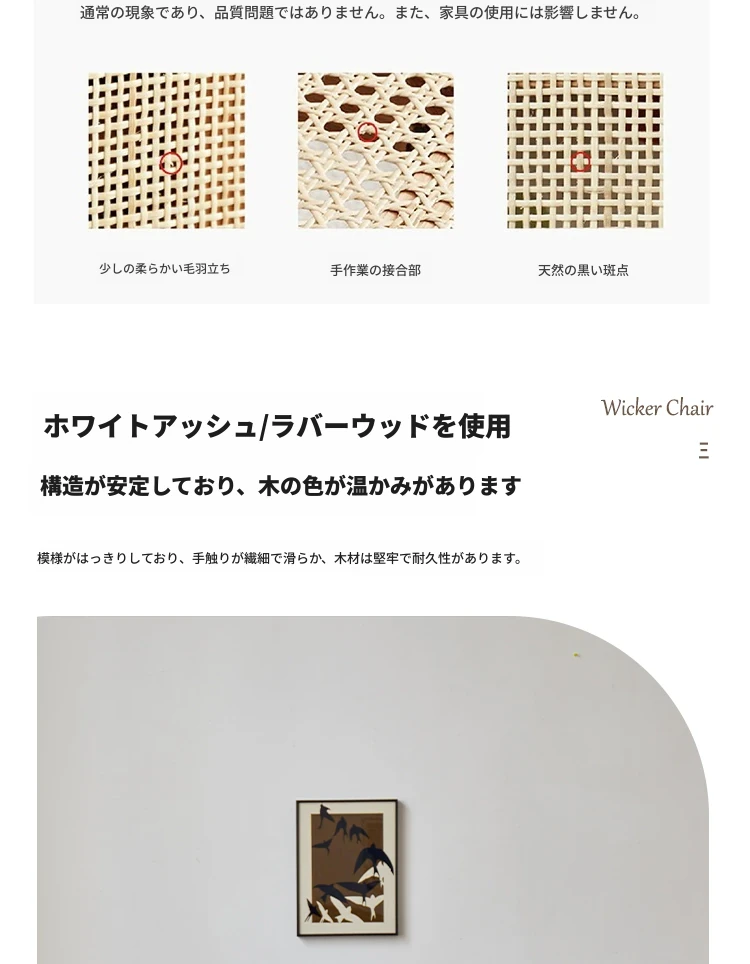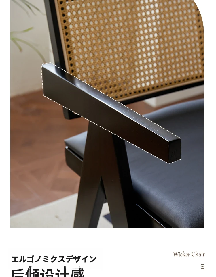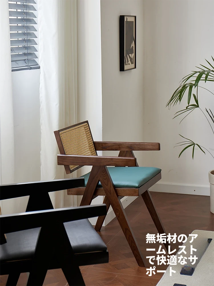 チャンディーガルチェア|無垢材使用の和モダンデザイン|民宿やレストランに最適|ホワイトアッシュ&ラタン編みの美しいコンビネーション|心地よい座り心地を実現したナチュラルウッドスツール